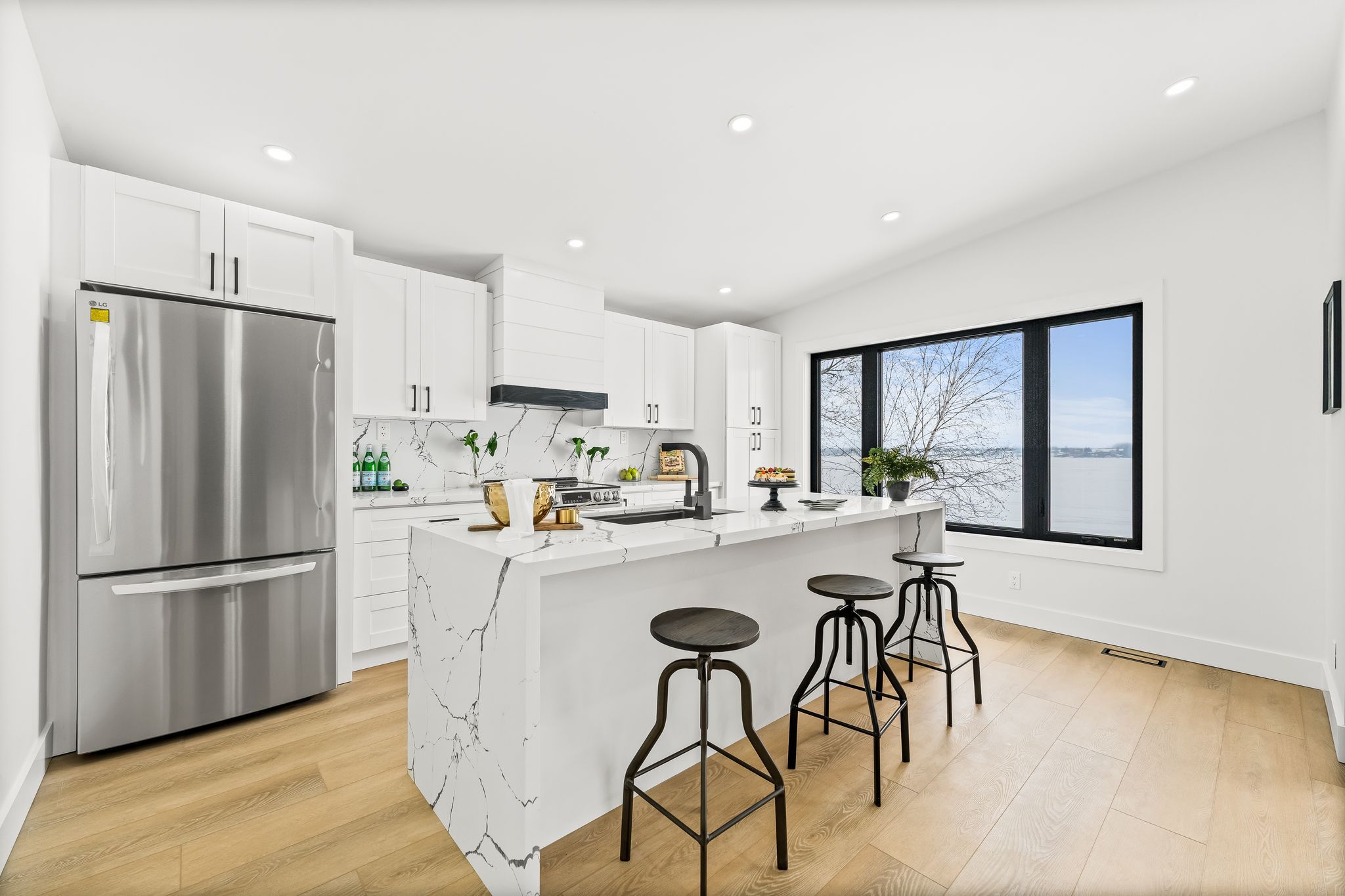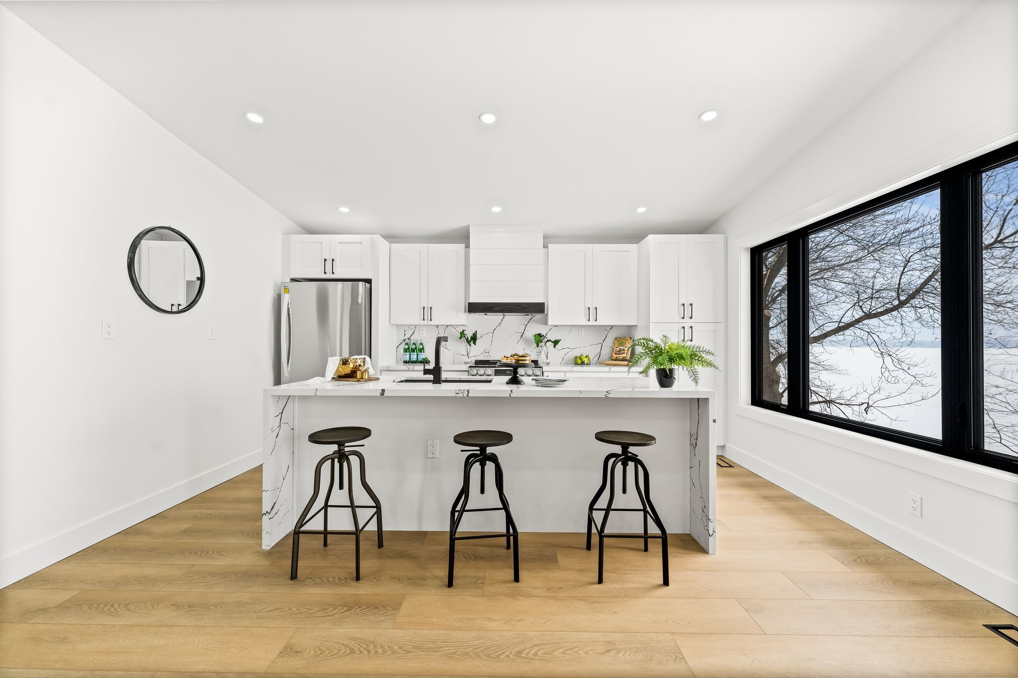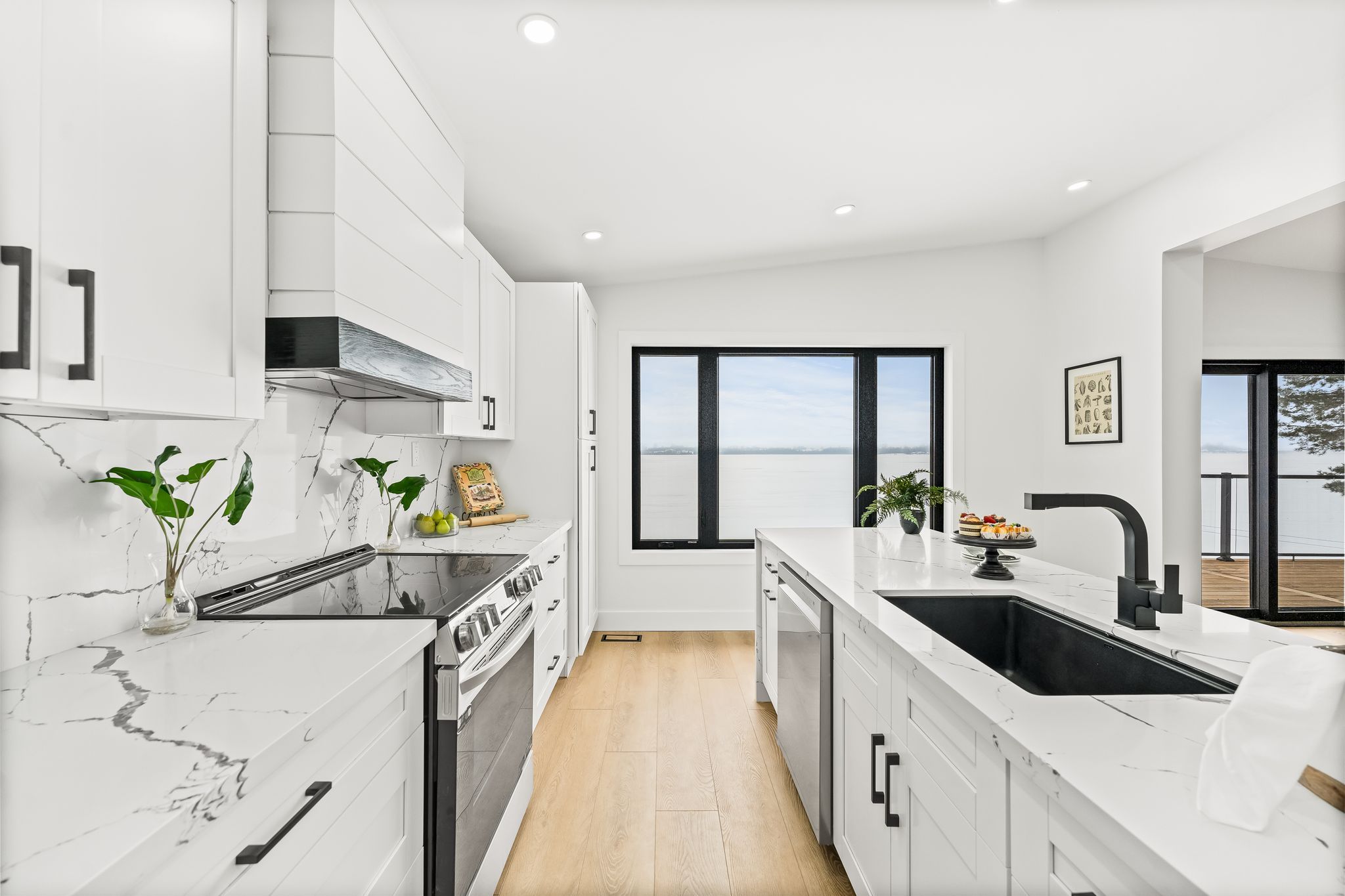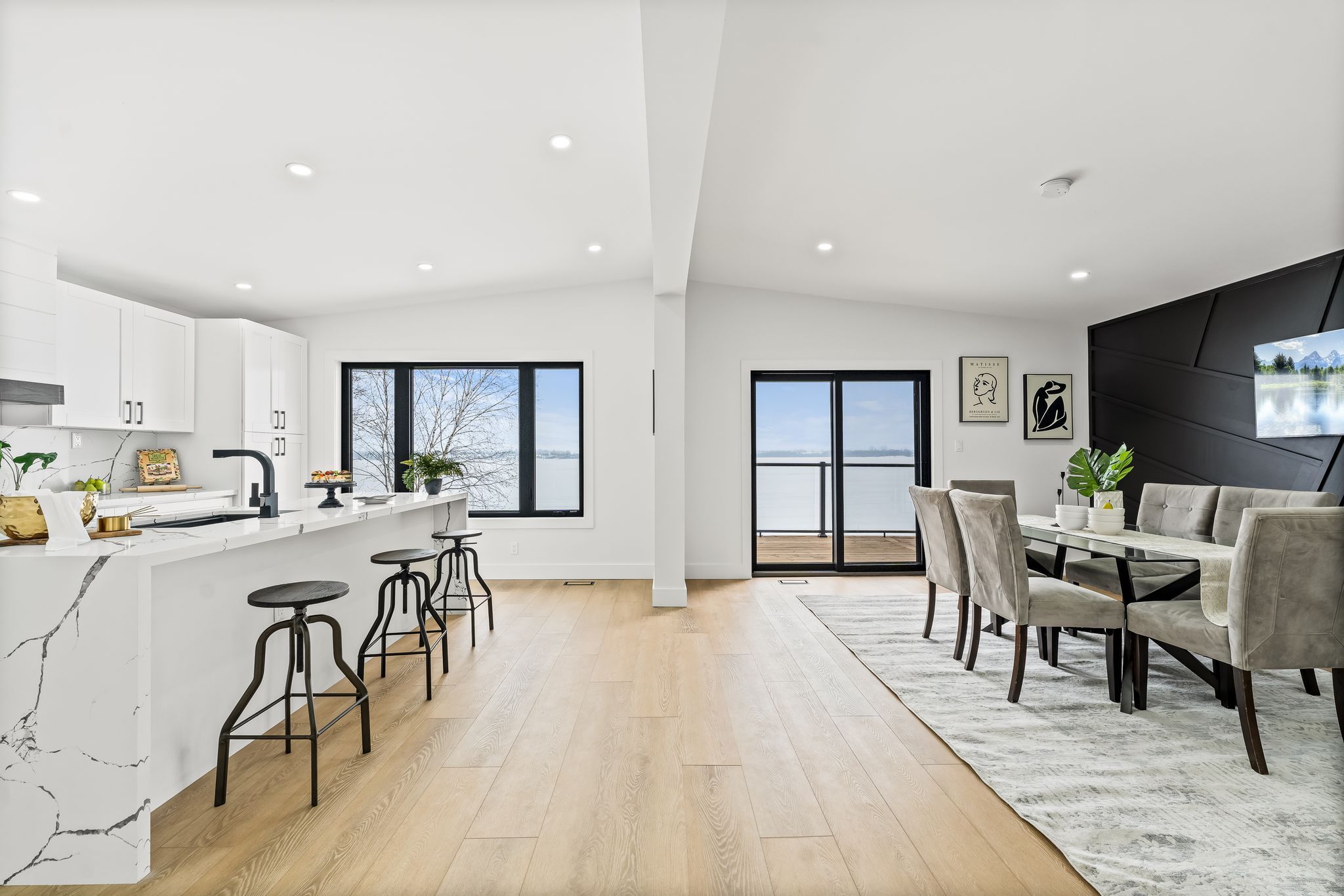 Your dream lakefront retreat awaits! Experience refined lakeside living in this stunningly renovated 5-bedroom, 3-bathroom waterfront home, offering over $400,000 in upgrades and approximately 50 ft of pristine shoreline with private dock, excellent fishing, and a sandy-bottom waterfront ideal for swimming. Set on a private lot with breathtaking views, this exceptional 4-season residence blends luxury, comfort, and lifestyle in one remarkable property. The designer kitchen is the heart of the home, featuring waterfall granite countertops, premium stainless steel appliances, custom cabinetry, and a spacious pantry, all opening to a bright dining area with walkout to a brand-new deck overlooking the lake - perfect for elegant entertaining or peaceful mornings by the water. A sunken living room with feature fireplace and walkout to the patio creates a warm, inviting atmosphere while seamlessly connecting indoor and outdoor living. Outside, your private waterfront oasis awaits - dock your boat, swim from the sandy shoreline, cast a line at sunset, or simply relax and take in the view. Generous bedrooms and beautifully updated bathrooms offer both style and comfort, completing this thoughtfully redesigned home. A rare turnkey opportunity - ideal for year-round living, a private retreat, or an exceptional investment property.