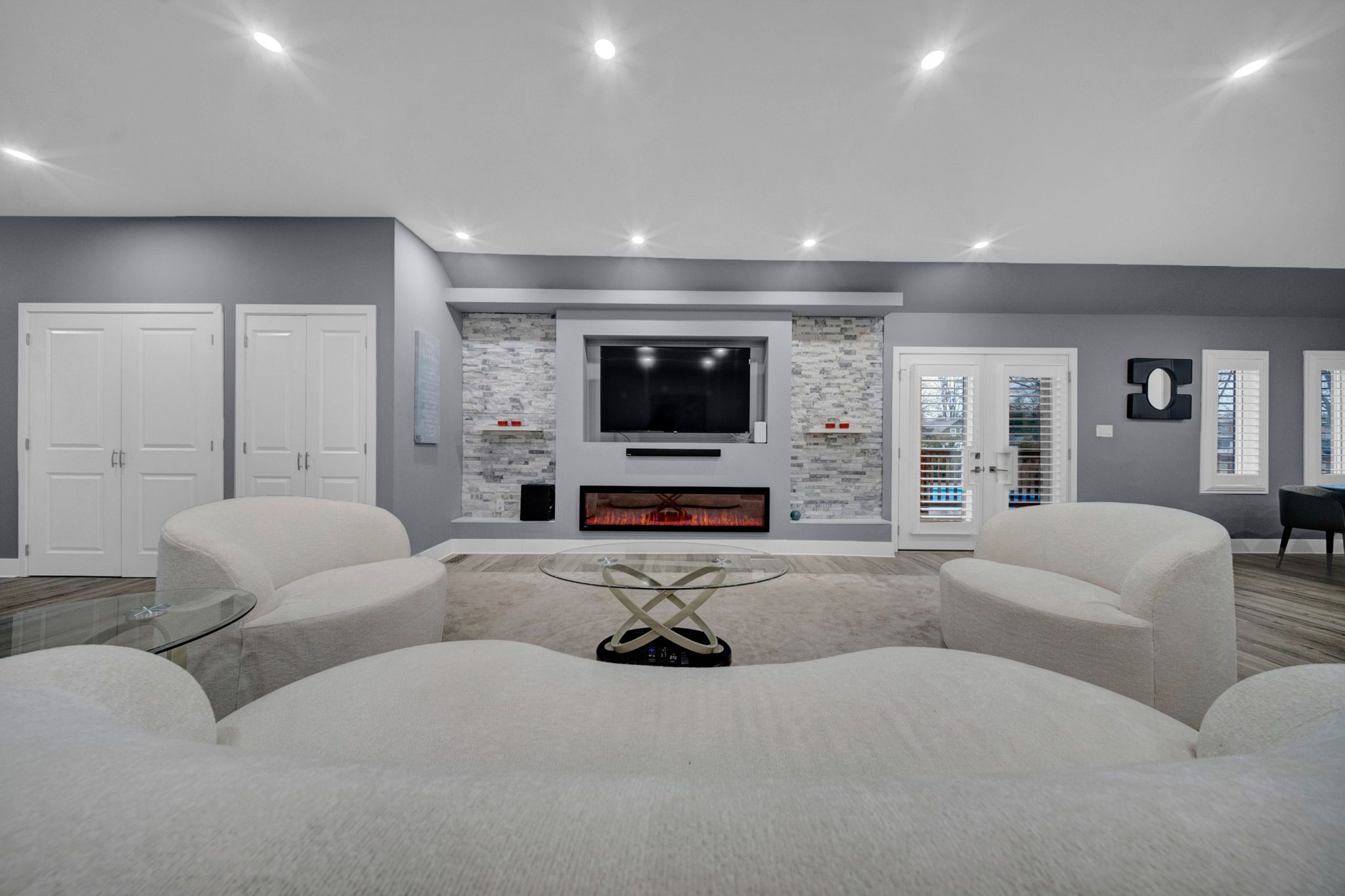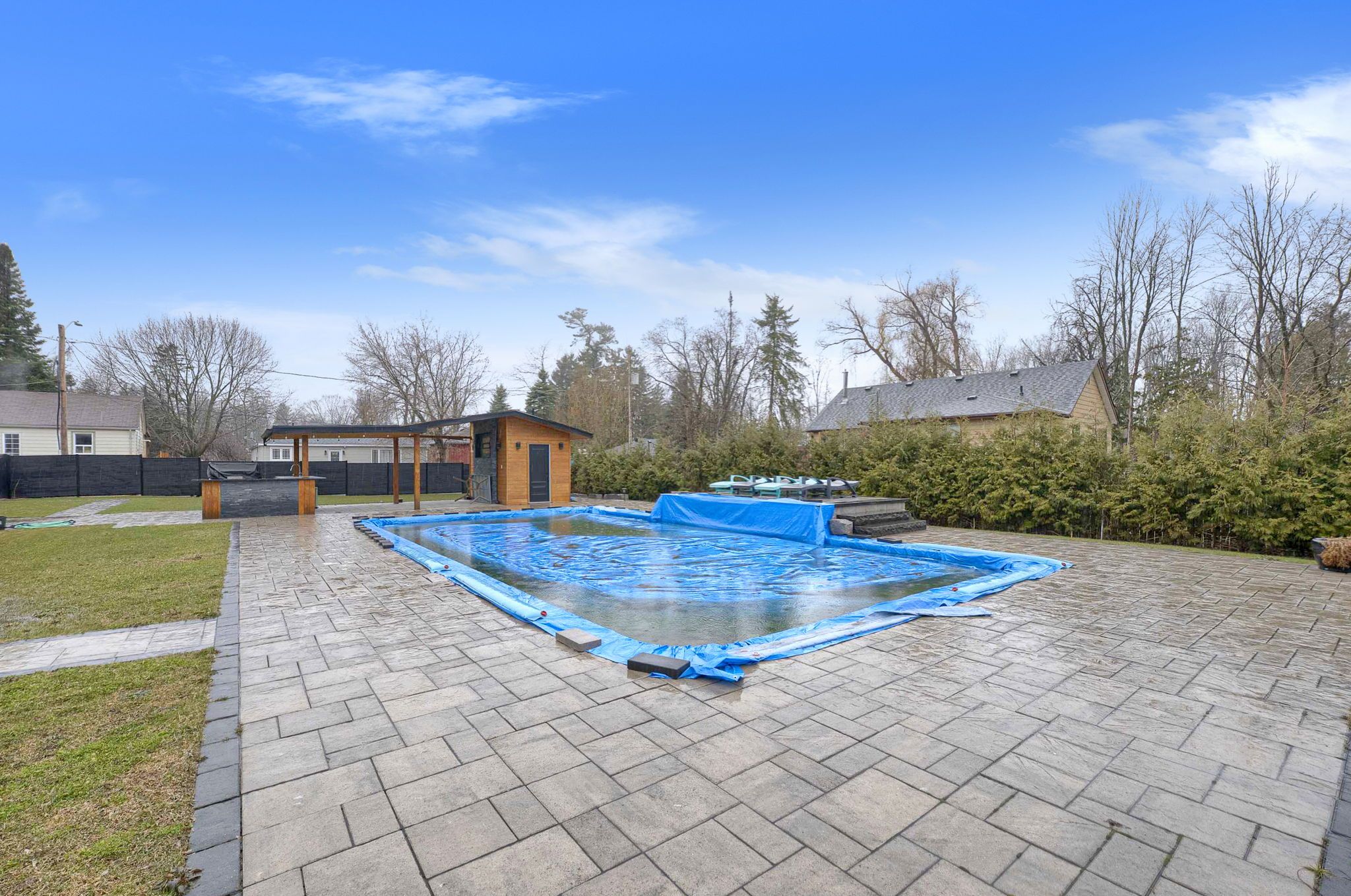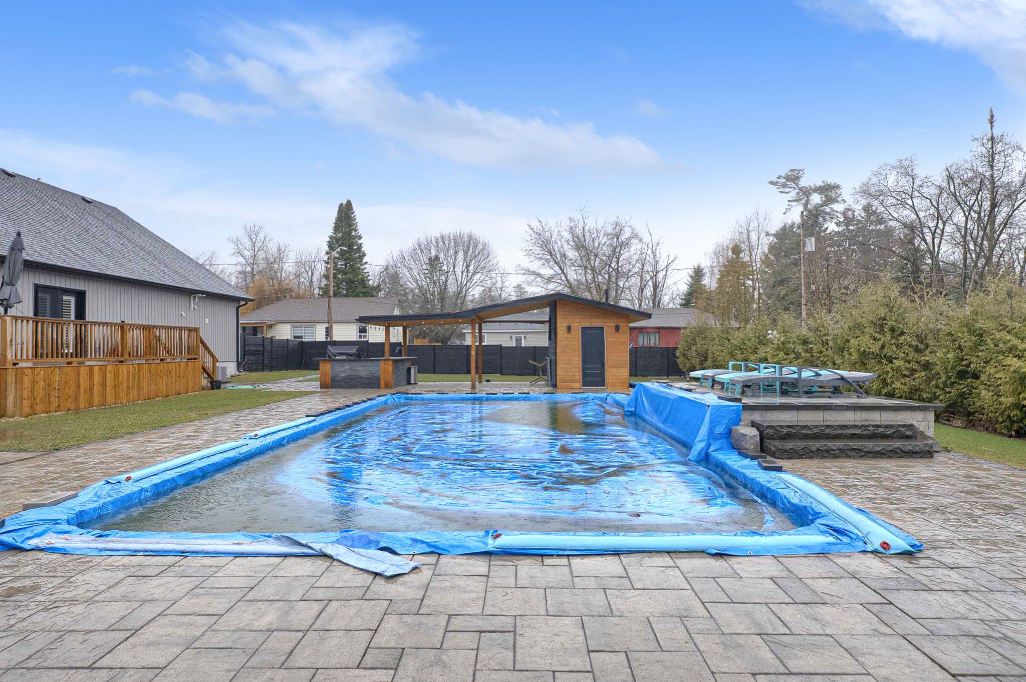 Welcome to 5 melody lane, a beautifully renovated bungalow set on a generous half-acre lot in the heart of georgina. Offering the perfect blend of modern updates and outdoor living, this property is ideal for those seeking both comfort and lifestyle. Step inside to a bright, open-concept layout designed for effortless living and entertaining. The spacious kitchen features a large centre island and flows seamlessly into the main living areas, all complemented by high ceilings, abundant pot lights, sleek laminate flooring, and elegant california shutters throughout. This home offers 3 well-sized bedrooms, including a stunning primary retreat complete with a luxurious 4-piece ensuite featuring an oversized glass shower-your own private escape. Outdoors is where this property truly shines. Enjoy summer days in the inground saltwater pool, or entertain guests in the incredible outdoor kitchen equipped with a wet bar, bar fridge, and dedicated living space with tv hookup. A convenient 3-piece outdoor bathroom, cozy firepit area, and full privacy fencing complete this backyard oasis. Let's not forget this property has access to a private beach within walking distance. Additional highlights include a detached 2-car garage and ample space for family living, entertaining, and relaxation-all set on a beautifully sized lot. A rare opportunity to own a turnkey bungalow with resort-style amenities just minutes from everything georgina has to offer.
