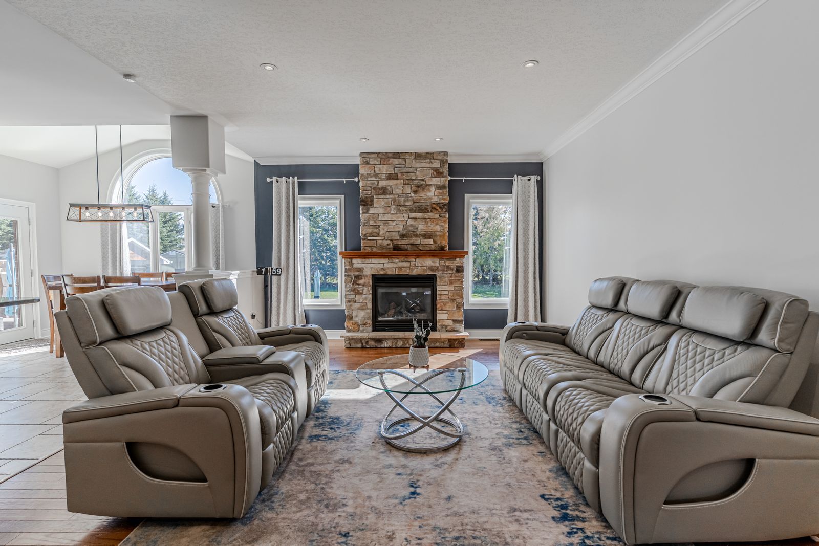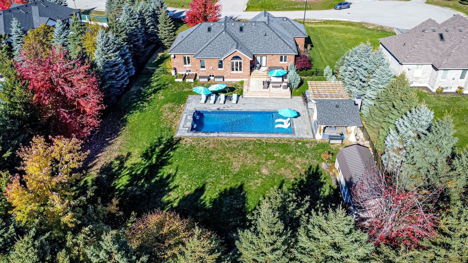Over 4,000 sq ft of luxury, premium upgrades, & resort-style outdoor living with an inground pool & covered lounge - all in the heart of snow valley! Located on a quiet cul-de-sac surrounded by mature trees and rolling greenspace, this showstopping bungaloft offers a rare blend of privacy and outdoor luxury in a coveted neighbourhood. Enjoy a tranquil lifestyle in a safe and established community just minutes from hiking, golf, and conservation areas, with snow valley ski resort, downtown barrie, and hwy 400 all close by. Set on an expansive lot, this home delivers a backyard that rivals a resort, complete with an 18x44 ft inground pool with 3 waterfall features and full sun exposure, plus a relaxing hot tub on the spacious deck. The outdoor pergola-covered kitchen and dining area delights with a built-in bbq, granite counters, and an adjacent lounge with a wood fireplace, ceiling fan, and tv mount - perfect for evenings under the stars. Professionally upgraded with built-in irrigation, outdoor speakers, automatic lighting, and full fencing, every inch of the exterior has been designed for comfort and indulgence. Inside, the open layout flows through the eat-in kitchen and living room, anchored by a gas fireplace and a walkout to the deck for seamless indoor-outdoor connection. A formal dining room adds refinement, while three main bedrooms include a primary retreat with a walk-in closet, a deck walkout, and an ensuite with a soaker tub and glass shower. The loft offers flexible extra living space, while the dricore protected basement provides even more possibilities with a bedroom, a full bath, a rec room, kitchenette and in-law suite potential. Additional highlights include crown moulding, pot lights, fresh paint, built-in surround sound and security, a 3-car garage with an oversized driveway, and a custom storage shed. A true statement in style, quality, and elegance, this #hometostay offers an unparalleled living experience inside and out!