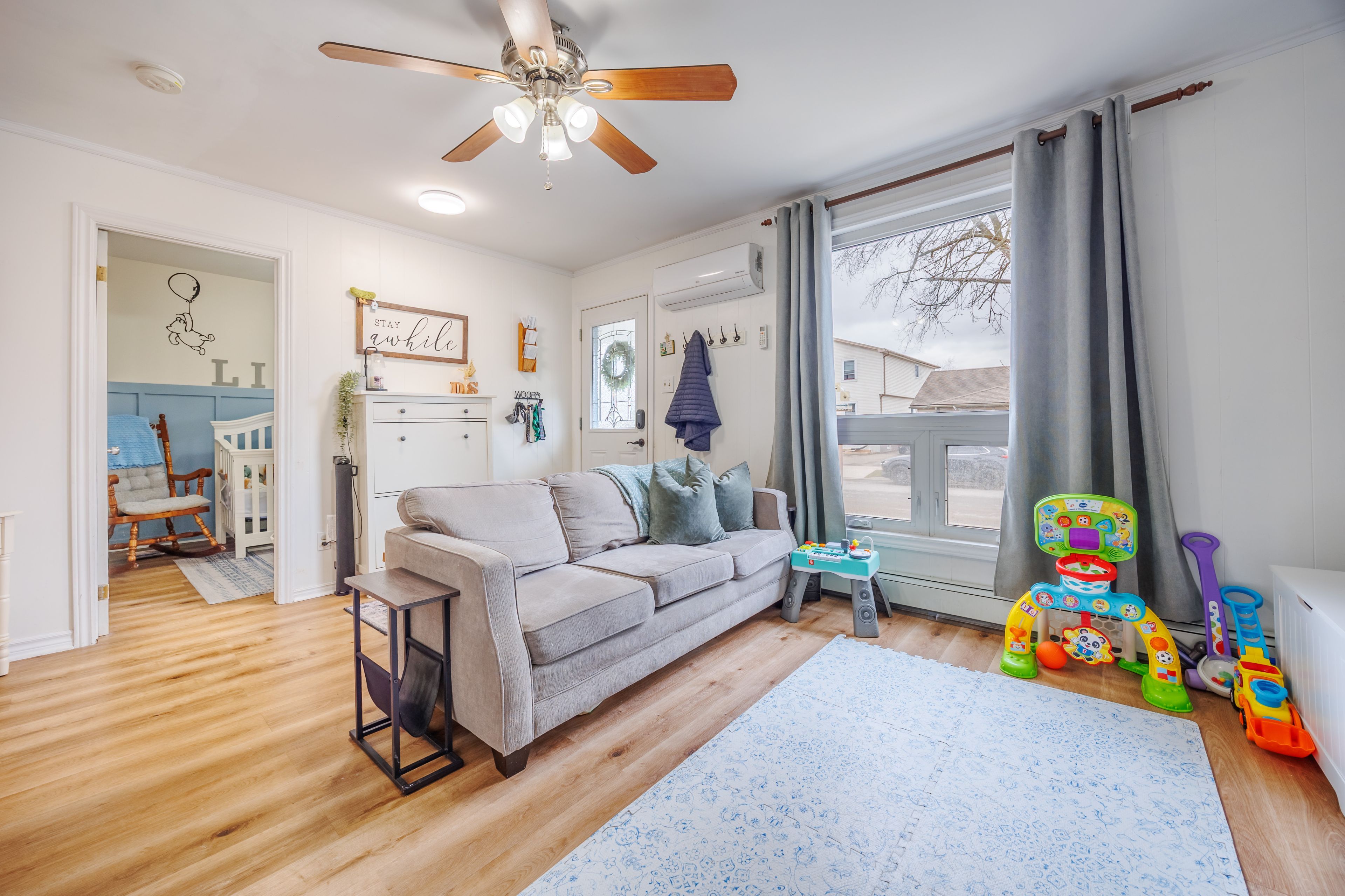 • Bright, open-concept living area with new flooring for a fresh feel.