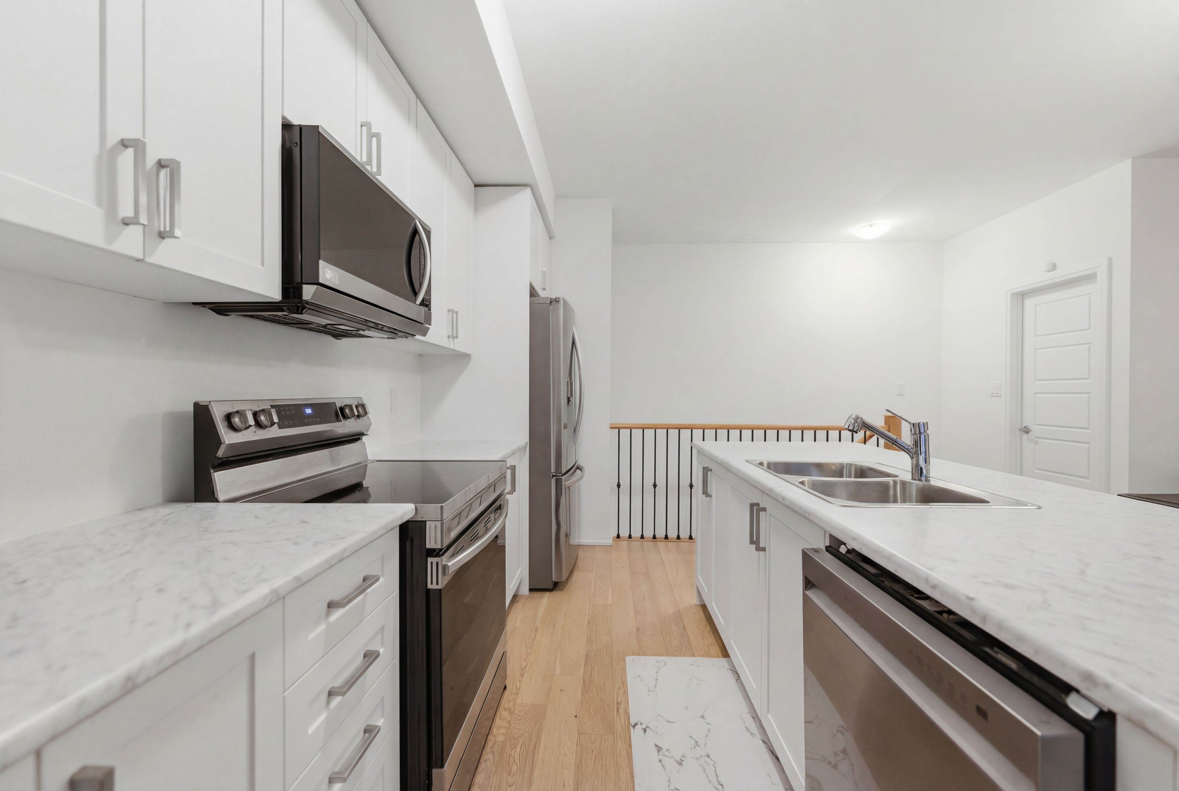 • Functional kitchen with stainless steel appliances for easy meal prep.