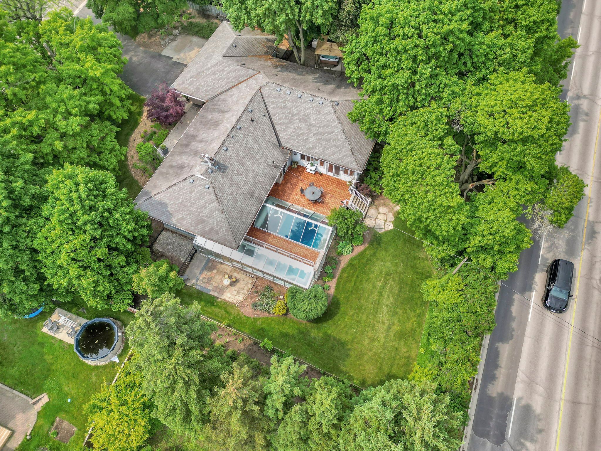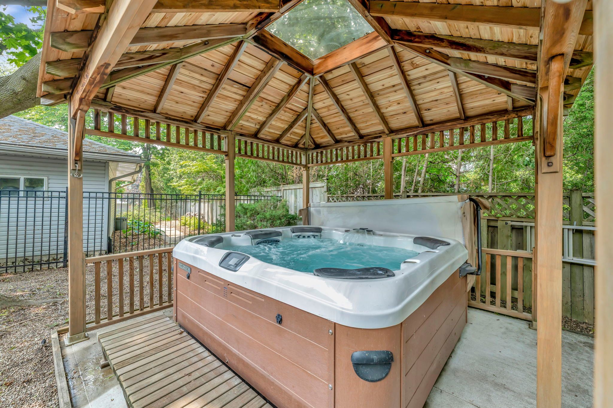 ***open house sat 2-4pm***sprawling bungalow with indoor pool*** nestled in one of guelph's most desirable neighbourhoods and set on a beautifully landscaped 120 x 162 ft lot, this impressive 5-bedroom, 4-bath home offers a spacious layout designed for both everyday living and exceptional entertaining. A large, welcoming front porch sets the tone as you enter this charming home. At the heart of the main level is a chef-inspired kitchen featuring a large island, pantry, and high-end appliances, seamlessly flowing into a sunken dining area and an inviting living room with fireplace, while an additional family room opens to an expansive patio for effortless indoor-outdoor living. The main level offers 4 bedrooms, including a primary suite with walk-in closet and ensuite, complete with french doors leading to a private hot tub-your own personal retreat-along with a tucked-away laundry area for added convenience. The walk-out lower level further extends the living space with a spacious rec room, additional bedroom with wet bar and large bright windows, full bath, and direct pool access-ideal for entertaining or multi-generational living. Enjoy year-round relaxation with your own indoor pool and sauna, all within the comfort of home. Complete with a 3-car (2+1) garage and extended driveway, this home delivers an exceptional blend of space, comfort, and resort-style living in a truly beautiful setting. Call your realtor today for your own private viewing. (