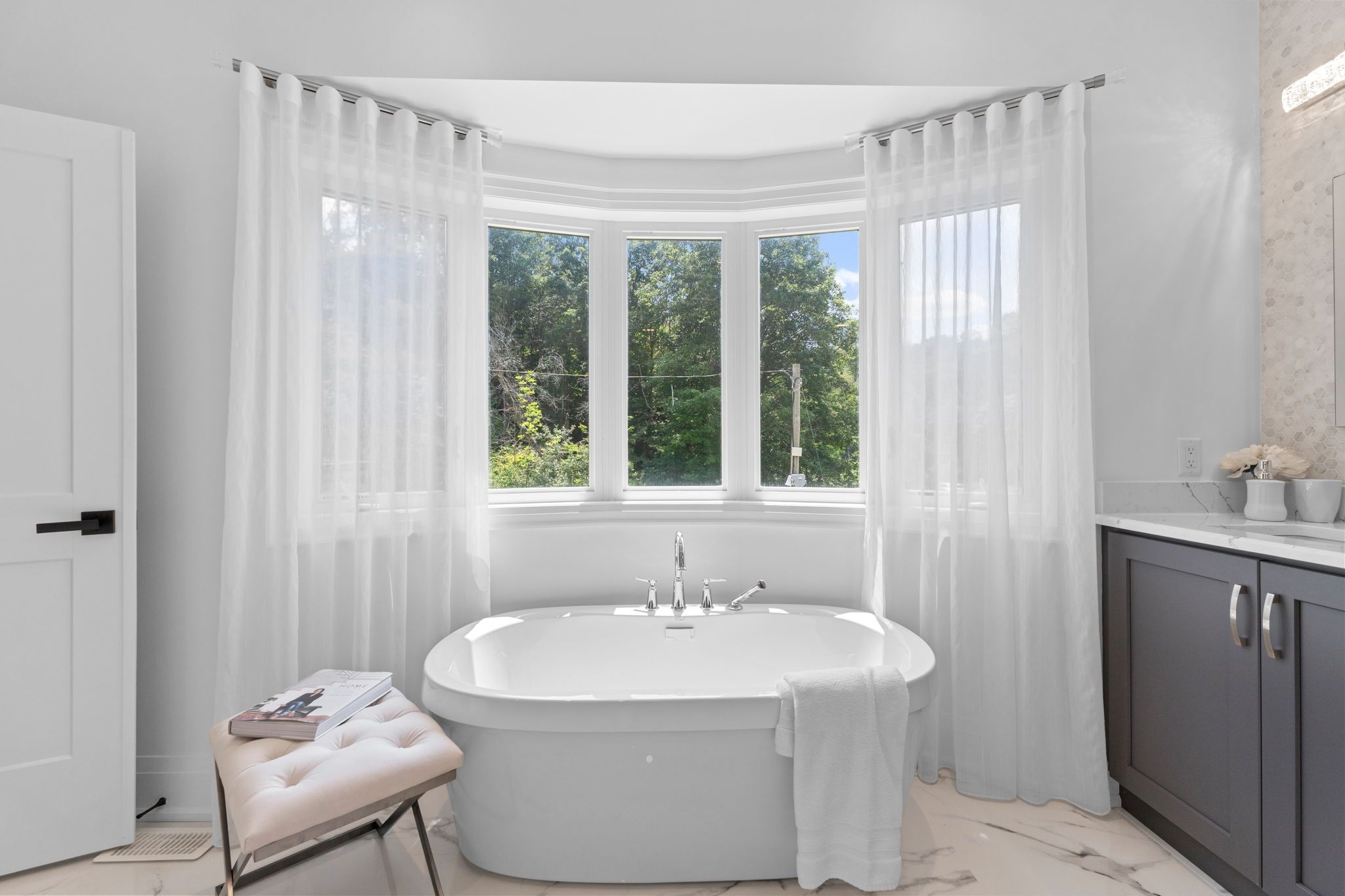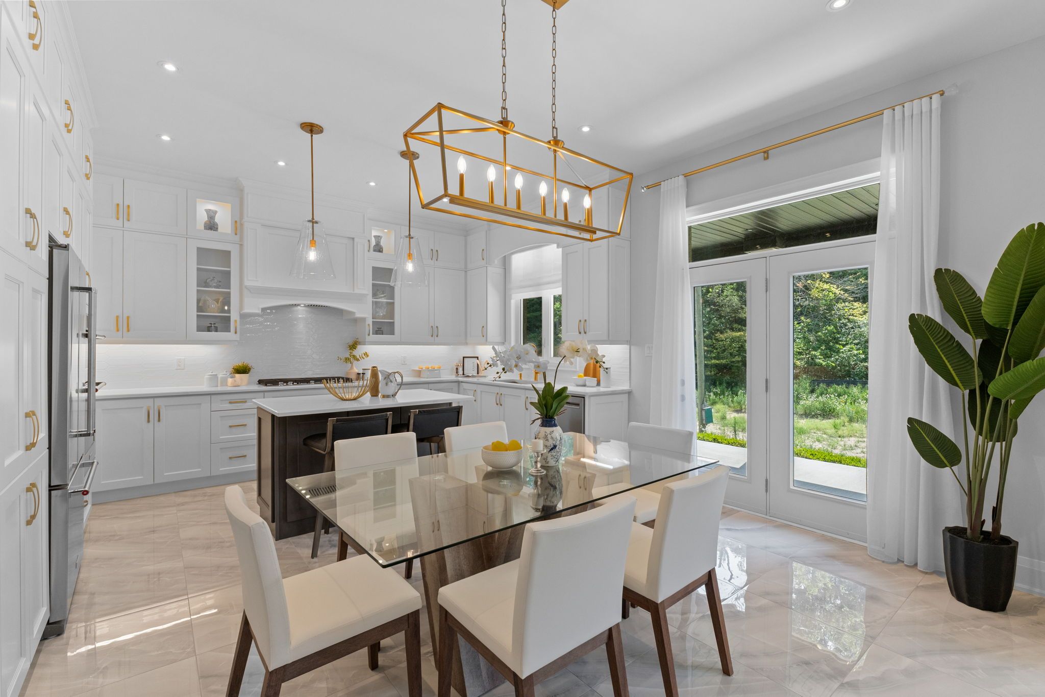 • Gourmet kitchen features quartz countertops and backyard views for relaxation.