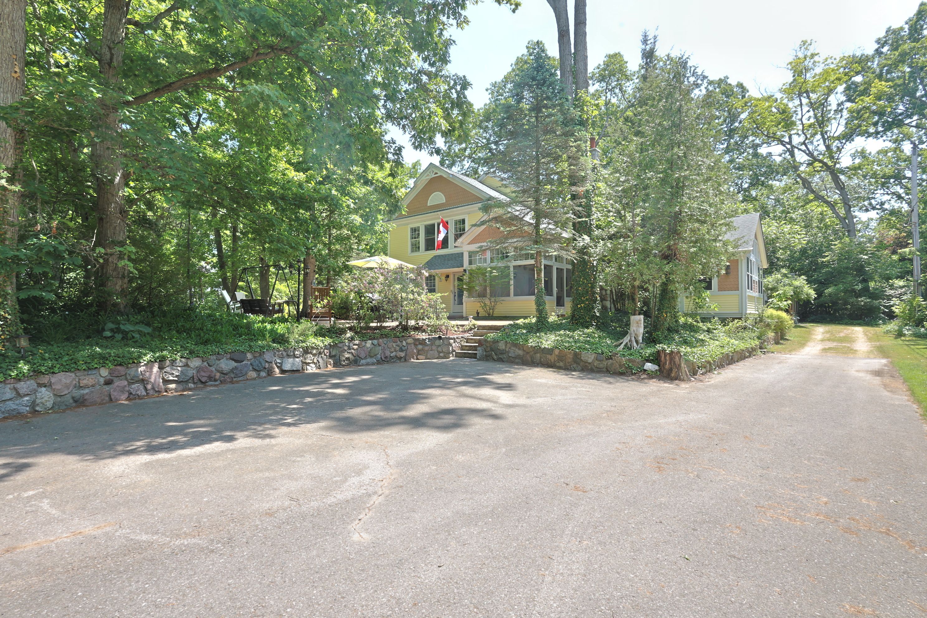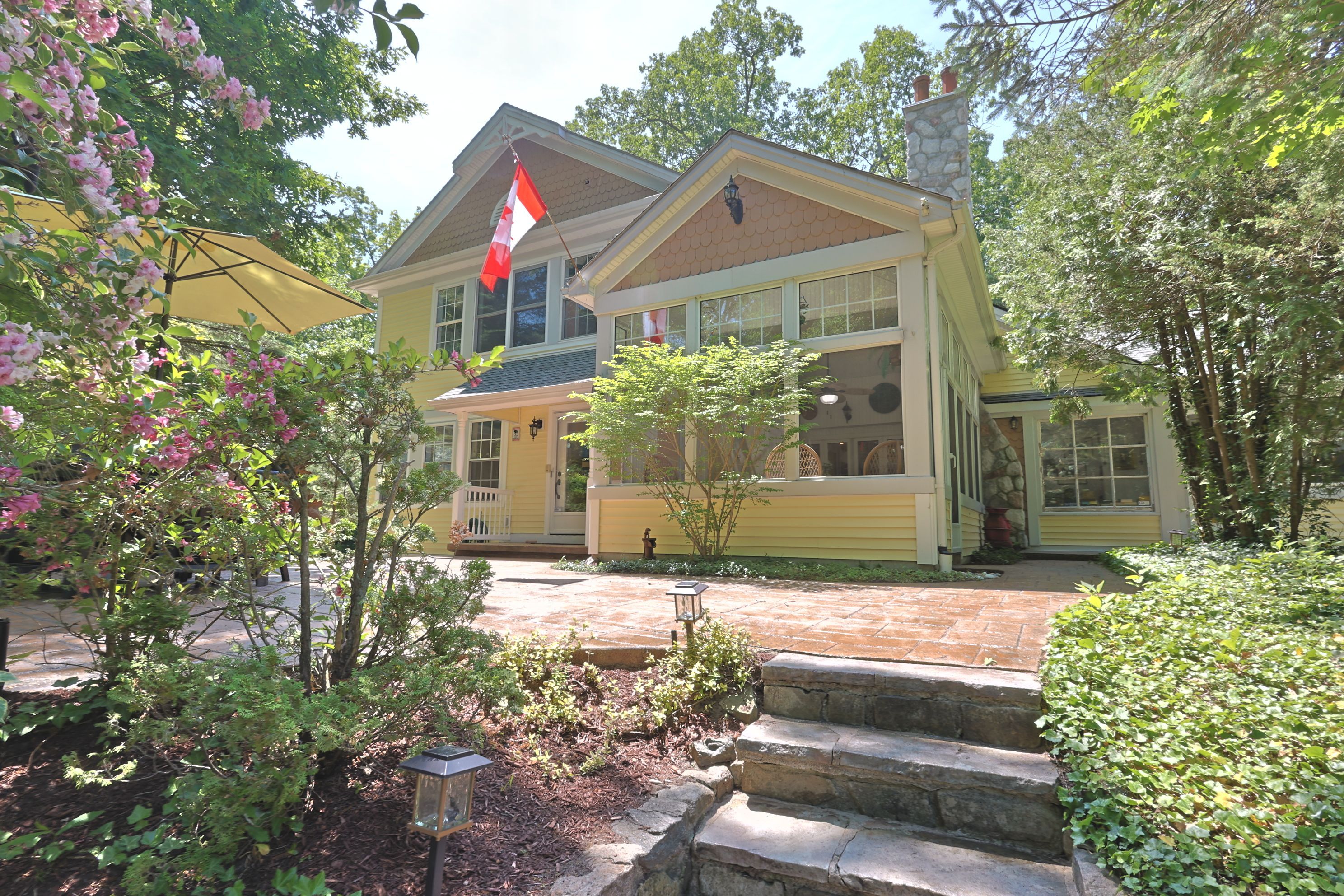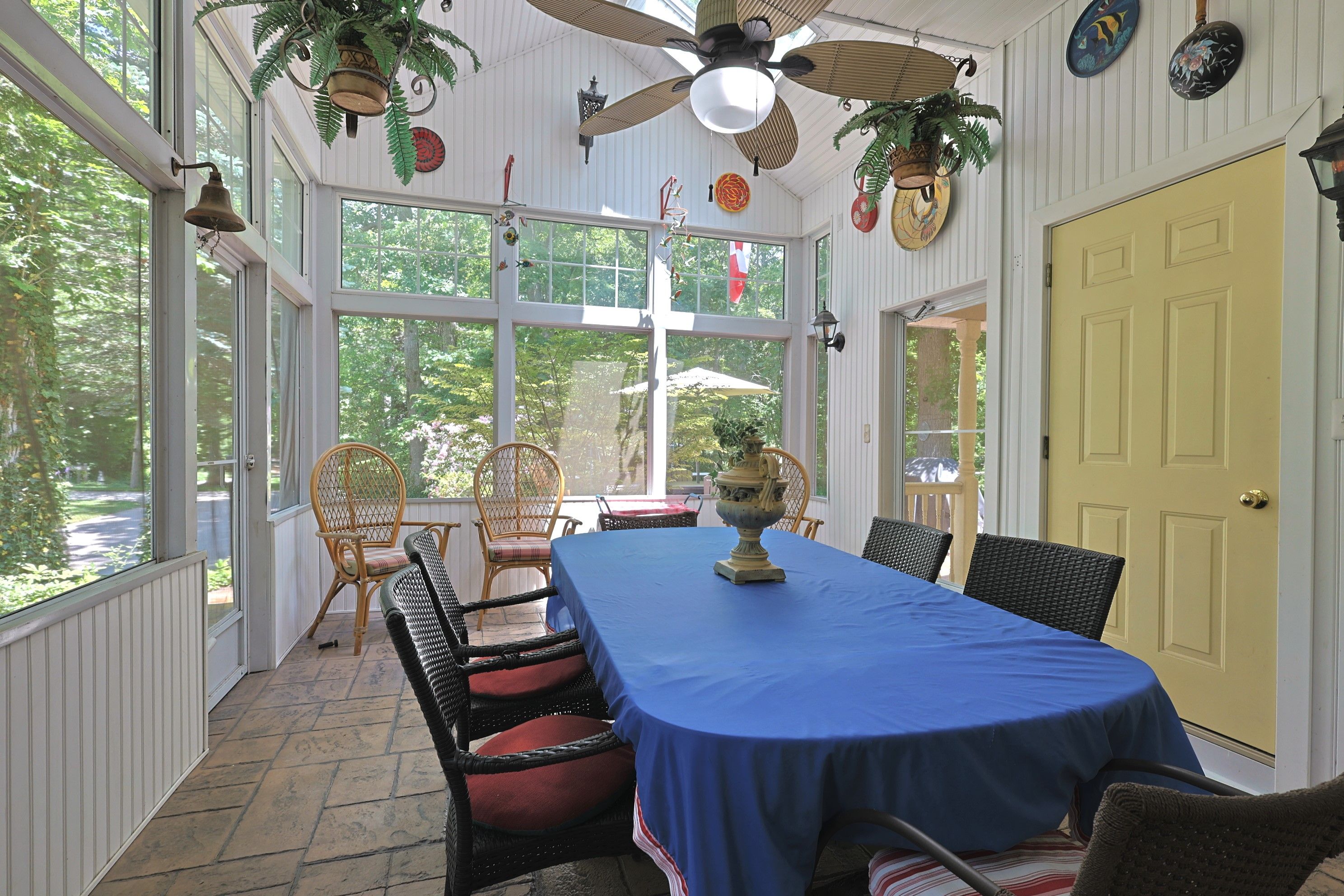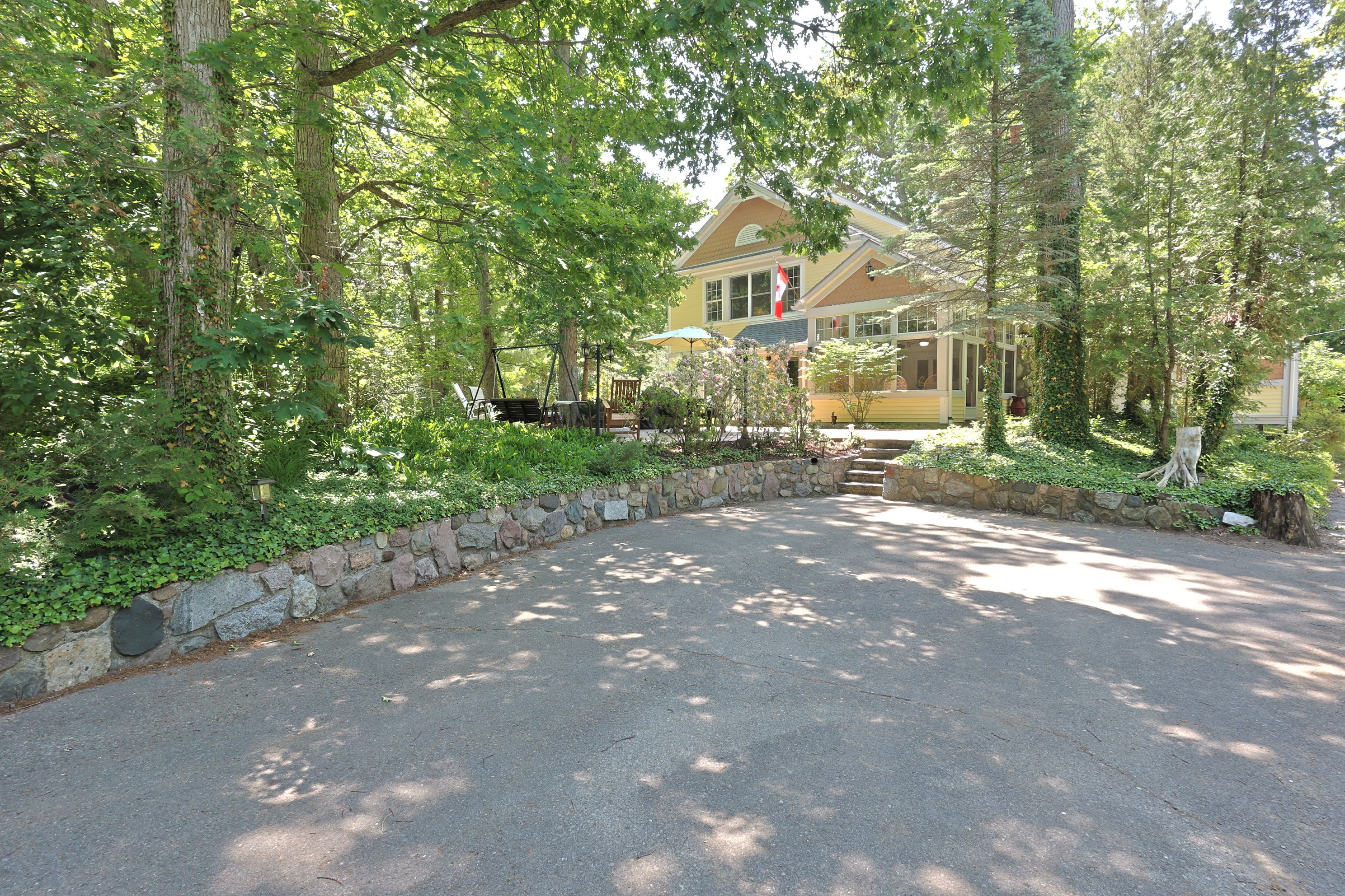 Private oasis in the gated community of oakwood park, grand bend. This property is the perfect blend of character featuring the original 2 bedroom cottage built in the 1920s with a spacious 3 level addition in 2002 to create a 3600 sqft living space featuring 7 bedrooms, 5 bathrooms, 4 fireplaces, 2 kitchens, spacious screened in patio with heated floors and space for the whole family to enjoy life by the beach on a double wide lot. The home offers great curb appeal with a mature tree setting, granite stone retaining walls leading to landscaped gardens, stamped concrete front patio, composite accent shakes with vinyl siding exterior and terraced stone leading to the lower level walkout patio. Inside, the original cottage brings back the charm with a galley style kitchen leading to a large eating area with a natural wood fireplace on a stone accent wall. Spacious living room rebuilt in the 90s offers wood cathedral ceilings, a wall of windows for natural light throughout and space to unwind. 2 bedrooms and a full bathroom so it has everything if you wanted to create a separate living area. The three level newer addition brings functional living space and modern amenities to the home. The main floor offers an open concept great room that includes pecan hardwood flooring, gas fireplace in the living room, granite countertops with sit up bar in the kitchen, stainless steel appliances and eating area. Upstairs you have your primary bedroom suite complete with exposed wood beams on a cathedral ceiling, gas fireplace, walk in closet, and full ensuite bath with heated floors and tile shower. 2 additional bedrooms, sitting area and full bath complete the second level with another 2 bedrooms and full bath finishing off the main floor. Walk out lower level with heated floors includes a family room with a gas fireplace on a stone accent wall, hot tub room with exterior vent, bathroom and laundry. Just steps to one of the best sandy beach on lake huron and oakwood golf course