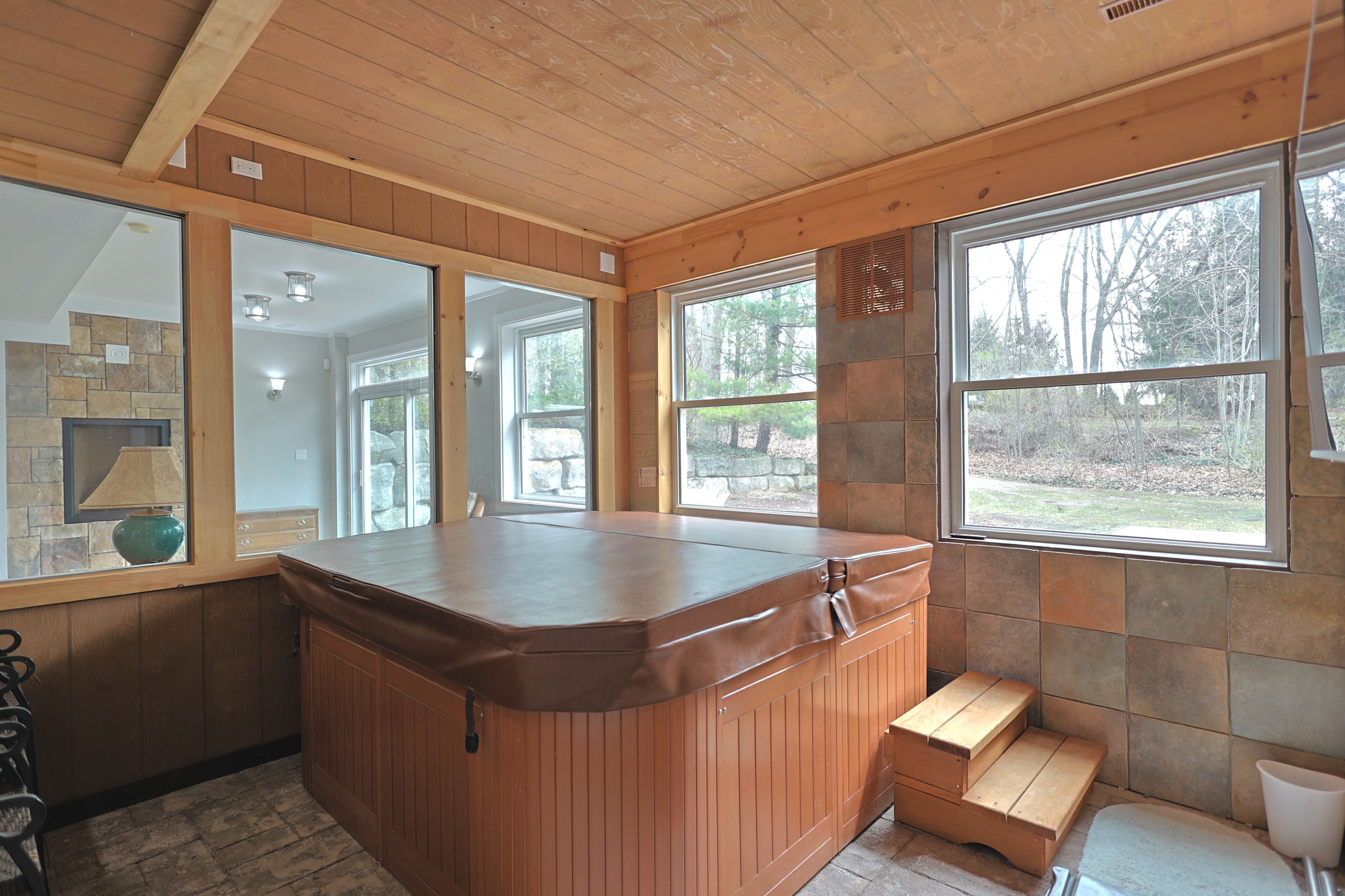 • Lower level has a family room, hot tub room, and heated floors for relaxation.
