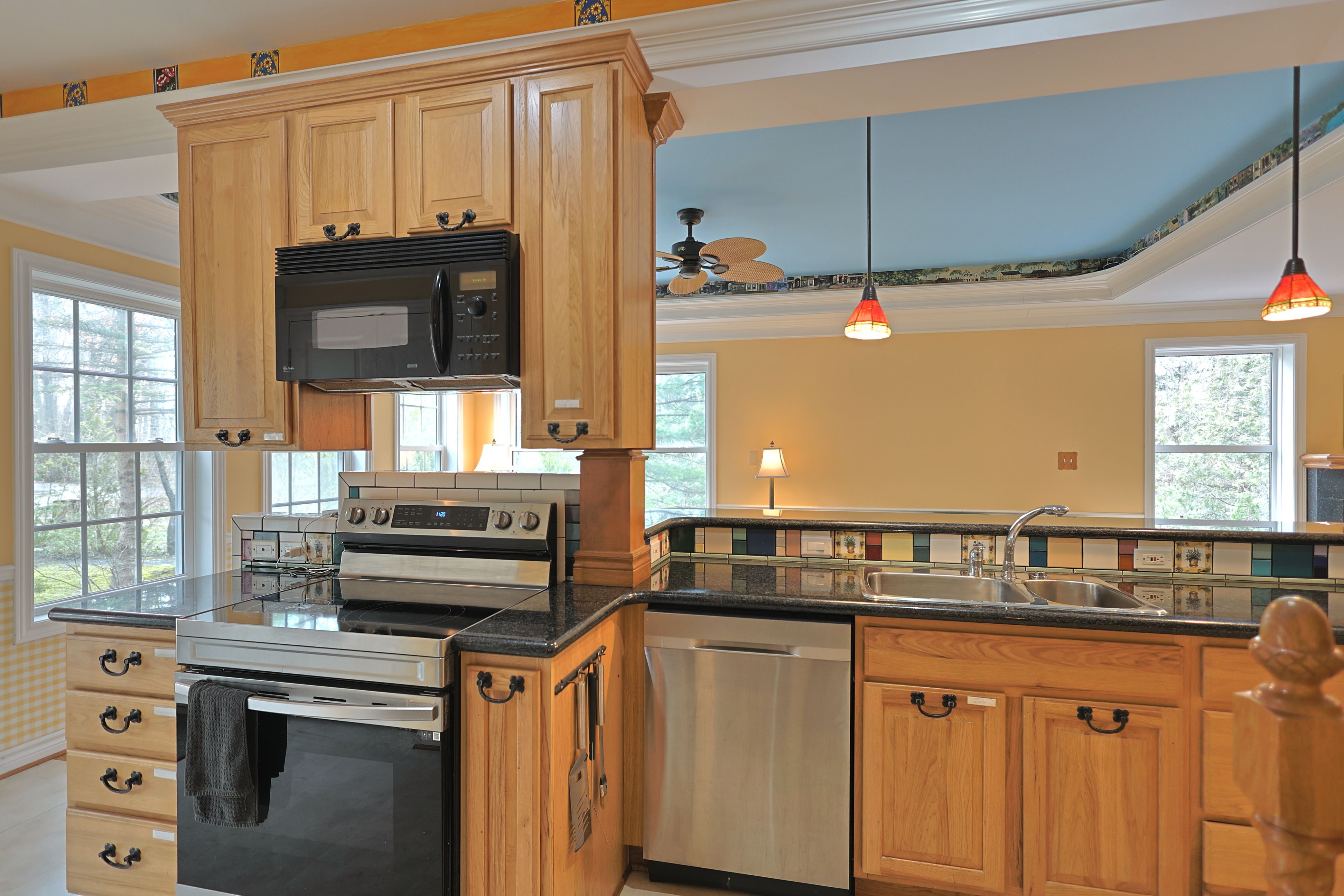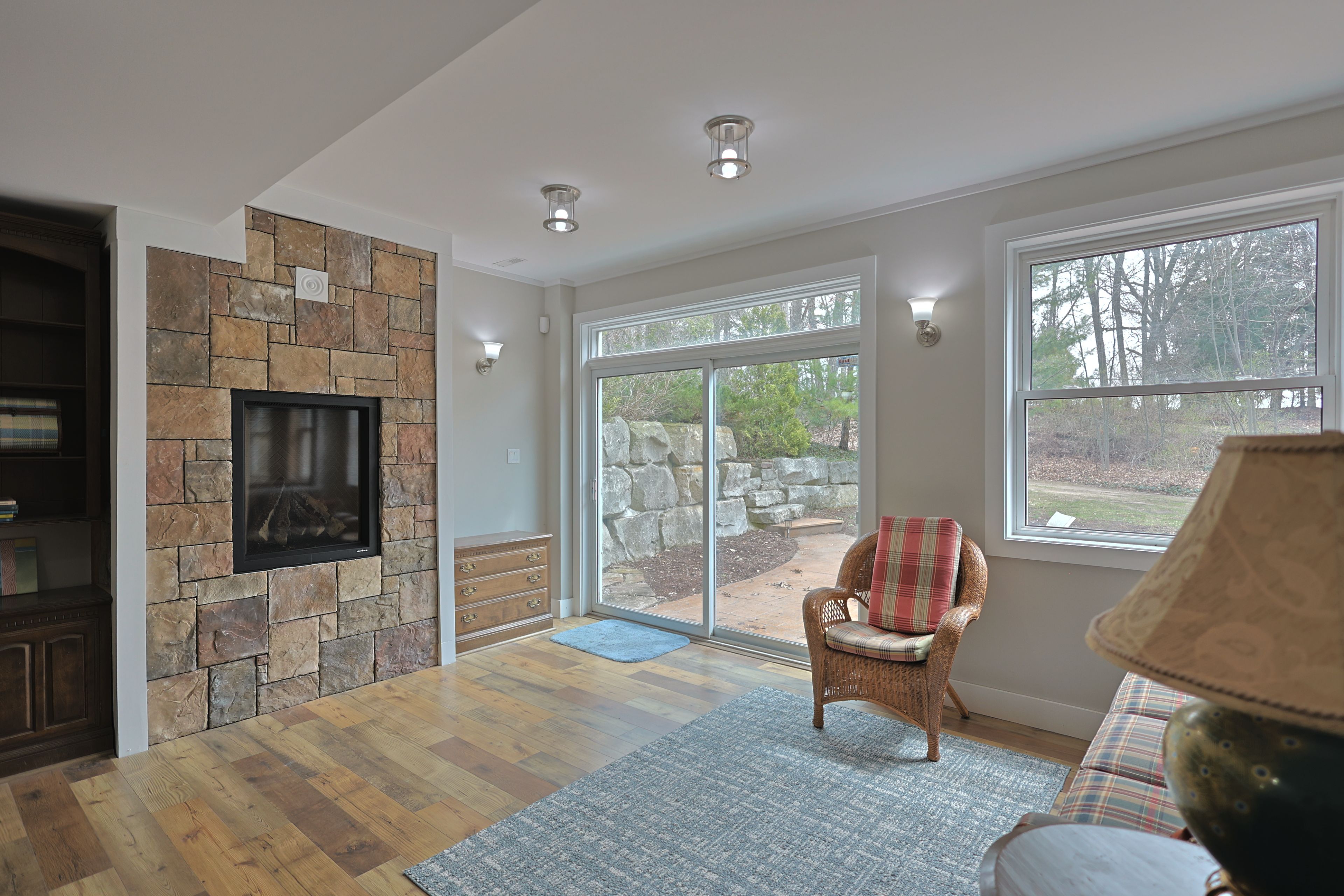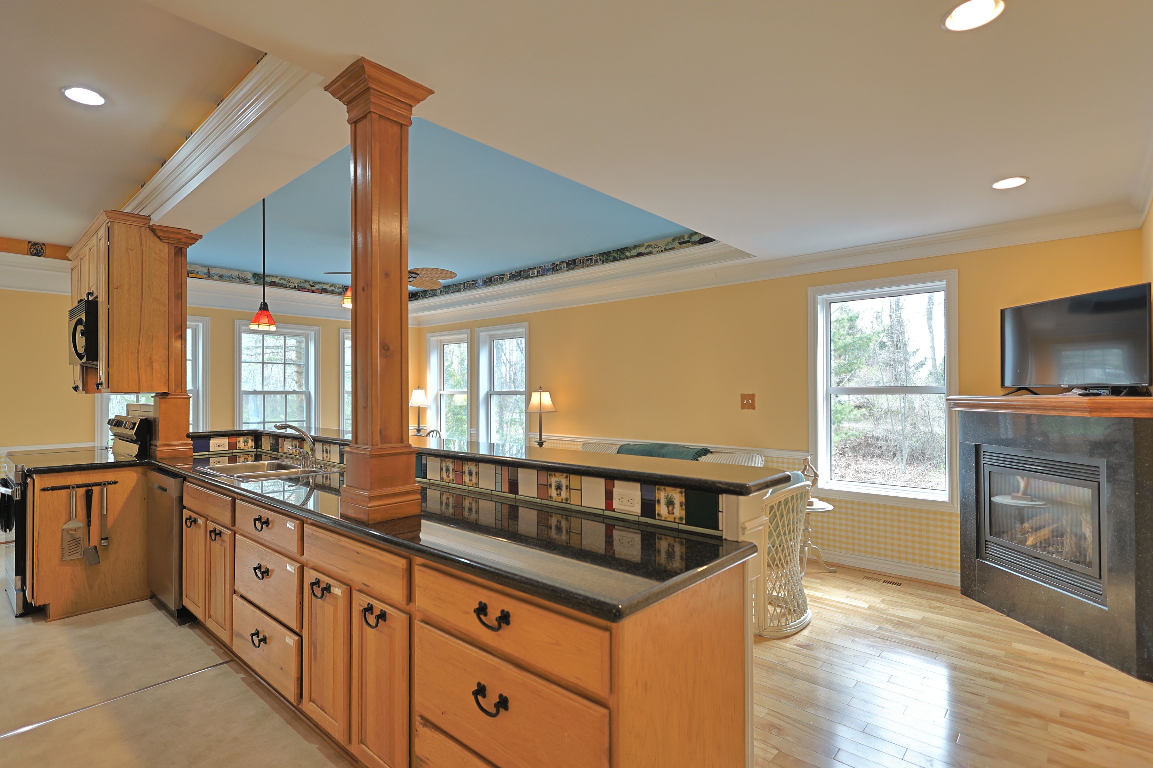 • Modern addition features open concept great room with granite countertops and gas fireplace.