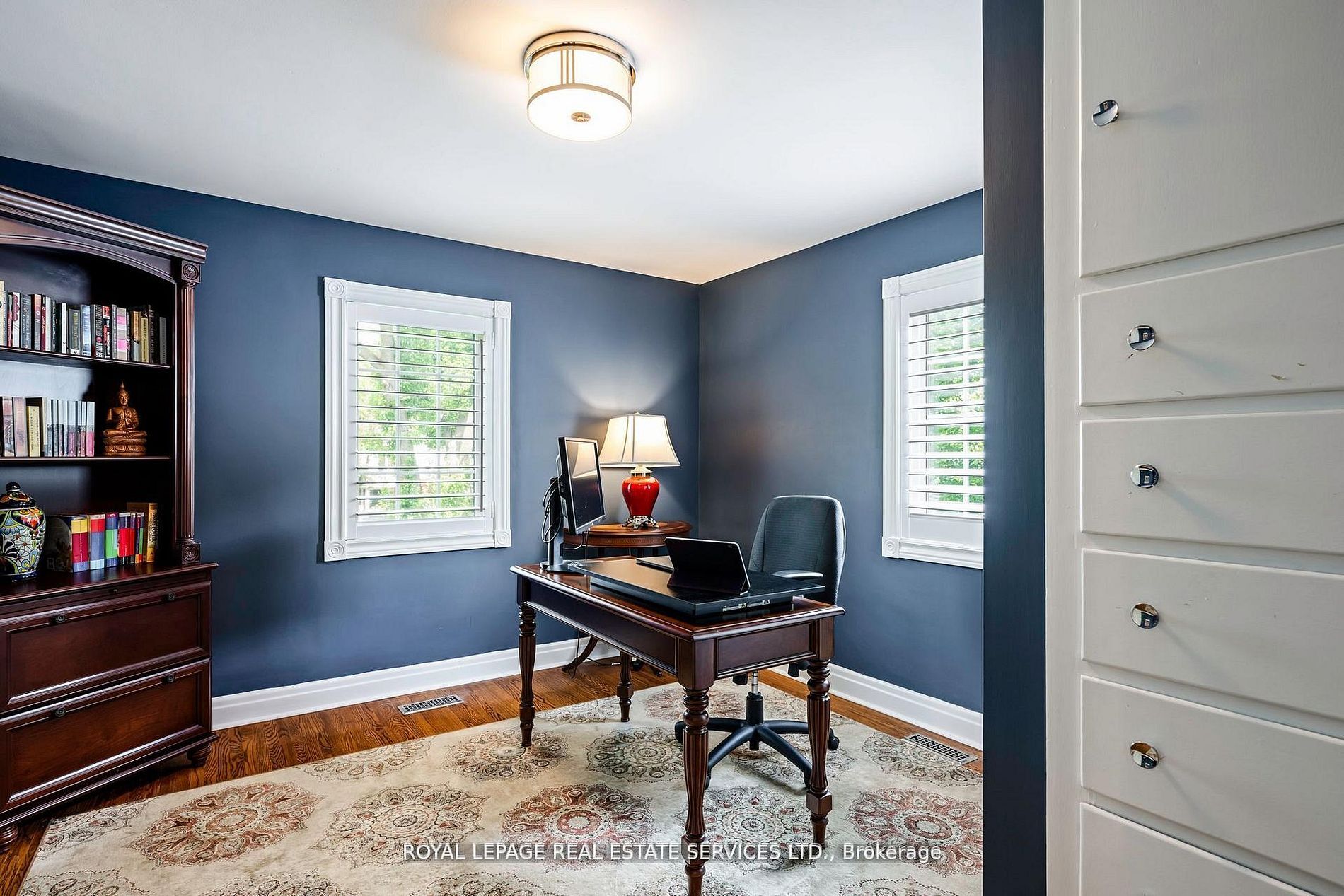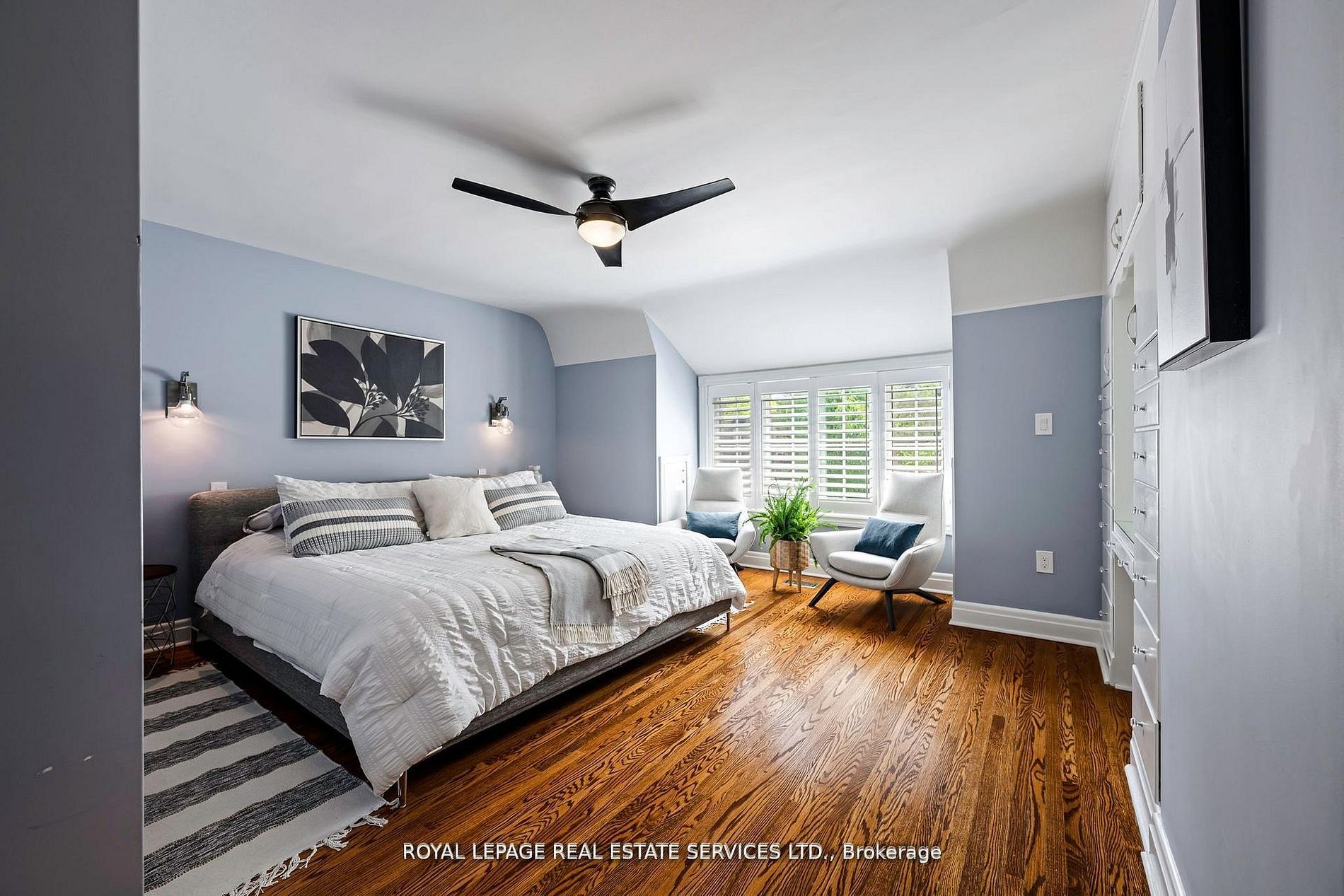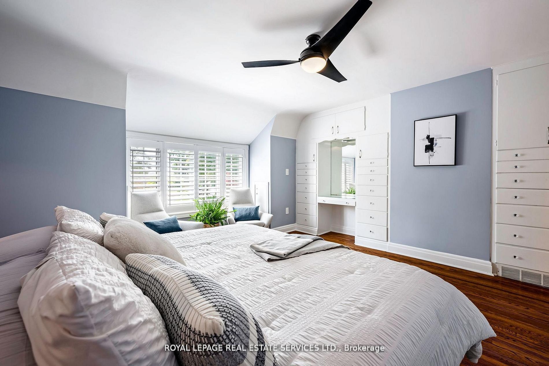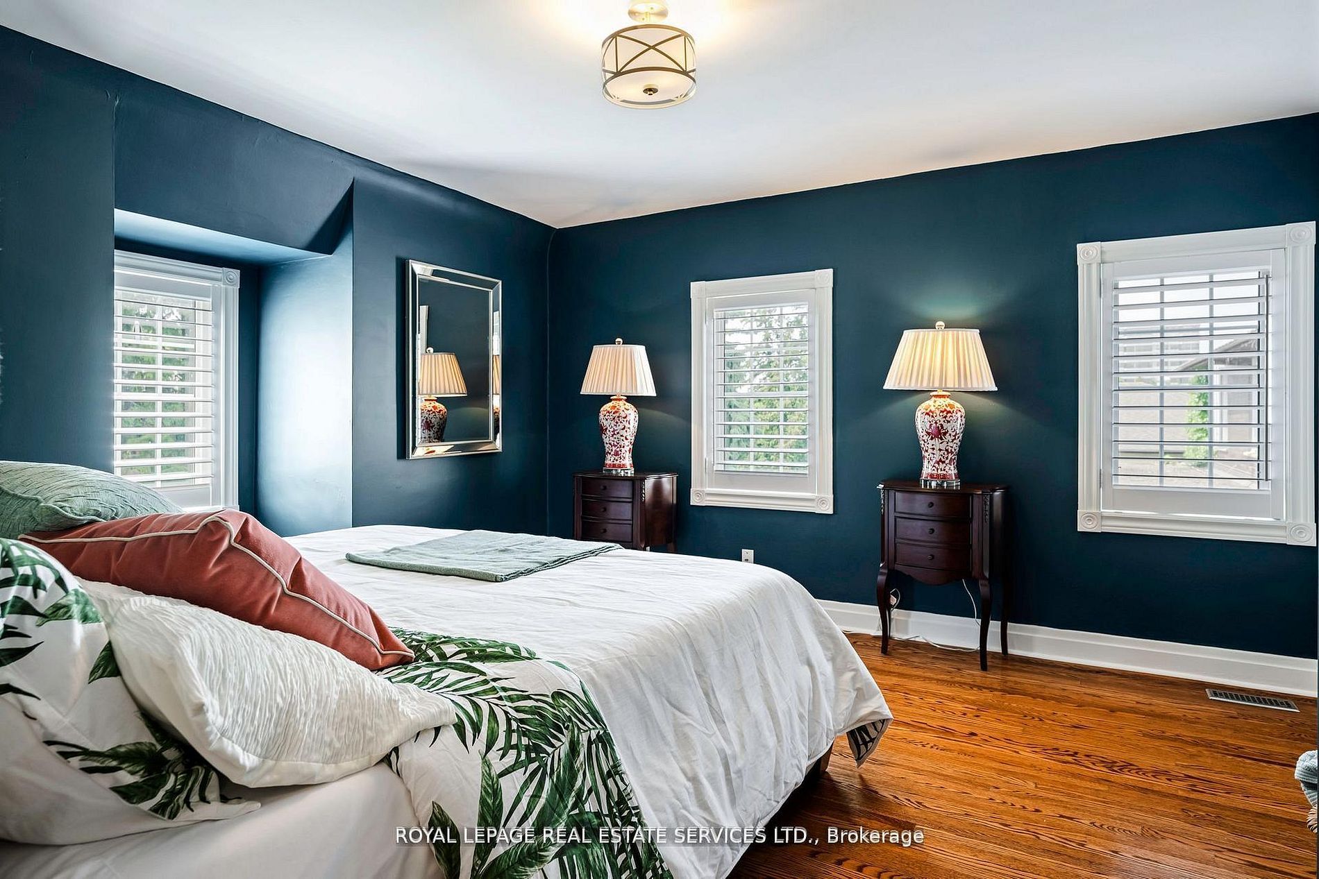 Tucked gently atop a private peel village hill with just a few distinguished homes, we bring you a timeless dutch colonial home gracefully set on a majestic 1/3-acre pie-shaped lot, with lush, professionally landscaped grounds kept vibrant year-round by a lawn irrigation system. A stunning loggia (porch) acts as a seamless extension of your living space, providing a sanctuary for many seasons of blissful outdoor time, rain or shine. Imagine hosting bbqs with family and friends without ever worrying about the weather. Inside, craftsmanship takes center stage, exuding refined elegance in every detail. The newly renovated designer kitchen is a showstopper, wrapped in bold mission-style tiles that marry vintage character with modern sophistication. Its the perfect blend of artistry & utility designed to inspire both culinary creativity and conversation. With 4 beautifully appointed bedrooms (hidden cedar closet in 3rd bedroom), including a serene primary retreat with a sleek, modern ensuite bath, the home offers both comfort and quiet sophistication. Three inviting fireplaces (2 in use) anchor the living areas with warmth, while each space is thoughtfully curated for both style and practicality. A well-designed mudroom-laundry room with built-in storage shelves makes the everyday a breeze. A fabulous two-car garage adds flexibility, with a full second-floor loft ready to be transformed into a studio, home office, gym, or guest suite. A long driveway ensures plenty of parking room for guests. A home with heart, soul, and whispers of a country manor all hidden in plain sight in beloved peel village. Perfect for the elite buyer who seeks not just a home, but a lifestyle of quiet distinction, artistic flair, and effortless grace. Walk to go transit, train station, gage park, trails, etobicoke creek, shops, schools, restaurants. Just minutes to highways 410, 407, and 401.