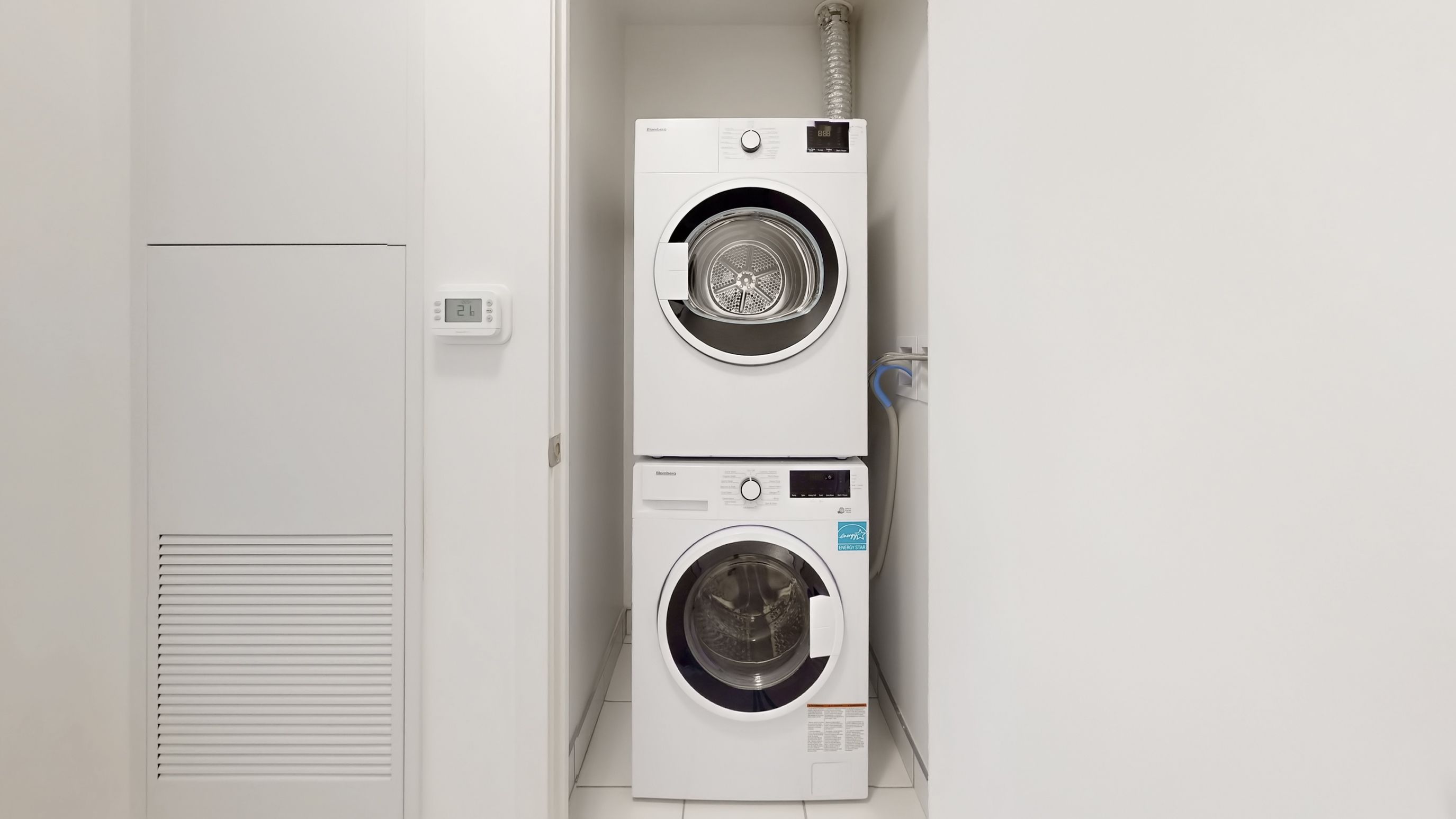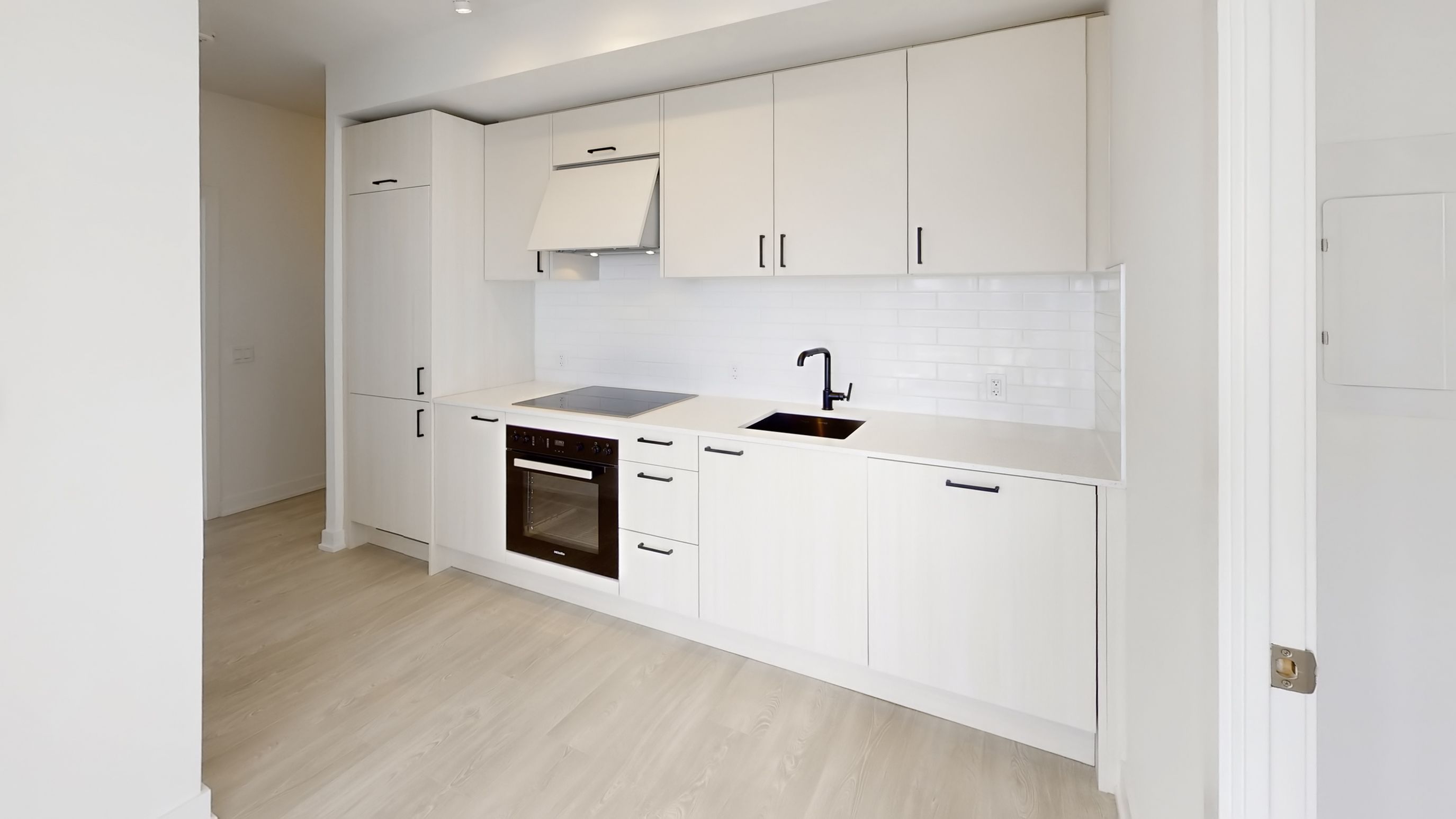 • Modern kitchen with quartz countertops and integrated appliances for easy cooking.