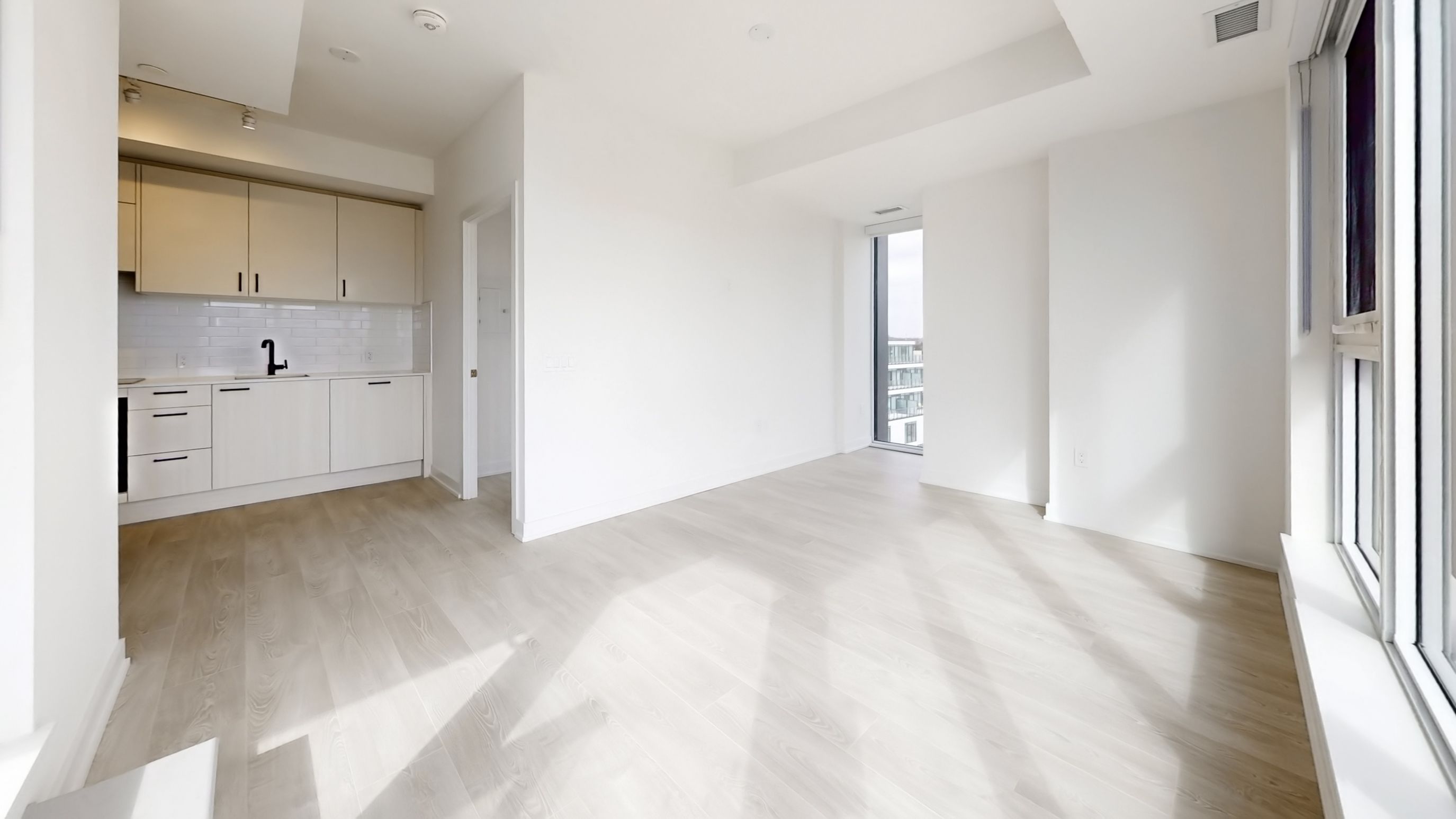 This aspen ridge built unit comes with a parking spot and a locker! It's bright and contemporary 6th-floor, 2-bedroom suite offers an excellent sense of space with soaring ceilings, wide-plank flooring, and floor-to-ceiling windows that fill the home with natural light and showcase open urban views. The open-concept living and kitchen area is well proportioned for both relaxing and entertaining with a layout that maximizes every square foot. The sleek, modern kitchen features integrated appliances, quartz countertops, full-height cabinetry, and a stylish tile backsplash, creating a functional and streamlined cooking space without sacrificing storage. The 2nd bedroom can be used as a den or office overlooking the terrace. Step out from the living room to the private terrace to enjoy fresh air and city views. The three-piece bathroom includes a glass-enclosed shower. In-suite stacked laundry adds everyday convenience. Situated in a vibrant, master-planned community at don mills & eglinton, residents enjoy quick access to the dvp, the upcoming eglinton crosstown lrt, and an array of nearby amenities, including shops and dining along laird & wicksteed, popular local restaurants, and green spaces such as sunnybrook park and wilket creek. A fantastic opportunity to live in a modern, transit-oriented neighbourhood with style, comfort, and convenience. Some pictures have been virtually staged.
