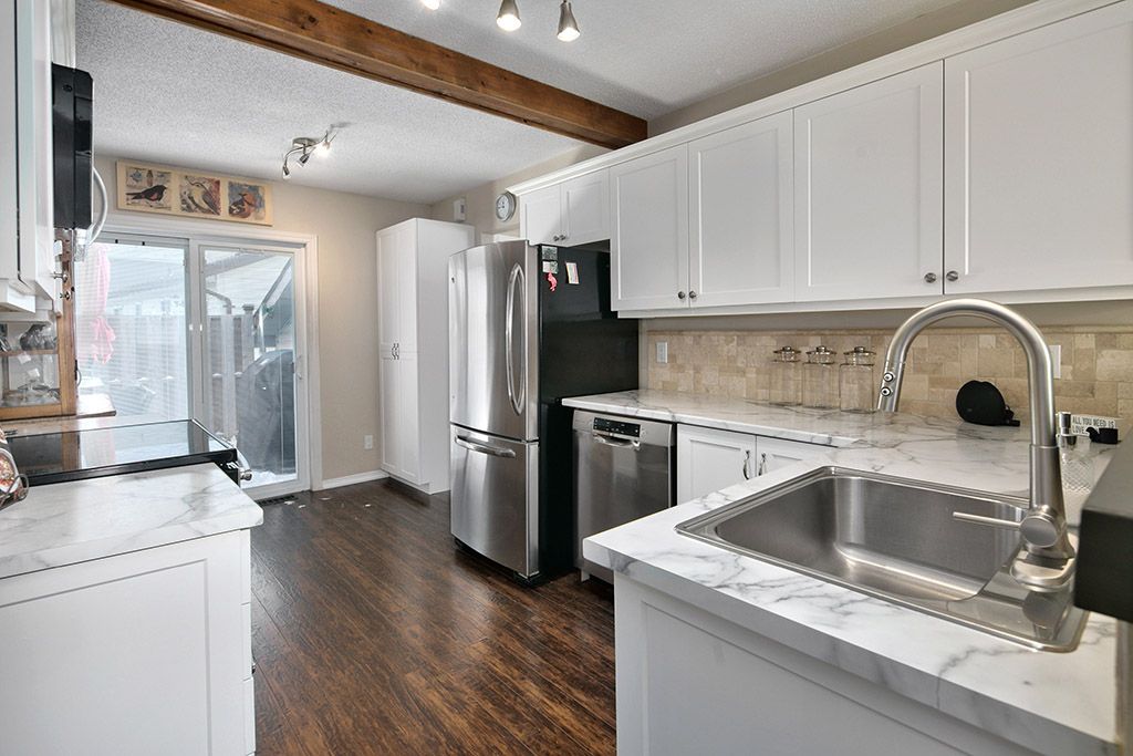 Welcome to this spacious and well-maintained raised bungalow. Offering four bedrooms and an attached garage with convenient inside entry, this home is designed for comfortable, family-friendly living. The bright and inviting main level features vaulted ceilings in the living room, creating an open and airy feel. The kitchen offers direct access to a patio area-perfect for bbqing and outdoor entertaining-overlooking a large, fully fenced yard with mature trees and beautiful landscaping. The lower level boasts a generous rec room, providing additional living space for relaxing or entertaining, along with a separate laundry area for added convenience. A three-piece bathroom is already in place, with the shower ready to be finished to suit your personal style. With its functional layout, inviting outdoor space, and desirable location, this home is a fantastic opportunity for families or anyone looking to settle into a welcoming community.