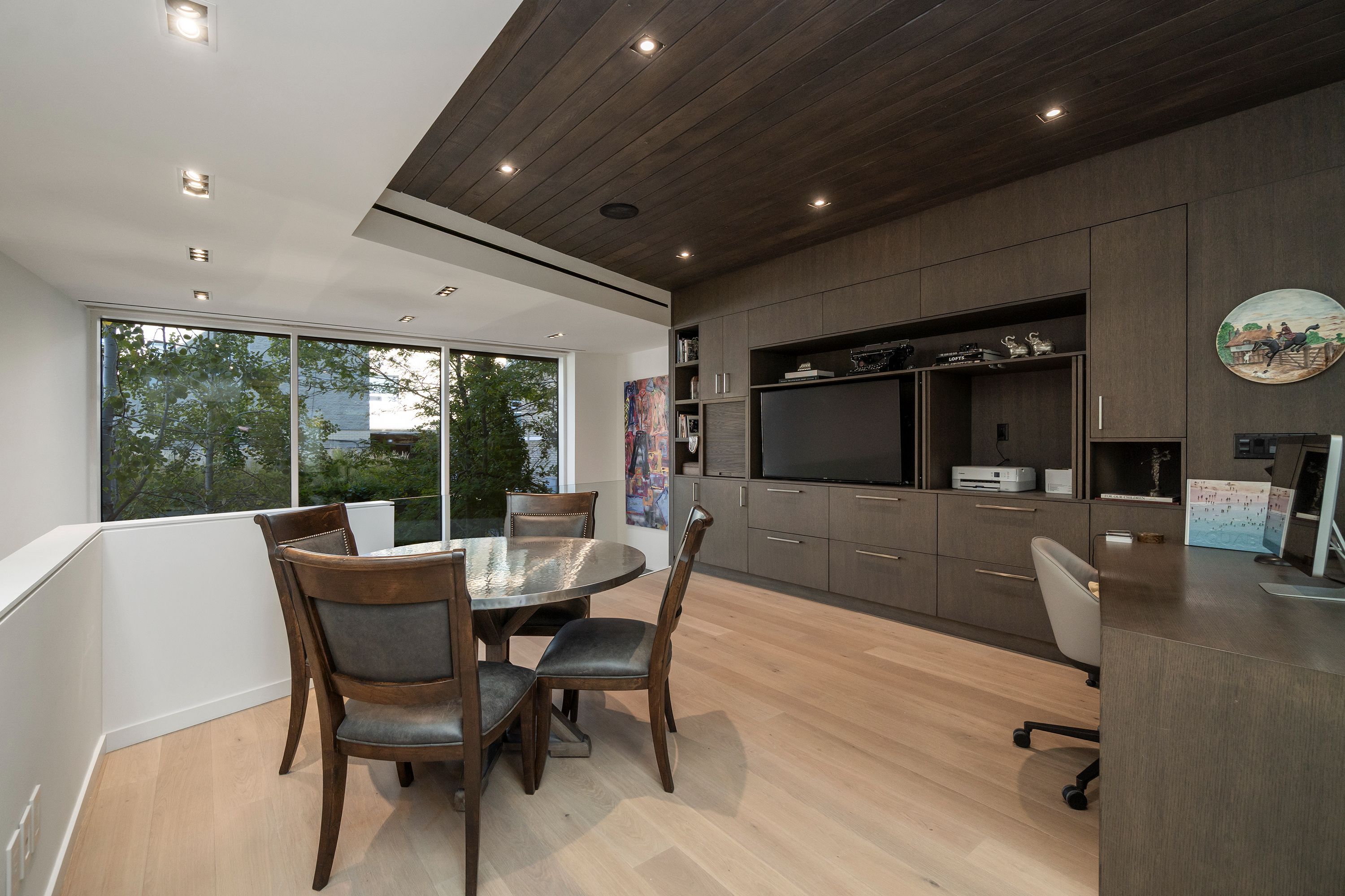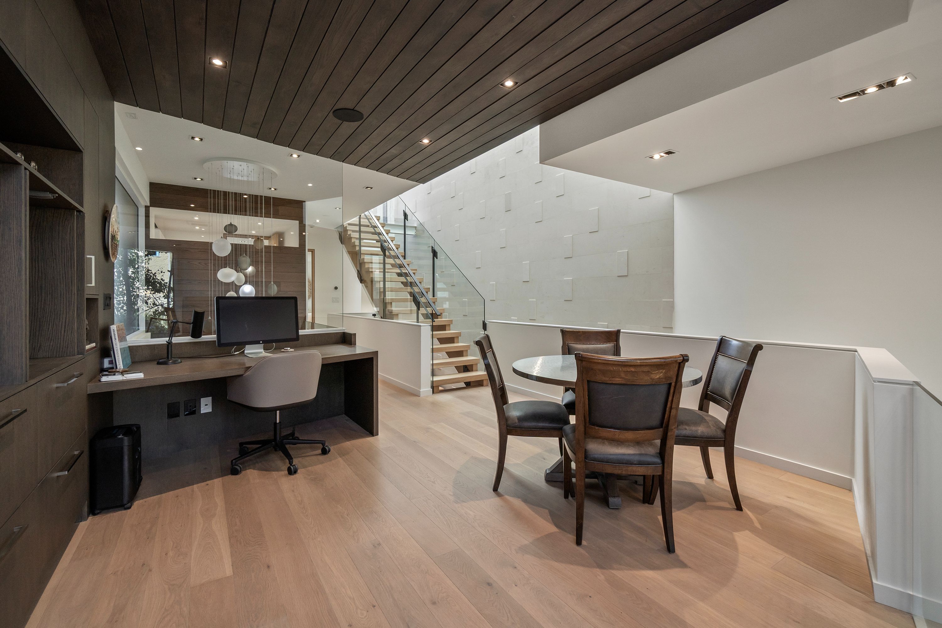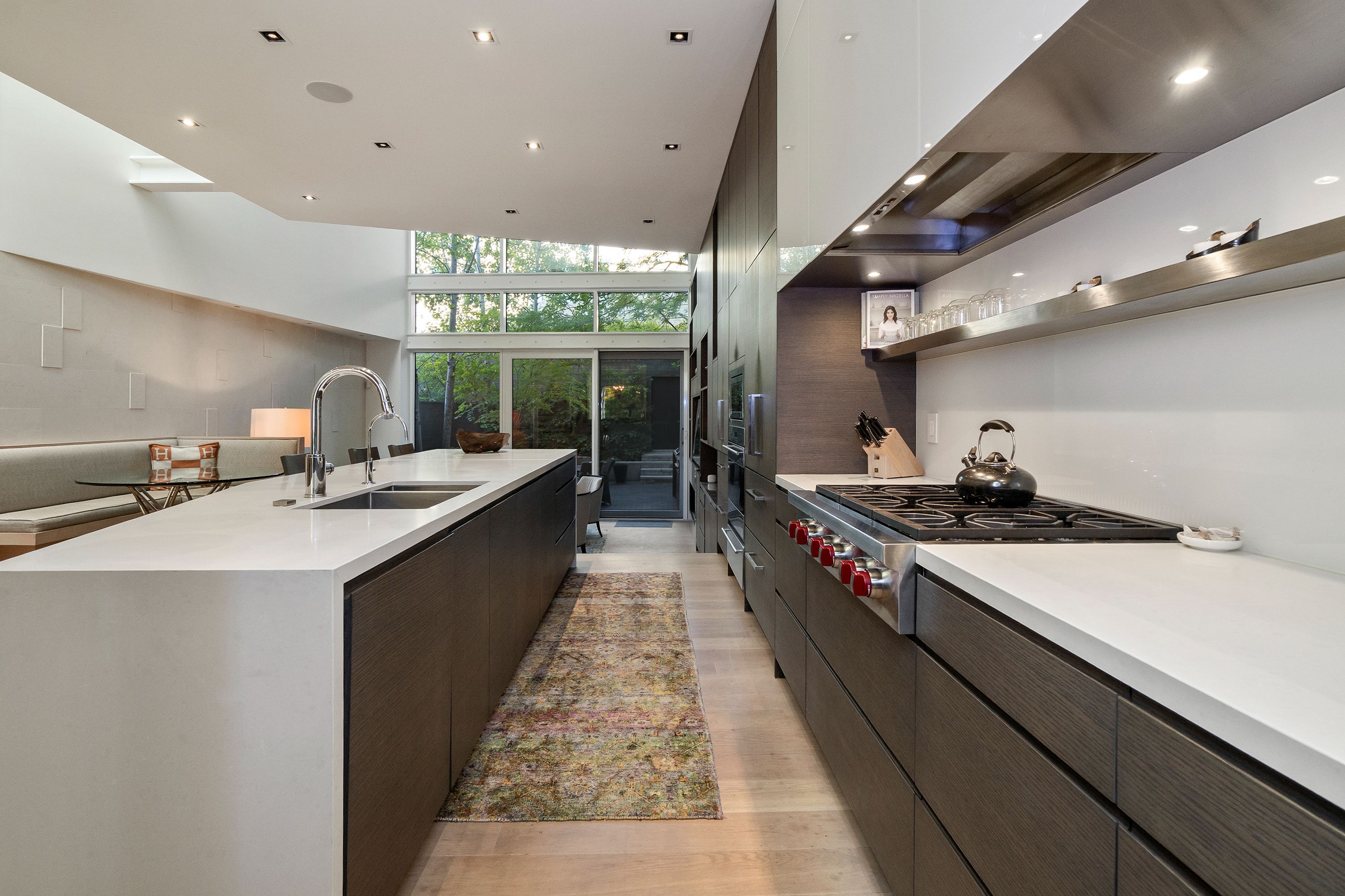 Morning walks to the village, coffee in hand. Evenings that spill from the living room onto a private terrace surrounded by green. Life at 5 relmar road moves effortlessly; every space considered, every detail intentional. Designed by lebel & bouliane architects, this home brings light and warmth to modern form. The main floor flows naturally from dining to kitchen to living, with two-storey glass framing the outdoors and custom cabinetry anchoring the space. The entire top level belongs to the primary suite-dual dressing rooms, a beautifully finished ensuite, and a balcony that feels a world away. An elevator connects each level, including a flexible lounge or office, gym, and guest suite. Heated floors, smart home technology, and a green roof system complete the home's thoughtful design. Steps to cafes, shops, and top schools, this is forest hill living-elevated, effortless, and entirely at ease.