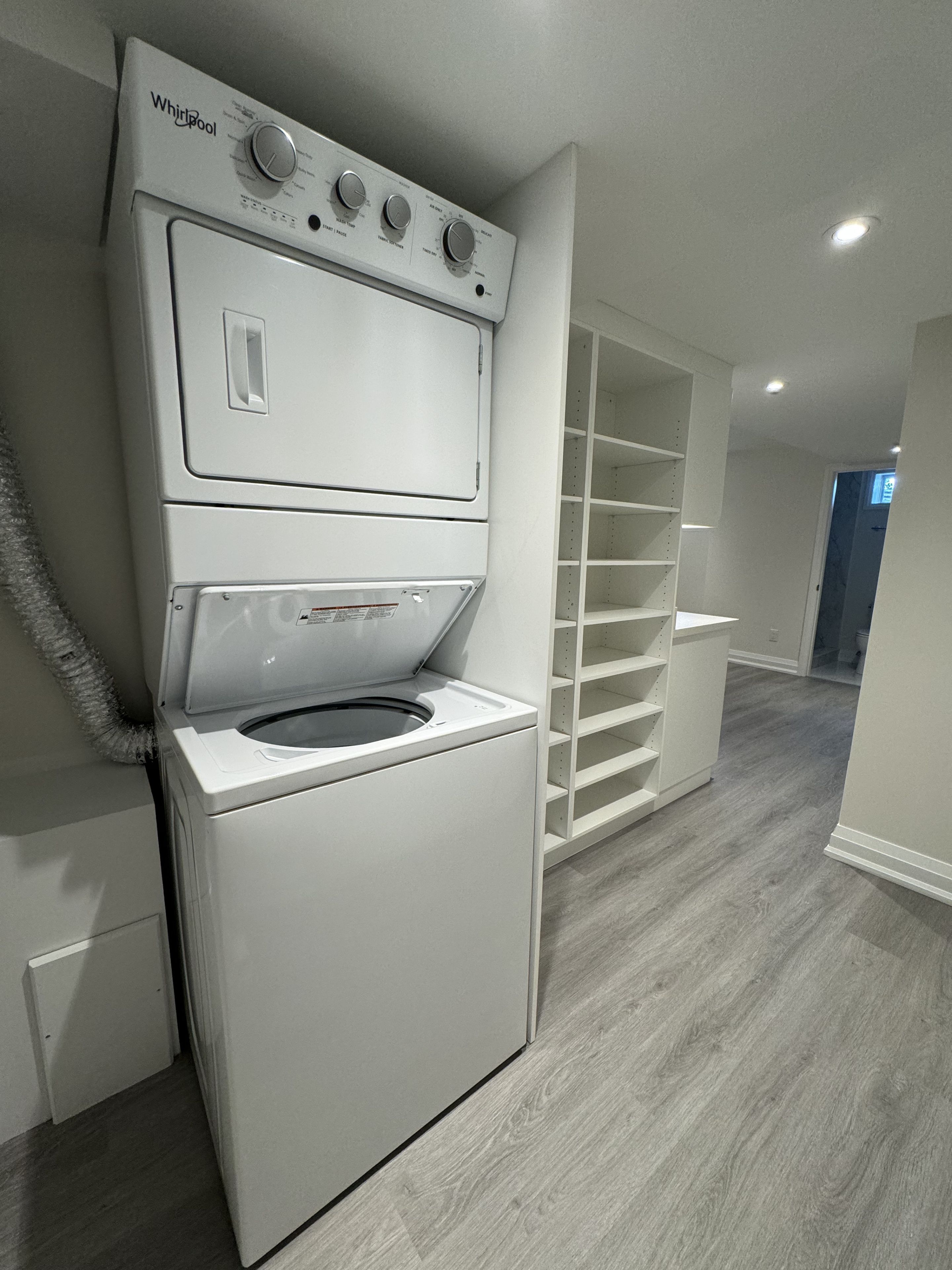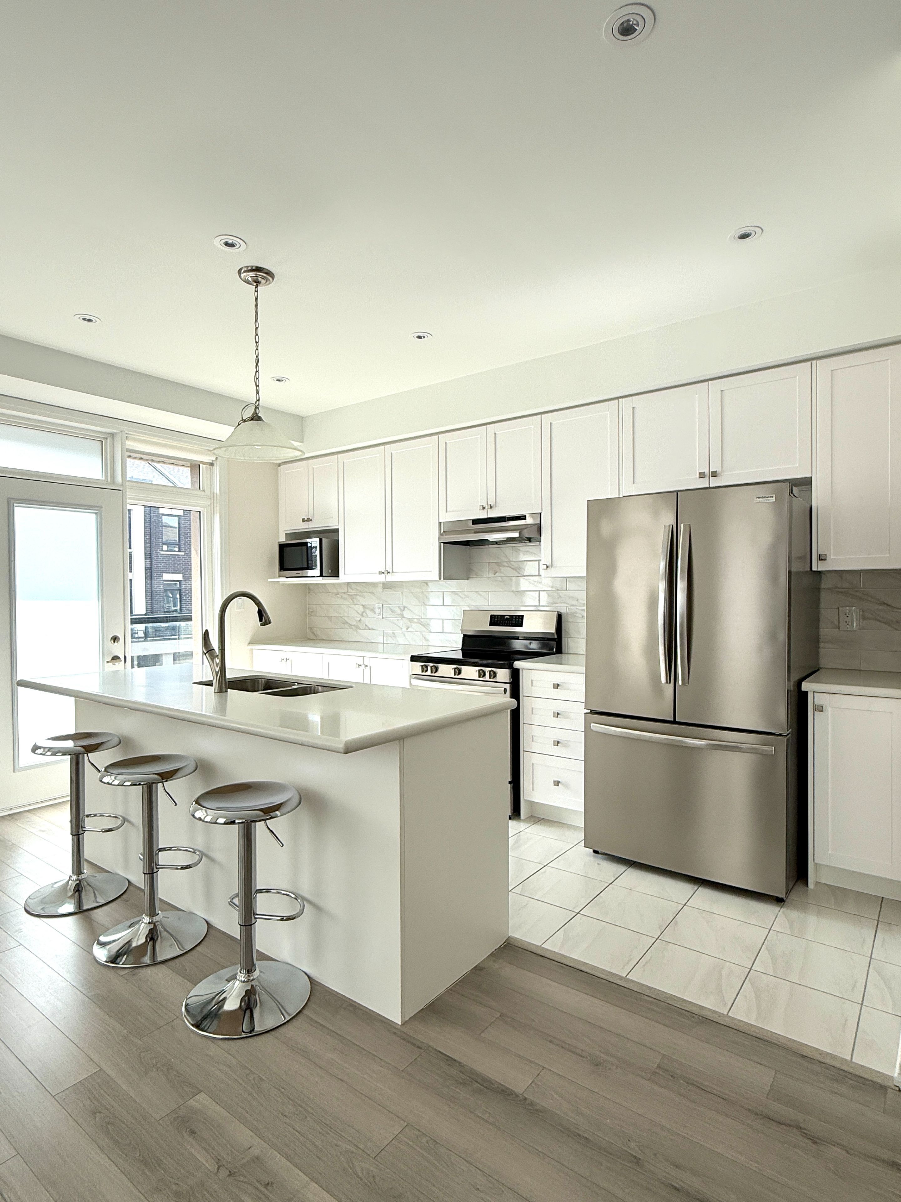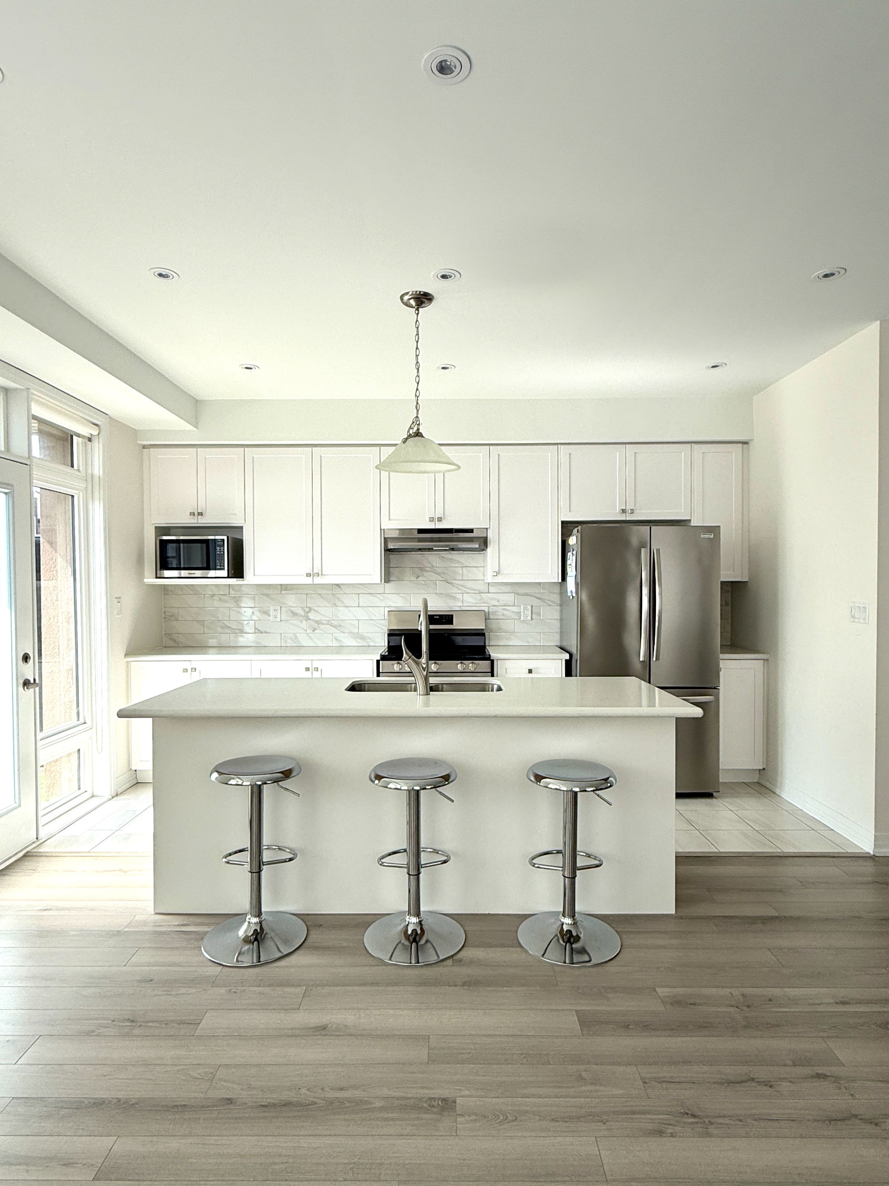 One of a kind opportunity - perfect for the multi-generational family or savvy investors!! This 2-year-new townhome features two fully equipped living areas with 5 bedrooms, 2 kitchens, 2 laundries, and 2 separate entrances. Enjoy the privacy and views of a premium corner lot, plus the added bonus of being the only property on the block with 3 parking spots! This home showcases 9' and 10' raised ceilings, stunning pot lights, quartz countertops, custom backsplashes, and 26 large windows that bathe the space in warm sunlight. On the upper floors, you'll find an expansive kitchen with plenty of counter space, extended center island with a breakfast bar, and walk-out to a large deck. The primary bedroom boasts a sizable walk-in closet, en-suite bathroom, and walk-out to a private balcony. The laundry room is located upstairs and has a large tub for added convenience. The lower floors feature bedrooms with ground floor views, a full kitchen with soft closing cabinetry, a beautifully finished living area, built-in shelving, and a cold room for extra storage. Additional highlights include a 200-amp electrical panel, an ev charging outlet, and custom floor-to-ceiling shelving in the garage. This is an extremely rare find at a fantastic location, just minutes from highway 404, costco, transit, top schools, parks, and much more. Don't miss out!