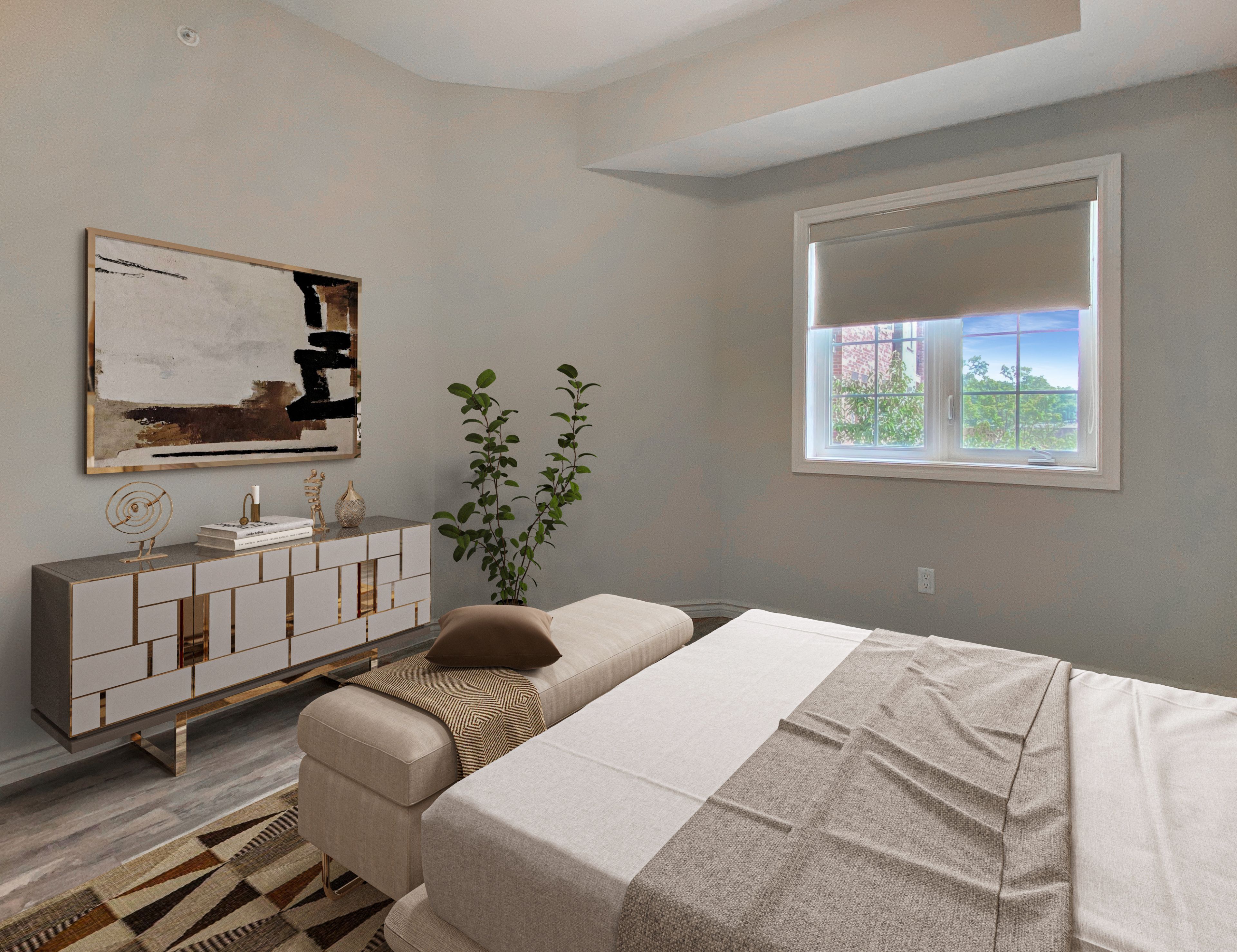 • Bright 1-bedroom unit with an open-concept layout and large windows.