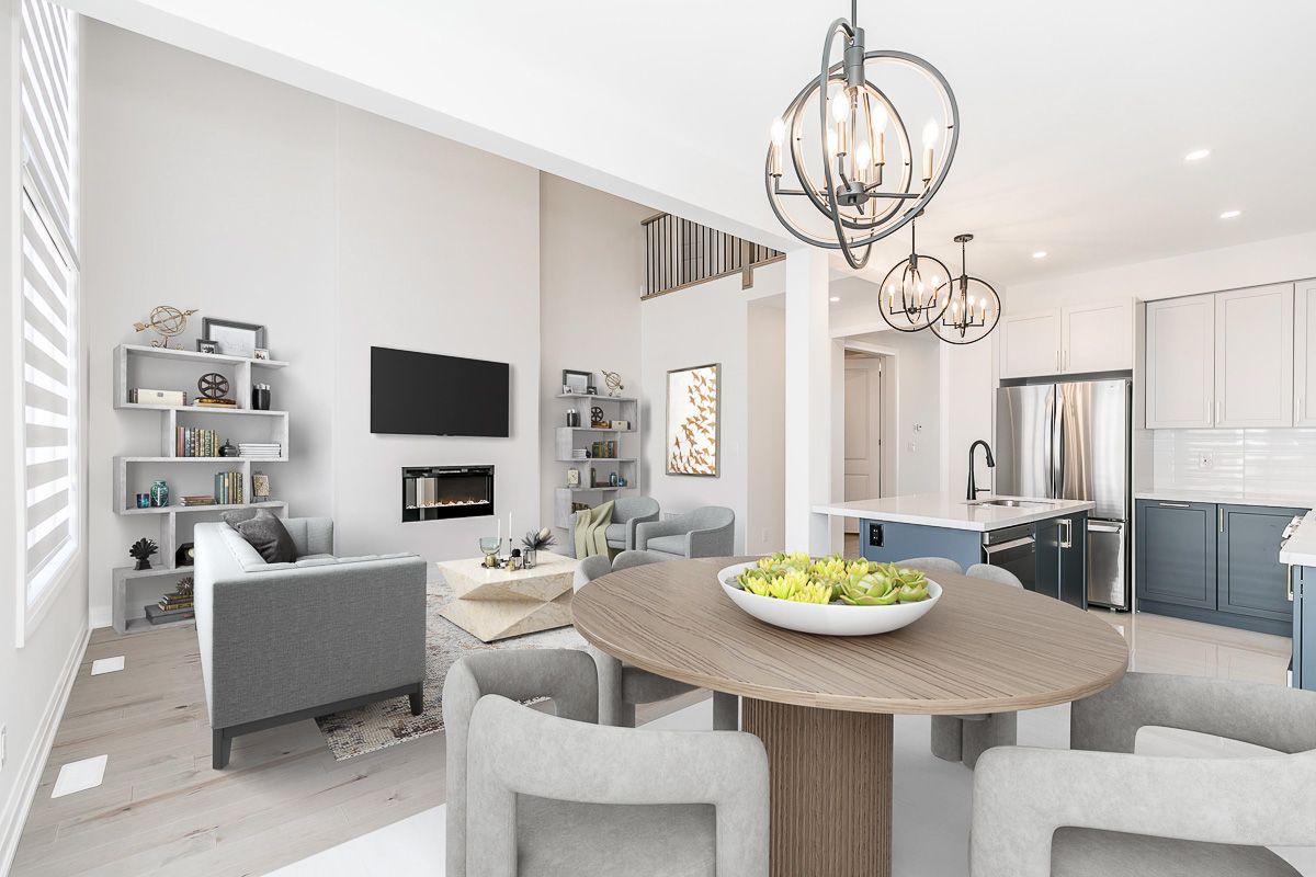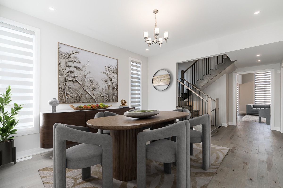 Welcome to 5 rosanne circle, located in the rivers edge development by zancor homes. The talbot floor plan is a bungaloft style with 2,392 sq ft. This home features 4 spacious bedrooms, 2 on the main floor, 2 on the second floor, and 3 full bathrooms. As you step inside, you will immediately feel the exquisite design and upgraded elegant features of this home. The entrance, through to the kitchen, features 11ft ceilings, and thereafter, the remainder of the main floor includes 9ft ceilings and 8ft doorways. The pot lights situated strategically within the hallways, dining room, kitchen and living room areas create a warm and inviting atmosphere for you and your guests, while the engineered hardwood flooring throughout much of the main floor adds richness and texture to the spaces. The kitchen has two-toned cabinetry with gold hardware, upgraded light pendant light fixtures, upgraded stainless steel appliances, an island with under-mount sink, white quartz countertops and a large subway tile backsplash to round it all out. The living rooms ceiling is open to the above loft and includes a floor-to-ceiling window, allowing an abundance of natural light to fill the space. The living room also comes equipped with an electric fireplace and proper outlets above for tv hookup. The main floor primary bedroom has carpet flooring, large walk-in closet and has large 5-pc ensuite with upgraded double sink vanity , quartz countertops, upgraded tile flooring, soaker tub and stand-up shower. The laundry room is conveniently situated on the main floor with upgraded whirlpool front loader washer and dryer. The home comes with central vacuum, 200-amp electrical service, tankless on-demand hot water heater, hrv system, sump pump and air conditioning. Walking distance to wasaga beach public elementary school and future public high school.