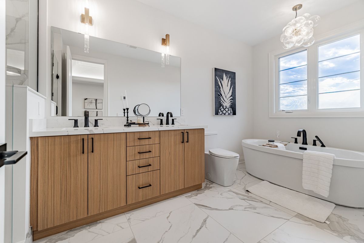 • Primary bedroom features luxurious ensuite with tub and shower.