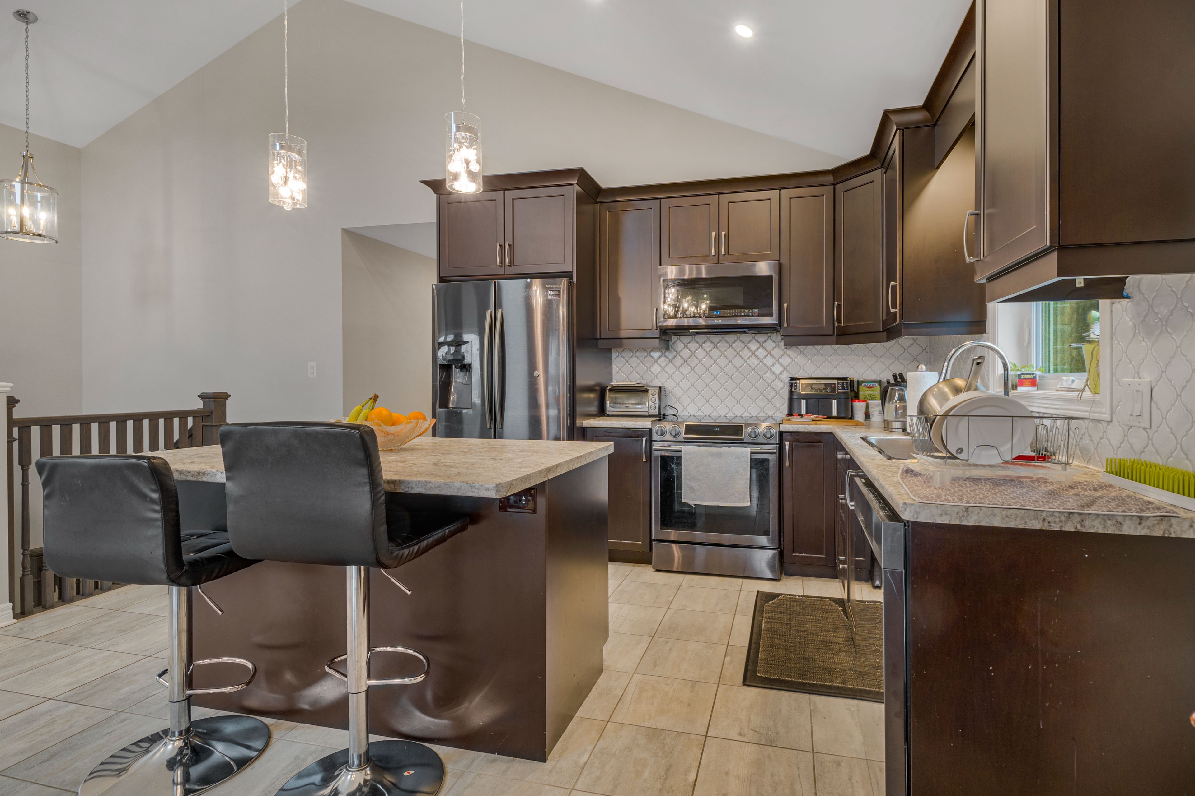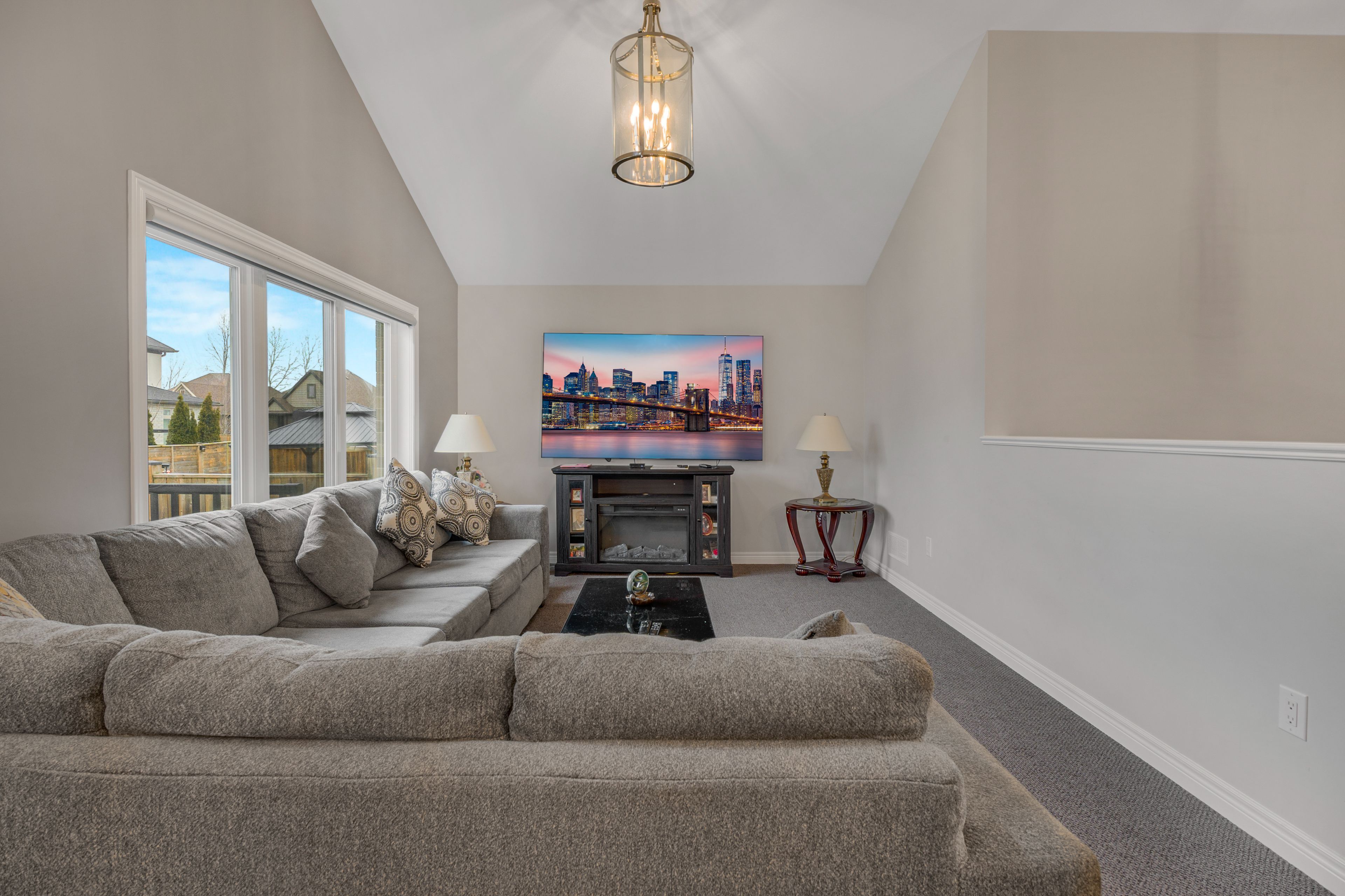 • Bright open-concept main level with vaulted ceilings for added space and light.
