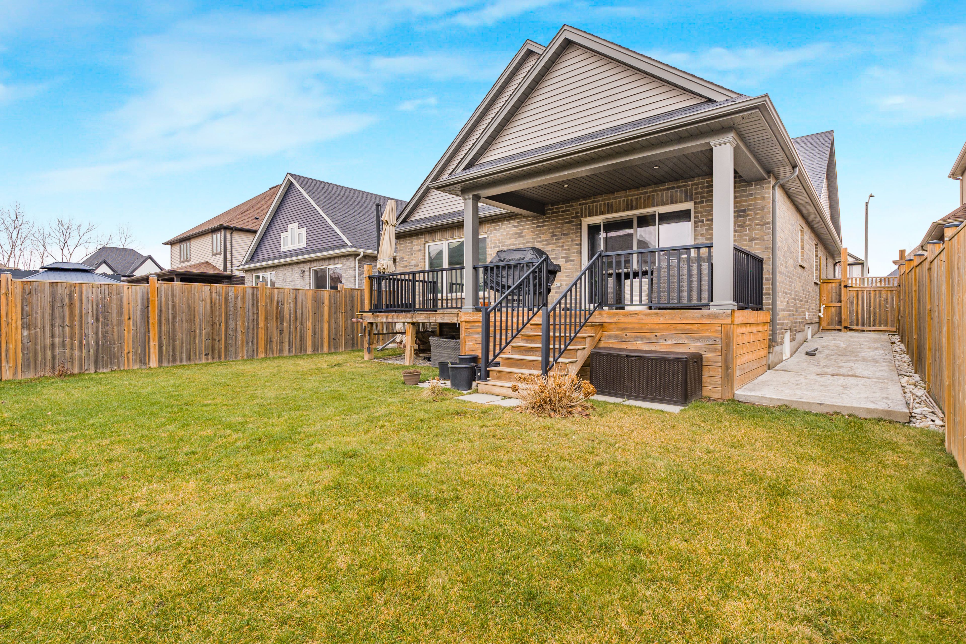 • Private backyard with deck, great for entertaining or relaxing outdoors.