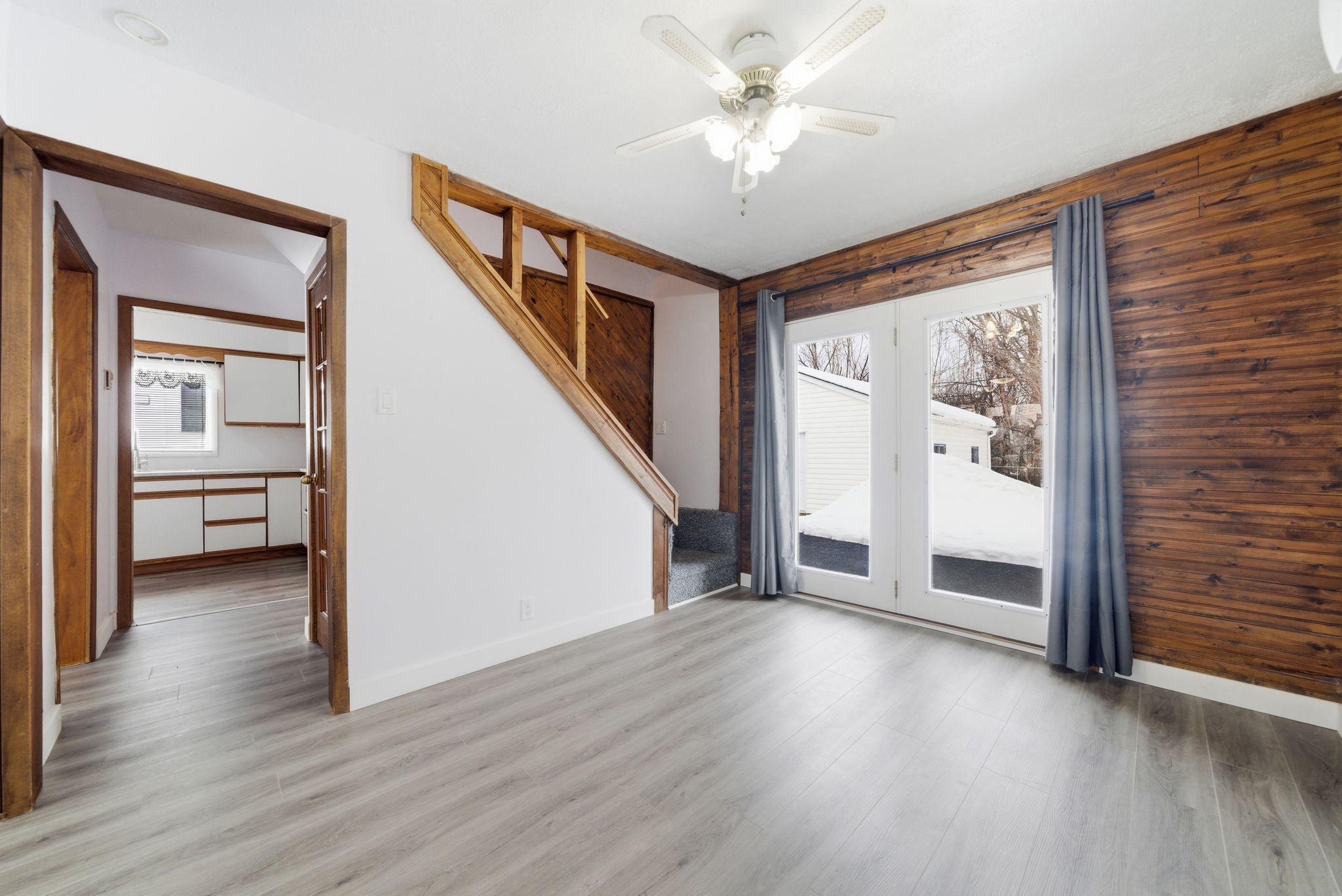 Adorable 1 1/2 storey home in belleville's desirable east end, just minutes to the hospital, waterfront trails, groceries, lcbo and more! This move-in ready home has been beautifully refurbished from top to bottom and features 2 bedrooms, 2 bathrooms, fresh paint, some new flooring, and an abundance of windows that fill the space with natural light. The dining room offers a walkout to a large deck overlooking peaceful open space with no rear neighbours. Major updates include a new heat pump (2026), new kitchen countertop (2026), and roof (2024). The finished basement provides a spacious rec room plus two additional rooms ideal for a den and home office, with potential for future bedroom conversion. Partially fenced yard and a detached double car garage complete this charming property. A wonderful home in a fantastic location!