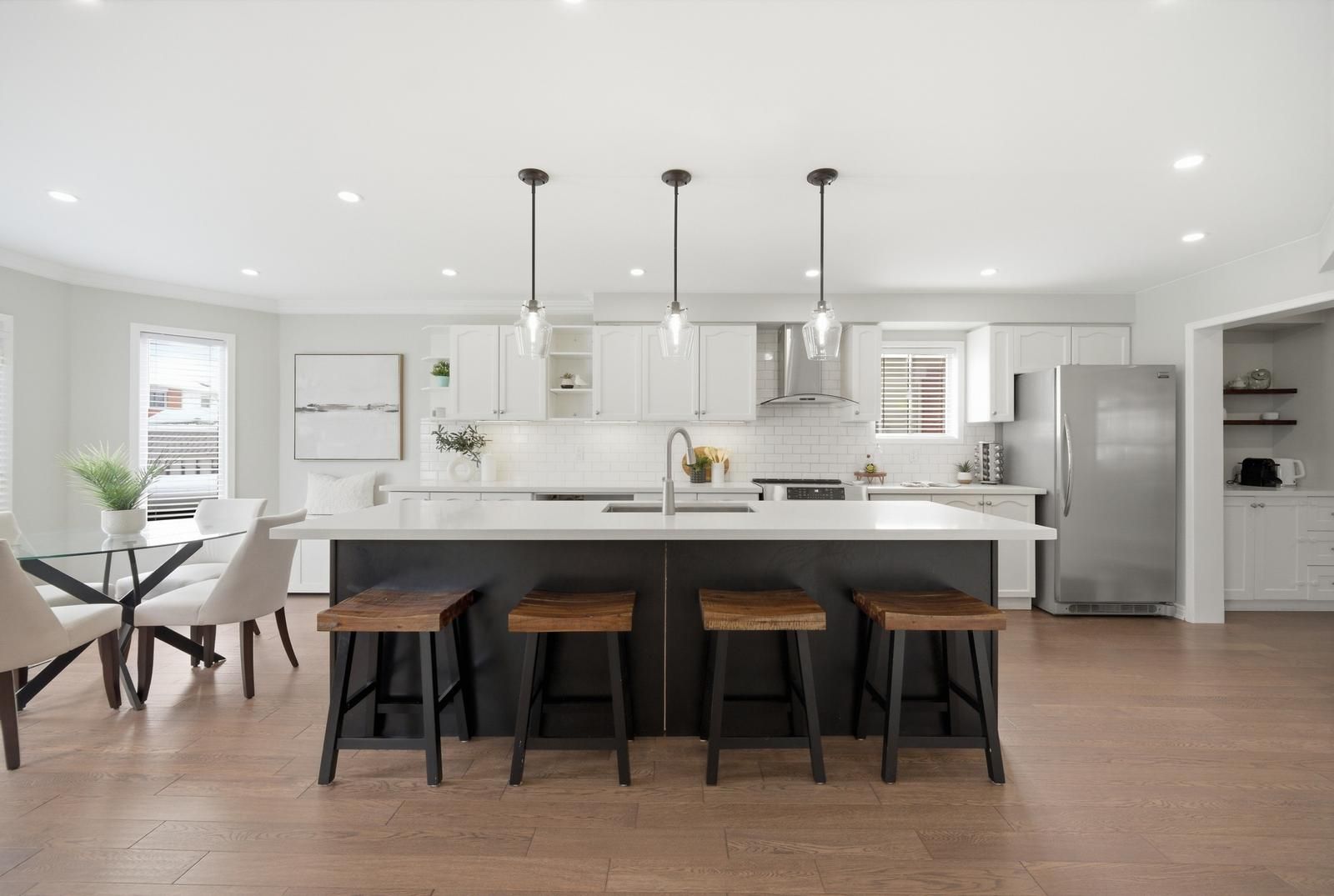 Stunning 4-bedroom, 4-bathroom executive home offering 2,525 sq. Ft., set on a premium corner pie-shaped lot in one of alliston's most sought-after neighbourhoods. Expansive backyard widens to 62. 11 ft across, providing exceptional outdoor space for entertaining and family enjoyment. The heart of the home is a parisian-inspired chef's kitchen, featuring a 9-ft oversized centre island with undermount sink, custom "grigio drift" quartz countertops, stylish backsplash, elegant butler's station with pantry, and sleek frigidaire gallery stainless steel appliances. Spacious living and dining areas showcase smooth ceilings, pot lights throughout, and upgraded pendant fixtures. The main floor offers a convenient laundry/mudroom with direct garage access. Upstairs, the primary retreat includes a generous walk-in closet, a spa-like 5-piece ensuite with a zen-inspired design, and a charming sitting area ideal for a nursery or reading nook. The finished lower level offers transitional design elements, cozy stone-surround gas fireplace, 2-piece powder room, separate gym or office, and a rough-in for a future wet bar or kitchen. Engineered hardwood flooring throughout the home. Step outside to your private backyard oasis featuring extensive armour stone landscaping, a custom-built 10x10 shed, and an above-ground saltwater pool. Notable updates include high-end garage doors (2025), front-load lg washer and dryer (2026), and a recently replaced pool pump with regular professional maintenance. Ideally located close to shopping, dining, recreation, and hospital services, within walking distance to schools, and offering a convenient commuter location.