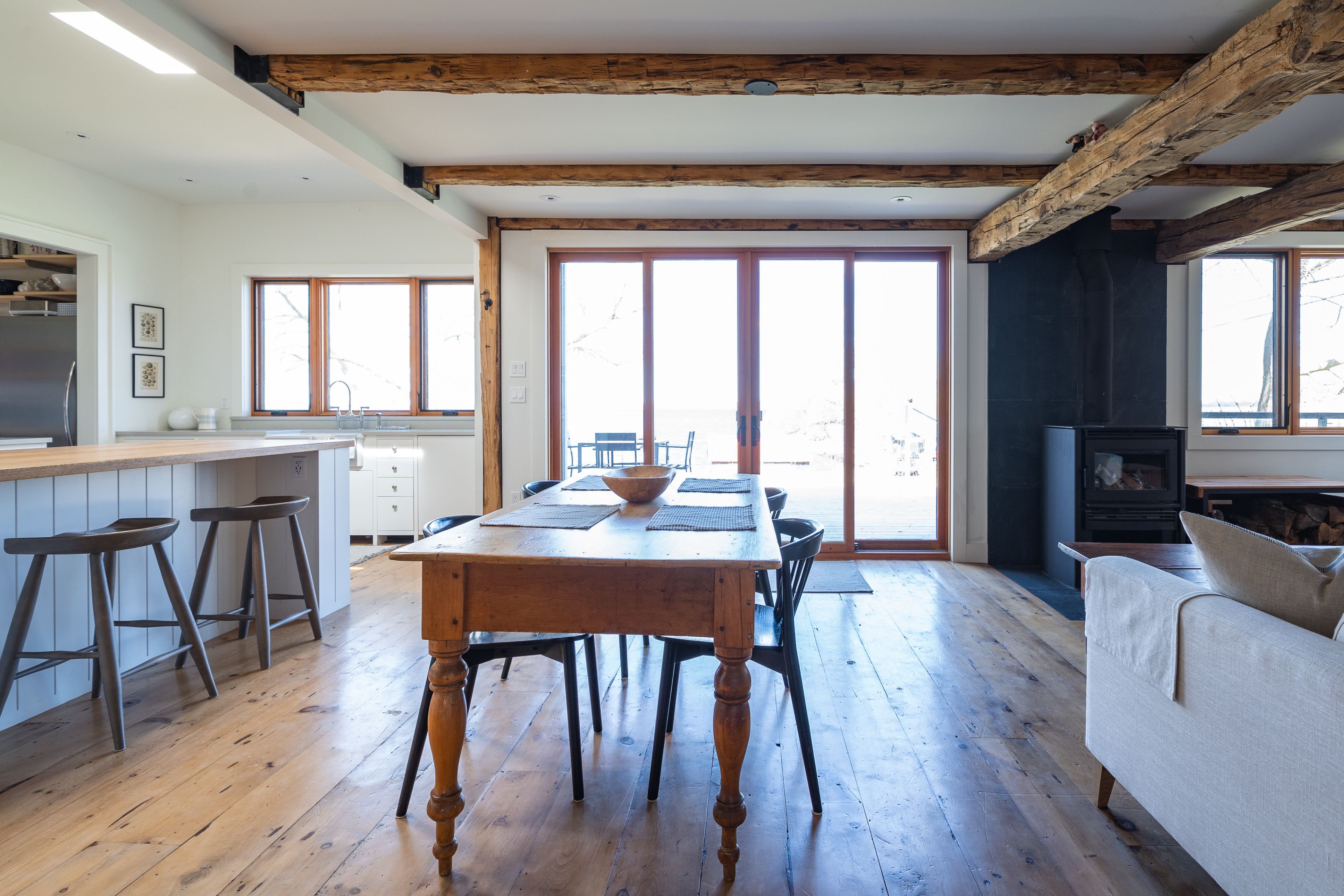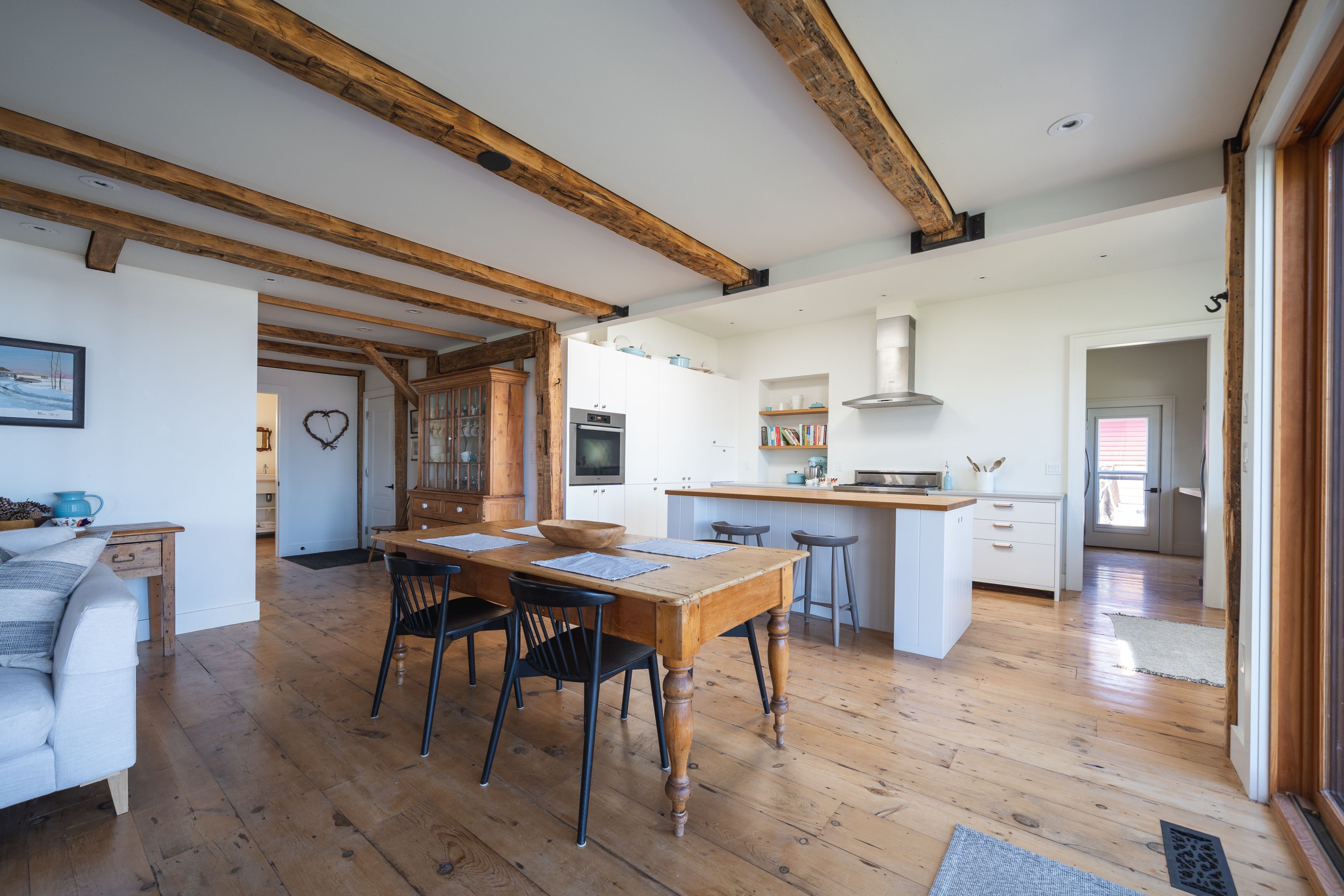 Tucked into the peaceful waterfront community of northport, along the north side of the county, this circa 1836 two bedroom, three bath home offers a rare blend of heritage architecture and thoughtful, contemporary living, just 20 minutes from the heart of picton. Inside, the home unfolds with warmth and ease. Rich wood tones, exposed beams and wide plank floors create a sense of grounded comfort, while the open concept living and dining spaces flow naturally toward a beautifully designed custom kitchen. Anchored by generous cabinetry, upscale appliances, and an expansive pantry, this is a space built as much for everyday living as it is for gathering. There is a cozy coastal quality to the home, shaped by conscious design choices that balance texture, and material in a way that feels both relaxed and refined. Just beyond, a back porch extends from the kitchen, an effortless transition to outdoor living that feels distinctly county. It is where morning coffee stretches into afternoon conversation, all overlooking mature gardens and uninterrupted views of the bay of quinte. Currently configured as a 2 bedroom, 3 bath home, the layout offers exceptional flexibility. A main floor primary suite could be created with ease, seamlessly connecting to the existing bath, an ideal option for those seeking long term, single level living without compromise. Upstairs, both bedrooms offer privacy and charm, each with their own sense of retreat. Outside, the property gently slopes toward the shoreline, where the bay of quinte reveals itself in its truest form: clear and endlessly inviting. Known for its excellent boating and fishing, this stretch of water offers a more natural, untouched waterfront experience. Fruit trees, established gardens, and a small barn for storage complete the landscape, while a attached garage provides additional space for a studio, workshop, or future conversion. A home with history, presence and the kind of setting that quietly speaks for itself.