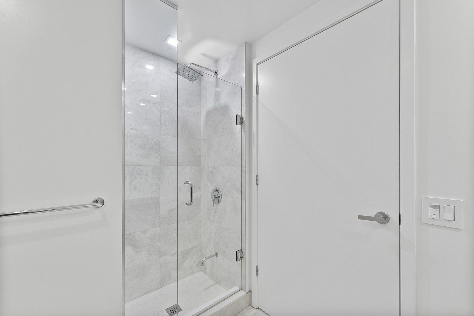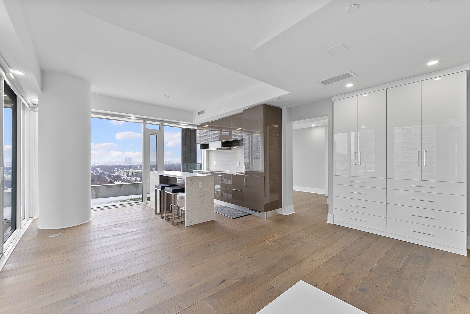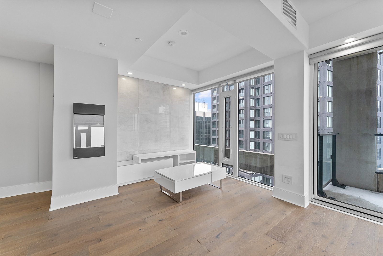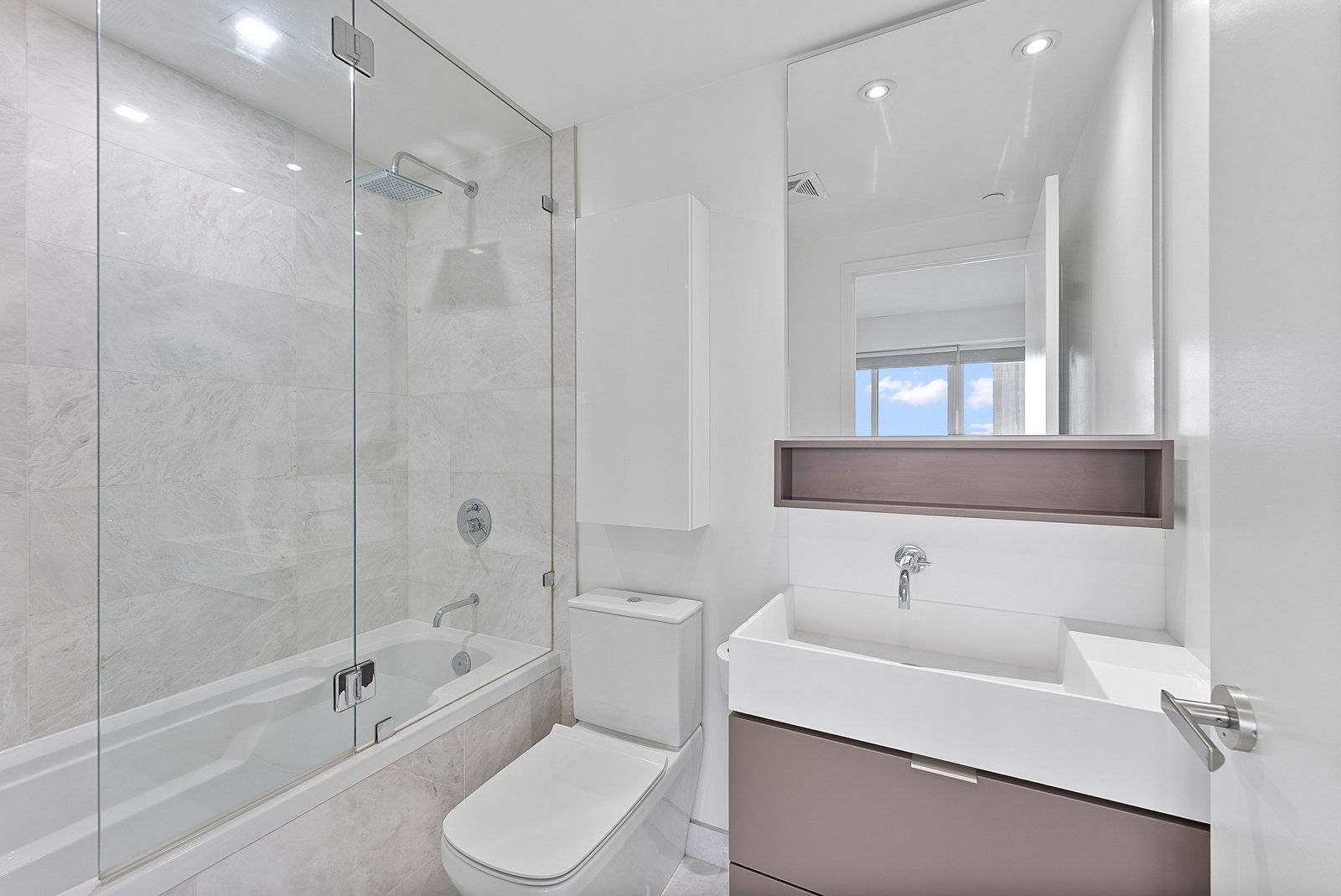 Bright and spacious 697 sq ft ne corner 1-bedroom suite in the vibrant yonge & eglinton neighbourhood. Fully renovated open-concept layout with walls removed for spacious living/kitchen/dining. Features wide-plank engineered hardwood, floor-to-ceiling windows, custom built-in closet and storage units, quartz counters, potlights throughout, marble master bath with glass shower + soaker tub, large second full marble bath, and two private balconies with unobstructed east views. Steps to eglinton station, shops, entertainment, and restaurants.