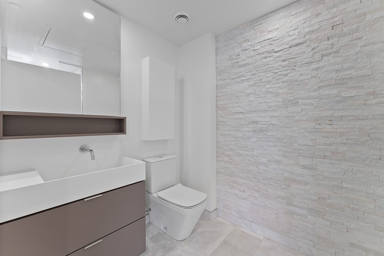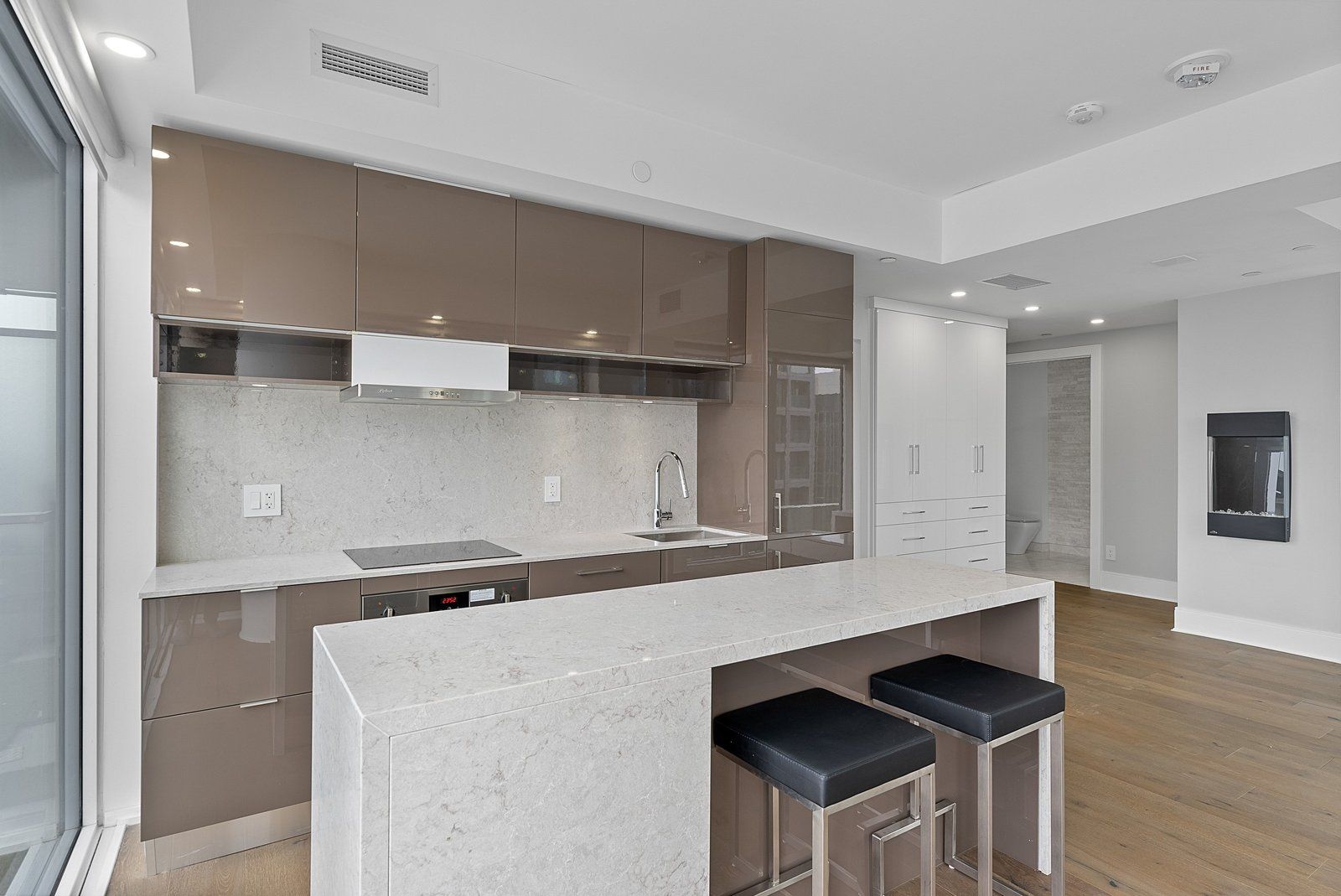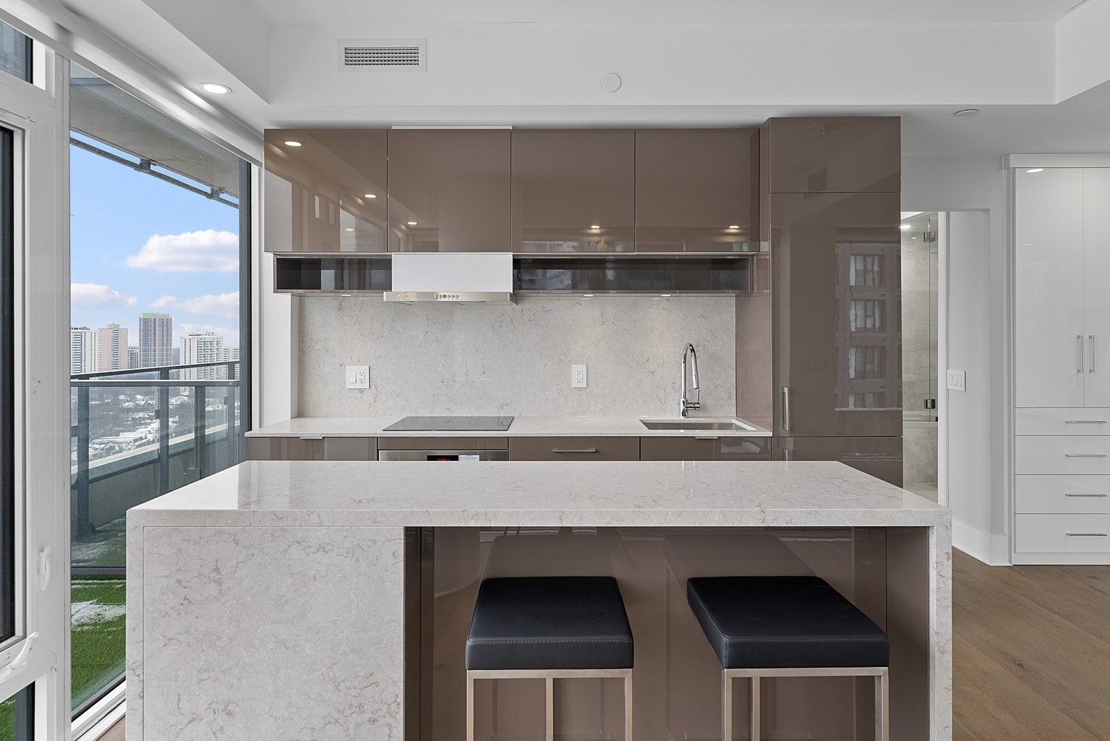 • Custom built-in storage and quartz counters for added convenience.