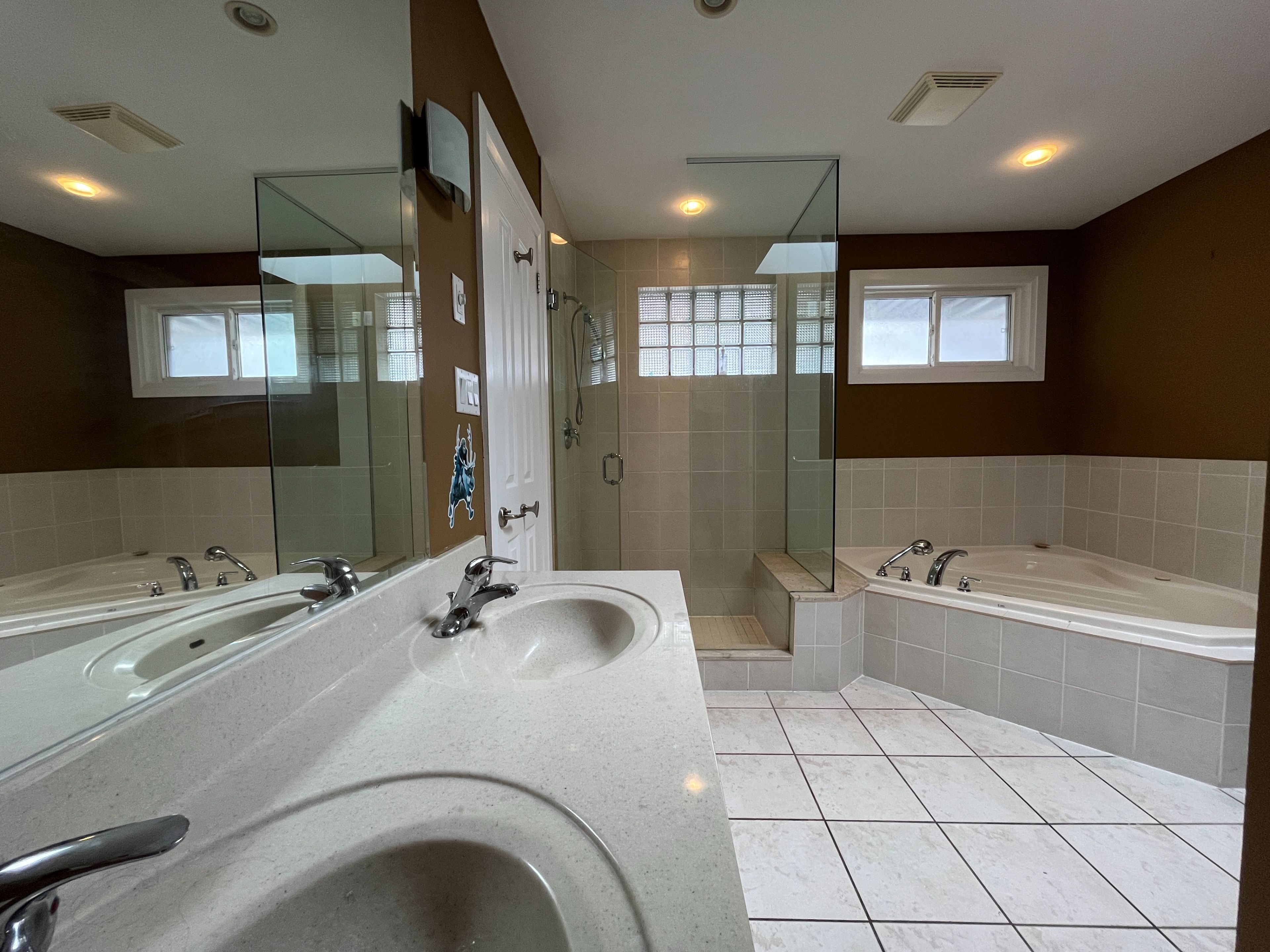 • Spacious master bedroom featuring walk-in closets and an ensuite bathroom.