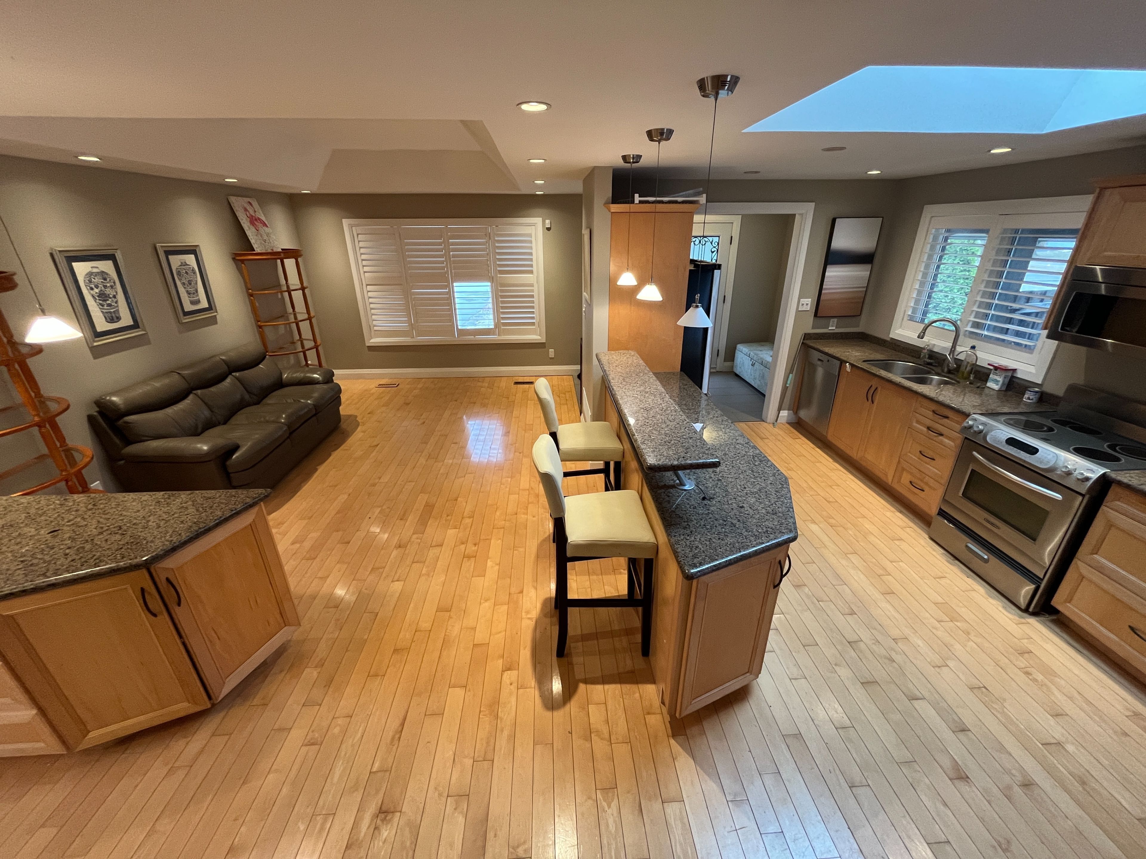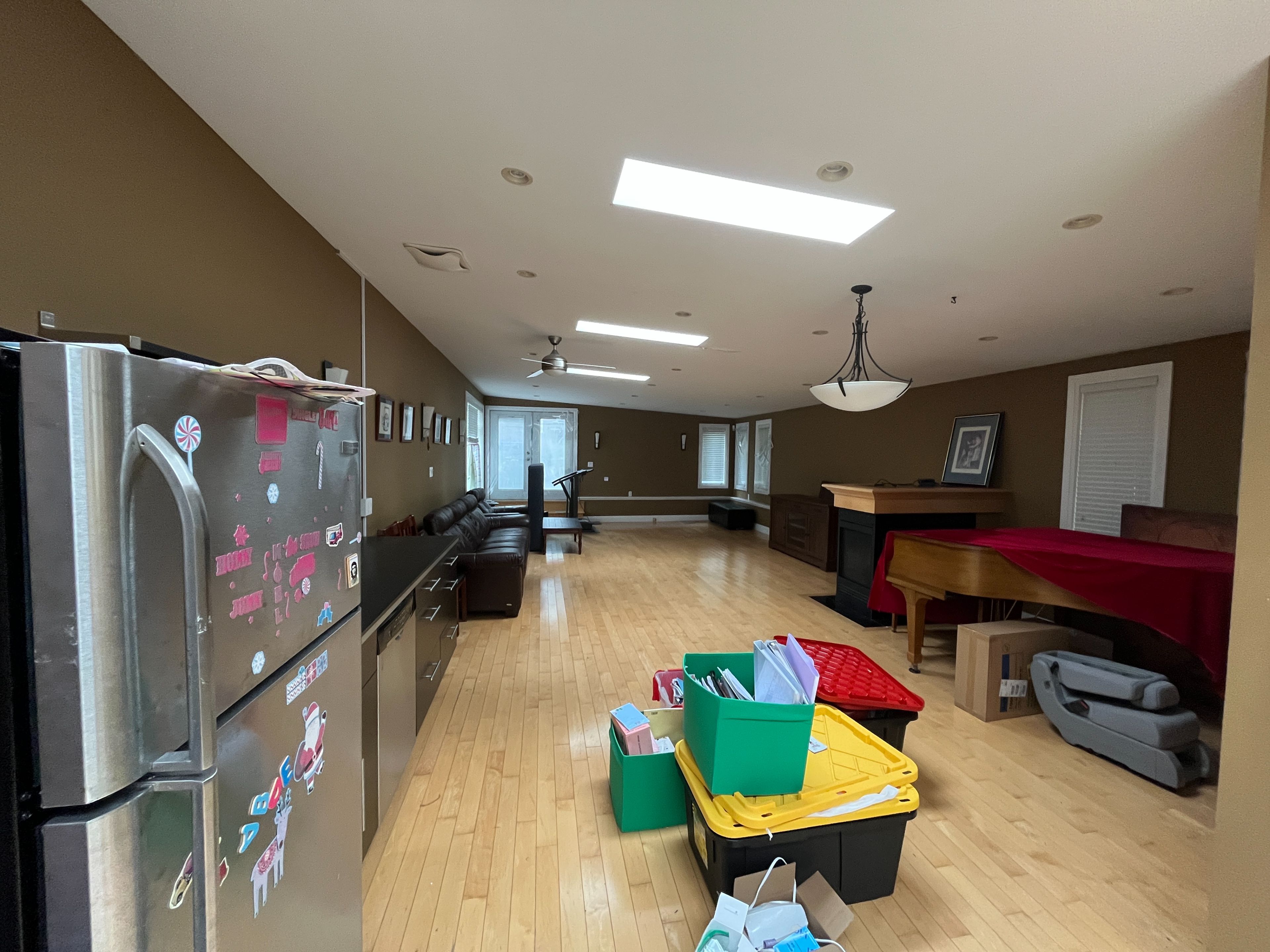 • Large family room with skylights, fireplace, perfect for various activities.