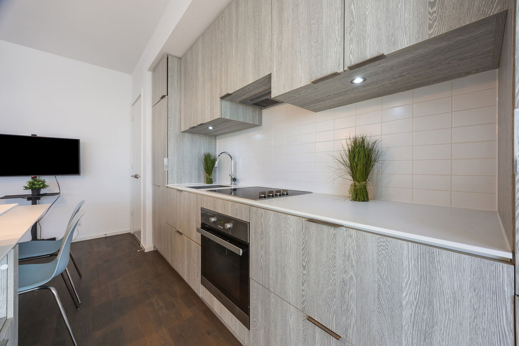 • Building features 24-hour concierge, gym, sauna, and rooftop terrace.