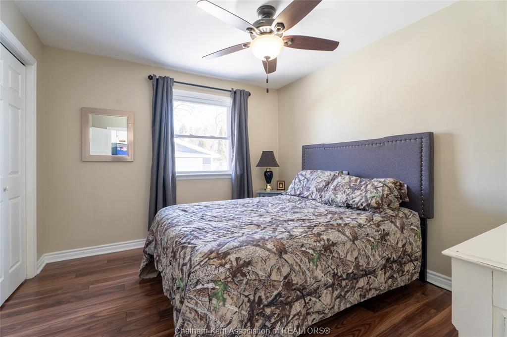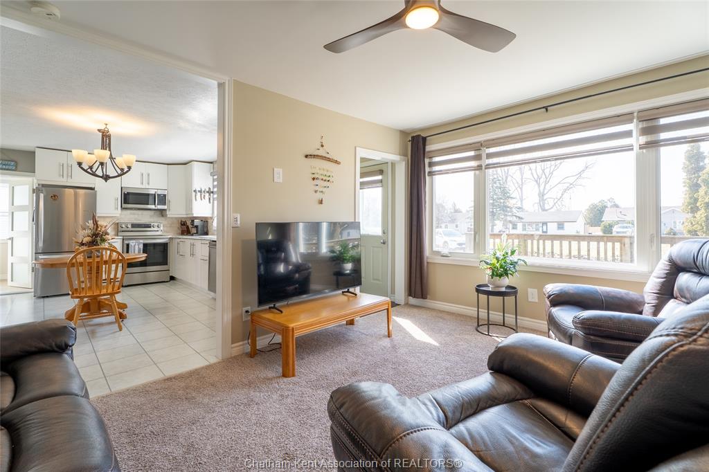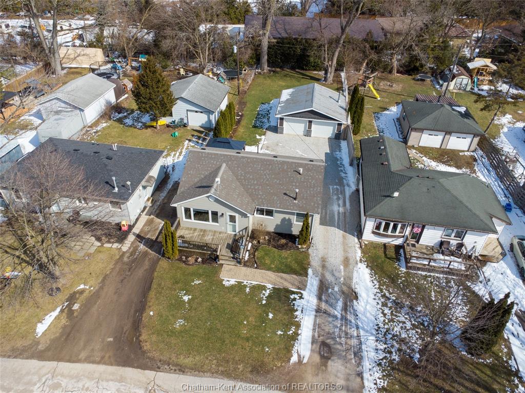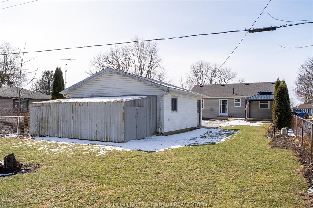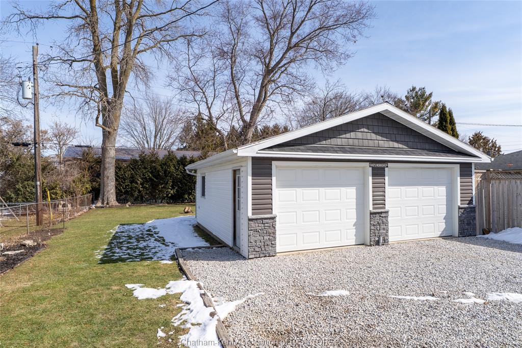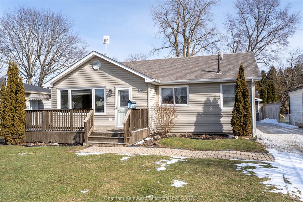 Beautifully updated and perfectly located on the peaceful outskirts of chatham, this charming 2-bedroom, 1-bathroom ranch offers an ideal blend of comfort, convenience, and easy living. The bright, airy main-floor layout features a spacious eat-in kitchen that opens seamlessly into a welcoming living room, highlighted by a stunning new picture window that fills the space with natural light. A new front screen door invites in the fresh summer breeze, enhancing the home’s warm and inviting atmosphere. Step outside to enjoy your morning coffee on the front porch, or host family and friends on the back deck overlooking a massive fully fenced yard—plenty of room for kids, pets, gardening, or future outdoor projects. A standout feature is the impressive 24' x 24' double garage/workshop, perfect for car enthusiasts, hobbyists, or anyone needing extra space. The attached back shed provides additional storage, keeping the main shop free for your next project. This move in ready home is an excellent fit for first time buyers, retirees, downsizers, and commuters—just a quick 5 minute drive down communication road to the 401 on ramp, making travel to windsor, london, or the gta smooth and efficient. New roof in 2024. Municipal water, sewer, and natural gas add to the ease of living.