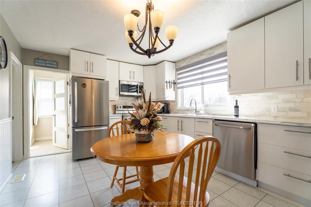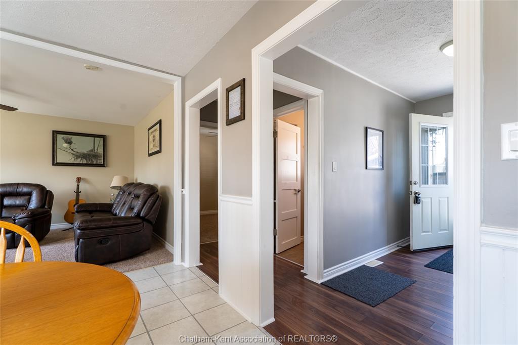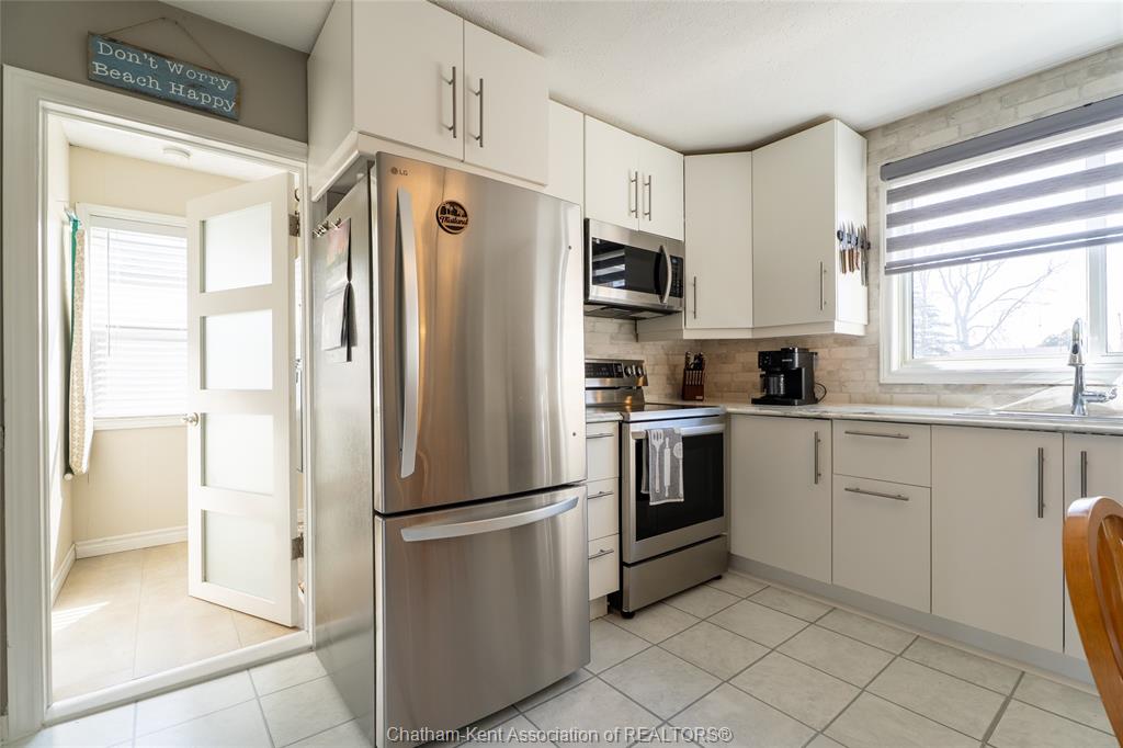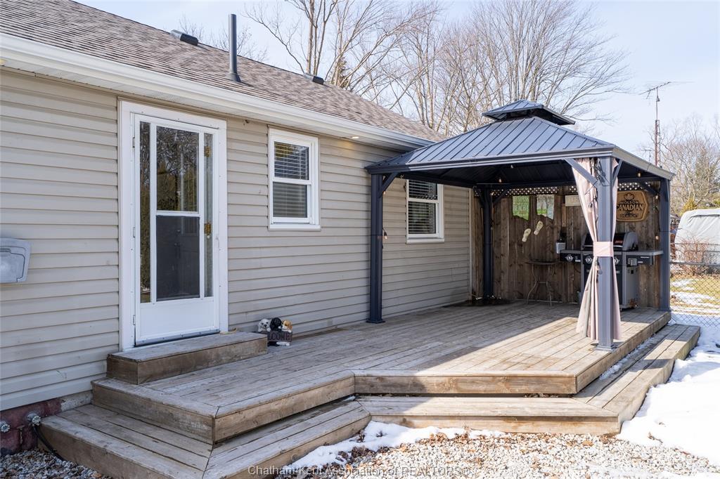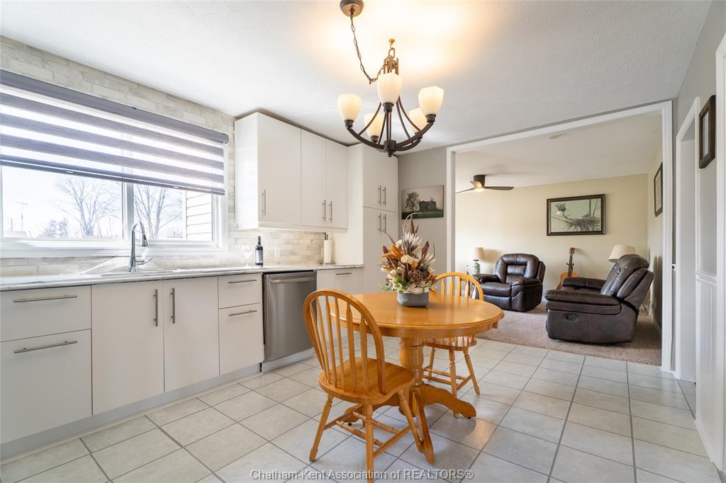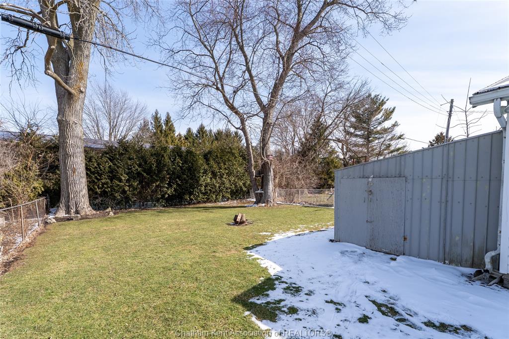 Beautifully updated and perfectly located on the peaceful outskirts of chatham, this charming 2-bedroom, 1-bathroom ranch offers an ideal blend of comfort, convenience, and easy living. The bright, airy main-floor layout features a spacious eat-in kitchen that opens seamlessly into a welcoming living room, highlighted by a stunning new picture window that fills the space with natural light. A new front screen door invites in the fresh summer breeze, enhancing the home’s warm and inviting atmosphere. Step outside to enjoy your morning coffee on the front porch, or host family and friends on the back deck overlooking a massive fully fenced yard—plenty of room for kids, pets, gardening, or future outdoor projects. A standout feature is the impressive 24' x 24' double garage/workshop, perfect for car enthusiasts, hobbyists, or anyone needing extra space. The attached back shed provides additional storage, keeping the main shop free for your next project. This move in ready home is an excellent fit for first time buyers, retirees, downsizers, and commuters—just a quick 5 minute drive down communication road to the 401 on ramp, making travel to windsor, london, or the gta smooth and efficient. New roof in 2024. Municipal water, sewer, and natural gas add to the ease of living.