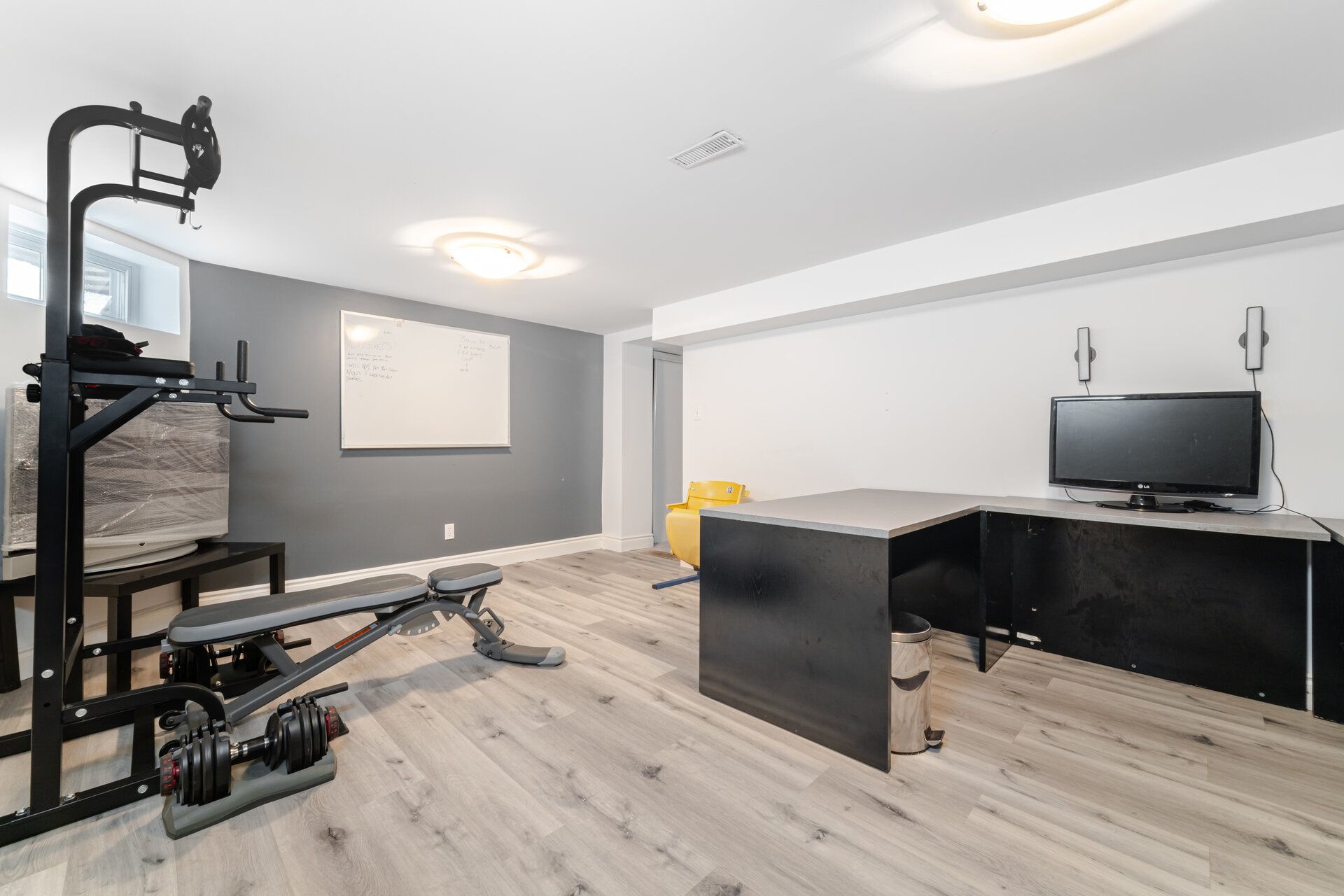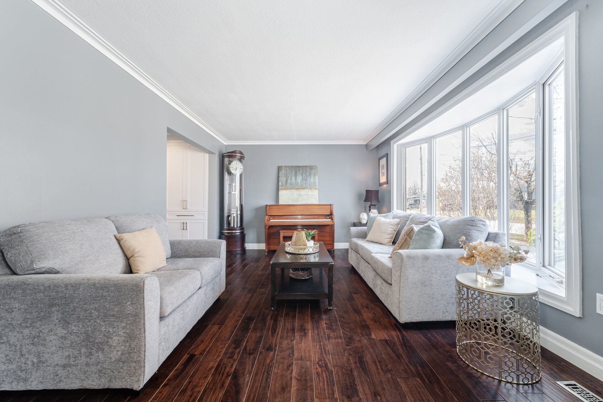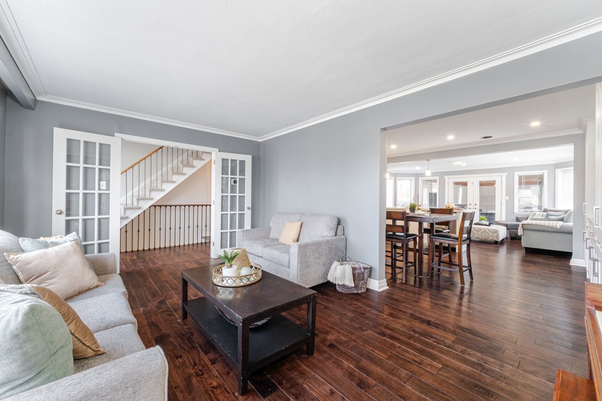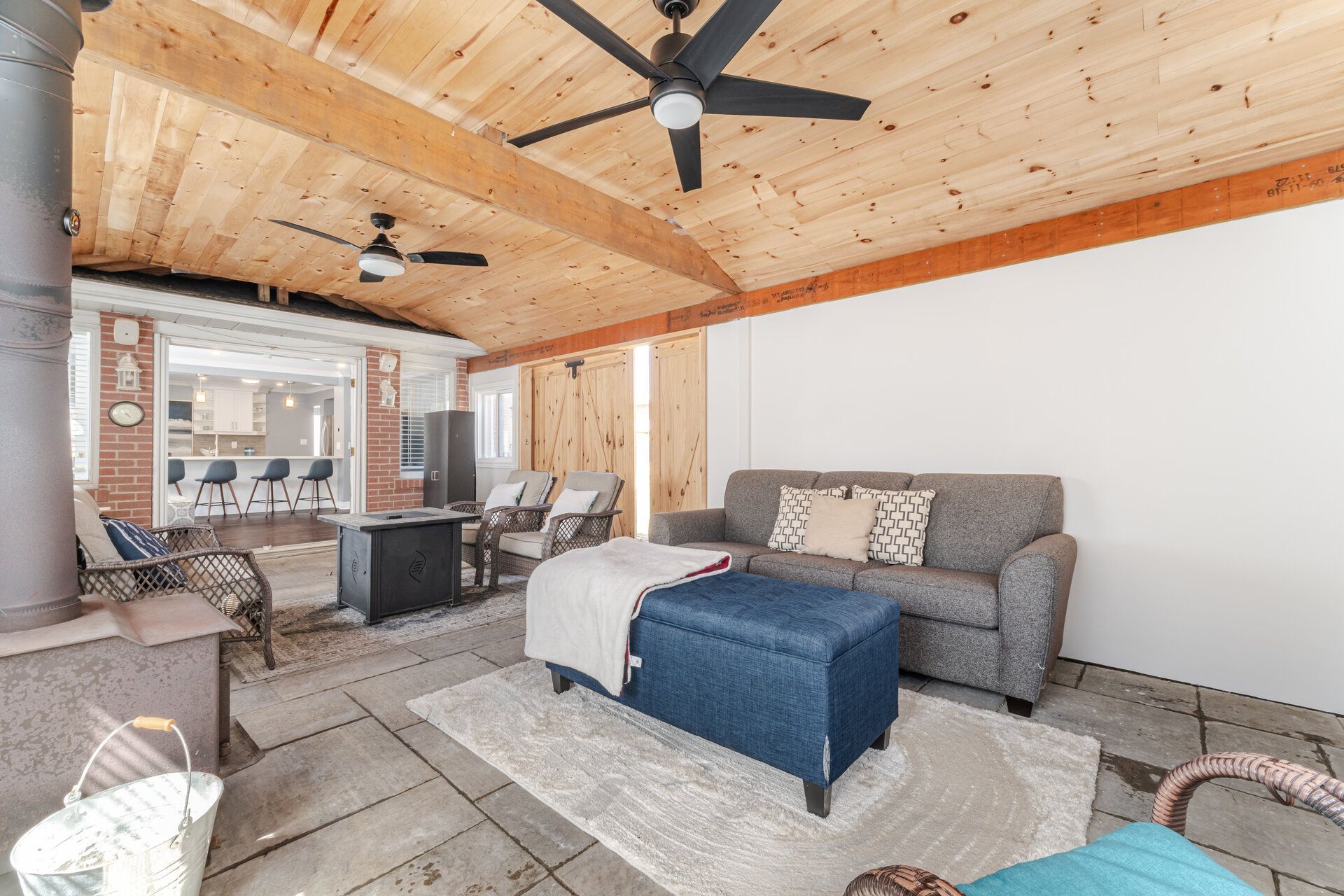 • Expansive family room with built-in speakers for entertainment.