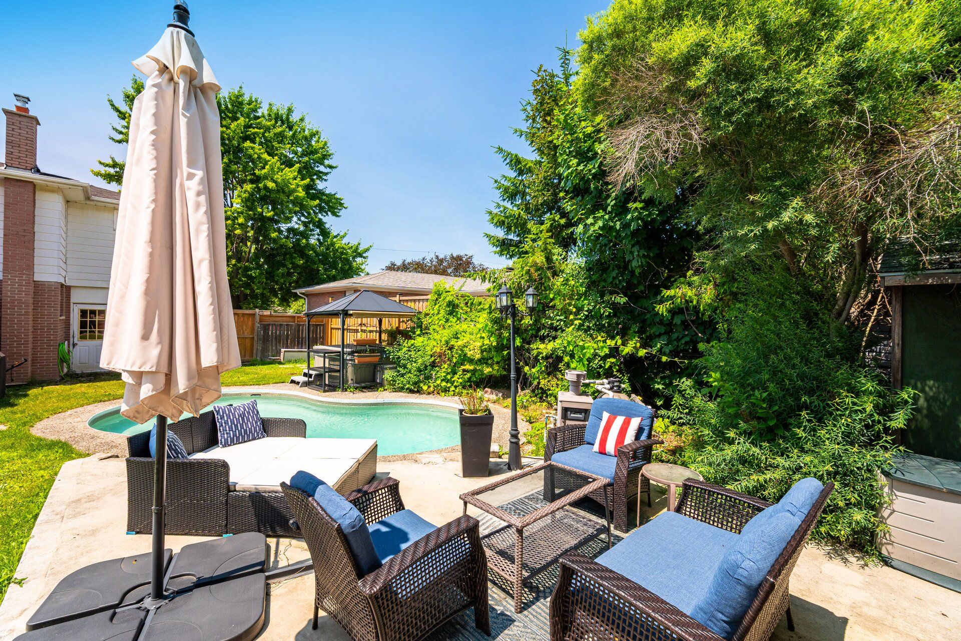 Welcome to your dream home! Nestled on a quiet, family-friendly street in one of the towns most sought-after communities, this beautifully maintained 4-bedroom home is the perfect blend of comfort, style, and entertainment. Step inside to find a large open-concept upgraded kitchen, featuring high-end finishes, modern appliances, a spacious island, and plenty of room for family gatherings or hosting friends. The kitchen flows seamlessly into the expansive family room, complete with built-in speakers, making it the ideal space for movie nights, game days, or casual entertaining. For year-round enjoyment, this home boasts a gorgeous 3-season room perfect for cozy evenings with a wood burning fireplace, lively gatherings, or simply relaxing with a cup of coffee while overlooking the incredible backyard. Step outside and discover your personal paradise! The backyard oasis features a sparkling pool, a relaxing hot tub, and beautifully landscaped spaces designed for both fun and relaxation. Whether you're hosting a summer barbecue or enjoying a quiet evening under the stars, this backyard will be your favorite retreat. Additional highlights include: spacious bedrooms with plenty of closet space updated bathrooms ample natural light throughout attached garage and additional parking quiet, safe street perfect for families close to top-rated schools, parks, and amenities. This home truly has it all location, and lifestyle. Don't miss your chance to make it yours!
