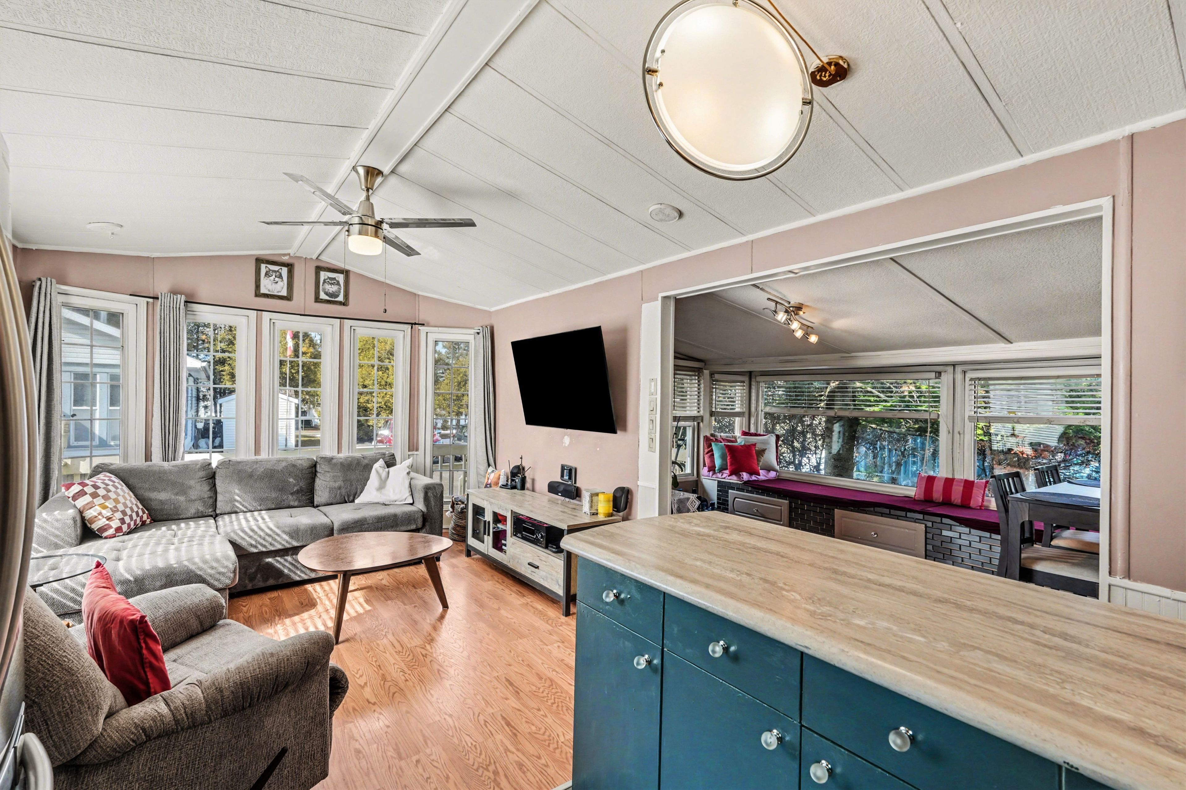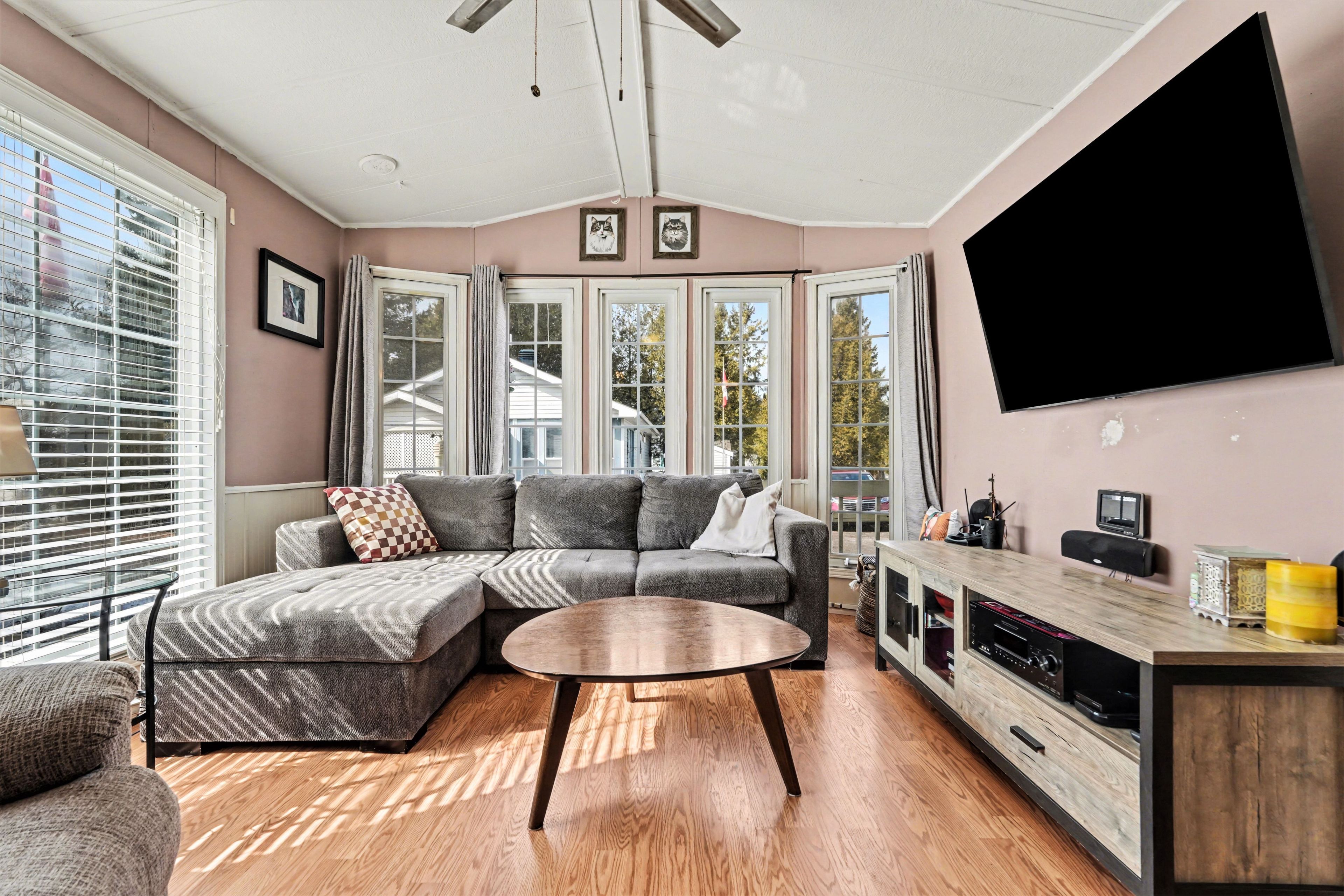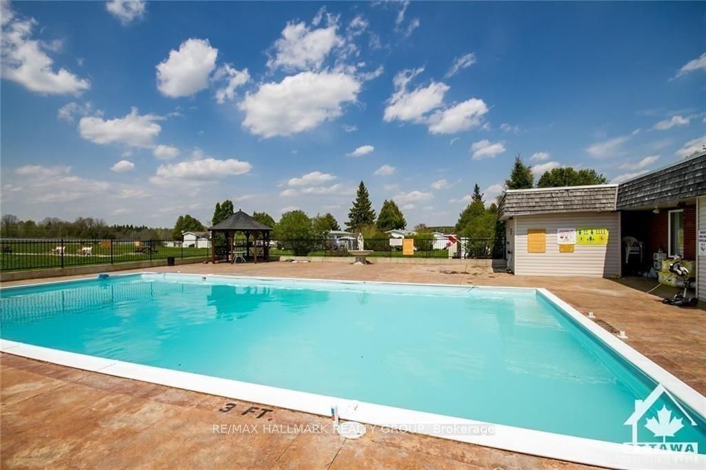 Welcome to ashton pines retirement community - country living at its best in this sought-after 55+ adult community, ideally located just 8 minutes from both stittsville and carleton place. This charming 2 bedroom, 1 bathroom double mobile home offers a warm and inviting cottage feel throughout. The bright living room sits adjacent to the kitchen, with windows all around bringing in an abundance of natural light. The dining area is perfectly tucked along a wall of windows and features a unique built-in bench with storage drawers below - creating a cozy and functional space for meals or morning coffee. Vaulted ceilings and laminate flooring throughout add to the home's bright and airy atmosphere. The kitchen offers ample cupboard and counter space along with a convenient side window above the double sink. The primary bedroom features a bay window and its own locking patio door providing direct access to the deck. The spacious, upgraded main bathroom includes a relaxing soaker tub with a combined shower. A versatile den area offers additional living space - ideal for a tv room, hobby space, or reading nook - and conveniently includes the laundry area with plenty of room for storage. From here, step outside to the back deck featuring a covered gazebo, perfect for enjoying the outdoors in comfort. Outside, you'll find parking for one vehicle, a storage shed, and plenty of surrounding green space to relax and enjoy the peaceful setting. Residents of ashton pines enjoy community amenities including an inground pool and a pet-friendly atmosphere. Key details: monthly lot fee approx. $675; water testing & sewer approx. $41/month; annual property taxes approx. $800. Park management approval required.