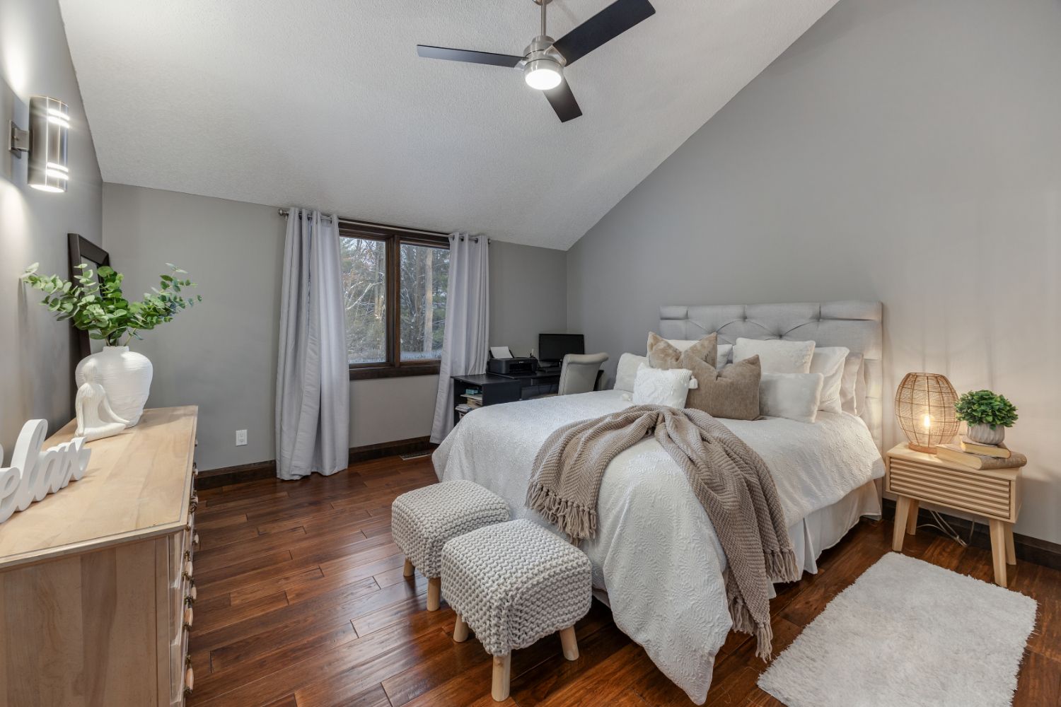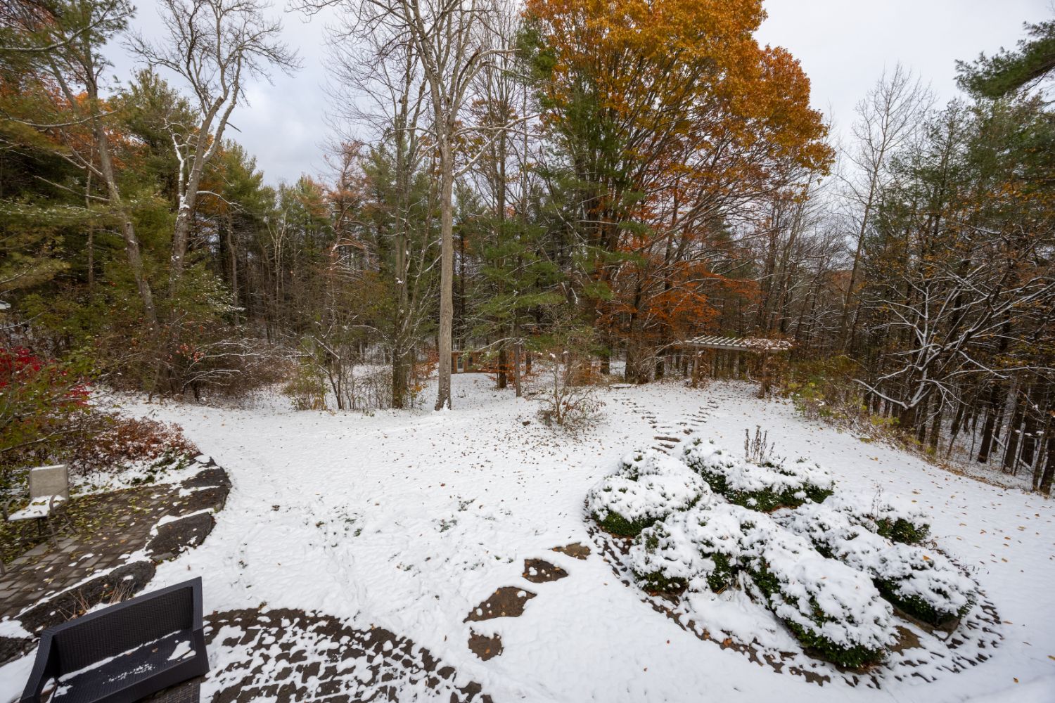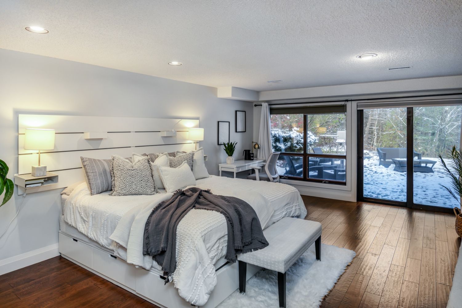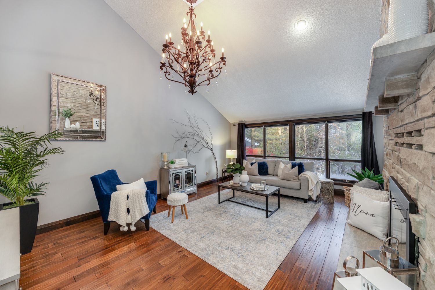 Set amongst mature trees, on approximately 6. 17 acres, in an executive burketon neighbourhood, this stunning raised bungalow offers a rare blend of privacy, character, and craftsmanship. The property welcomes you with a large paved driveway leading to a 3-car attached garage with interior access, plus a detached approx 15ft x 30 ft workshop with hydro - perfect for hobbyists or extra storage. Beautiful landscaping surrounds the home, featuring walkways, fountains, armour stone accents, multiple patio areas ideal for relaxing or entertaining and groomed trails for leisurely strolls through the trees. Enjoy the peaceful sounds of nature from the expansive deck overlooking the private yard. Inside, this home is rich in charm and design detail. The kitchen boasts quartz counters, a moveable centre island, built-in appliances, and a convenient walk-in pantry. The dining room features a walk-out to the deck and shares a striking, two-way wood-burning fireplace with the sunken living room. Here, large windows, a vaulted ceiling, and a floor-to-ceiling stone fireplace creates a warm, inviting atmosphere filled with natural light. The main floor hosts two generous sized bedrooms. The luxurious primary retreat boasts a walk-in closet and a spa-inspired ensuite, features heated floors, a soaker tub, and a tiled walk-in shower. The fully finished, walk-out basement offers exceptional living space with large windows that make it bright and welcoming. It includes two additional bedrooms (one with two closets, and the other with a walk-out to the yard and a woodstove), a 4-piece bath, a dining area and an open concept living space that overlooks the kitchenette. This area has ample cabinetry, quartz counters as well as a custom cherry wood wet-bar. This one-of-a-kind property seamlessly combines elegance, comfort, and natural beauty, truly a place to call home.