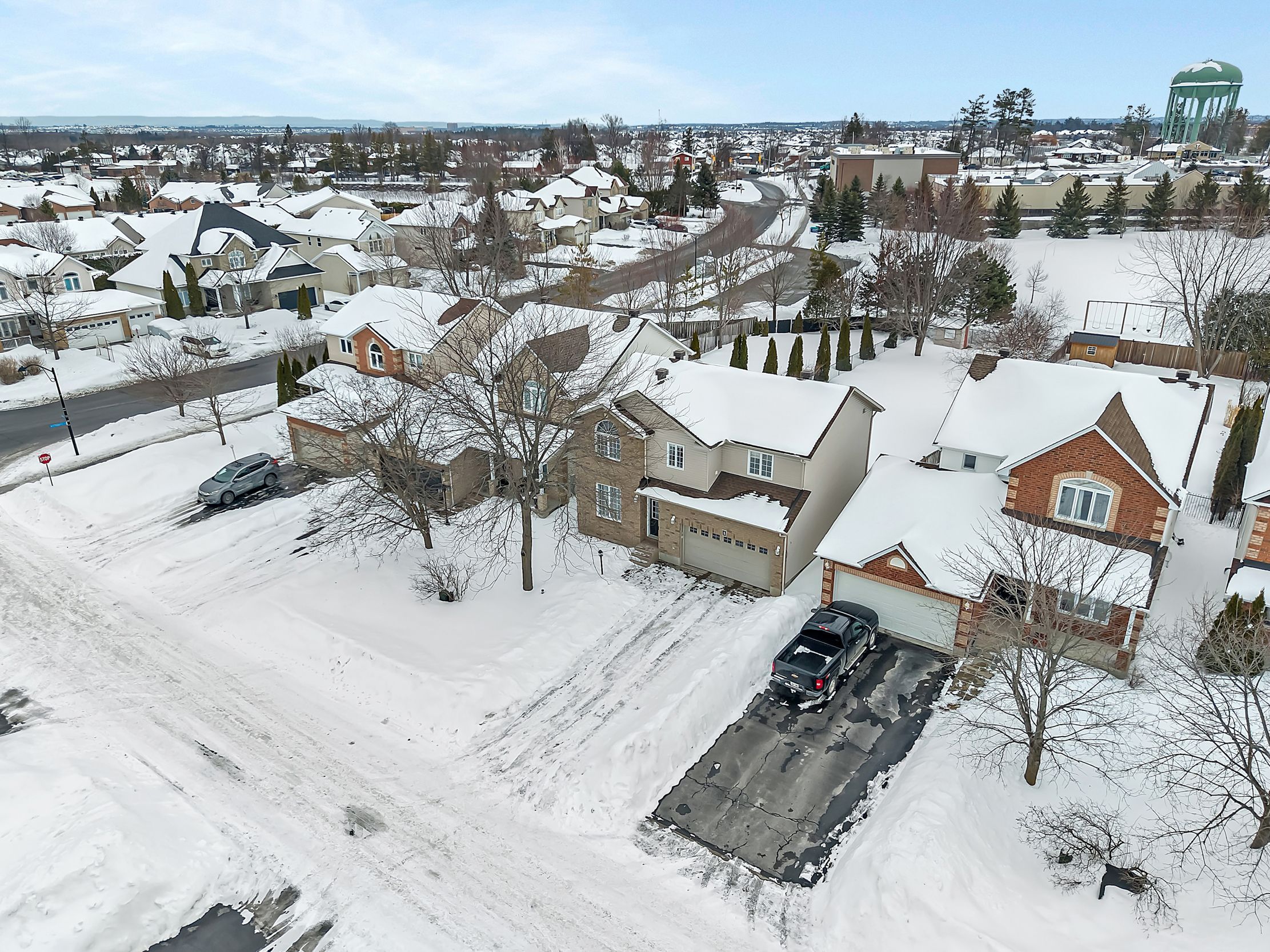 On a quaint cul-de-sac, in the heart of timbermere "stittsville's best little neighbourhood" you'll find this 4 bed, 4 bath gem. Situated on a rare, 200 foot-long double lot, with no rear neighbours, this home boasts a massive fully fenced backyard with plenty of space for rambunctious family fun. The home itself consists of a bright, open concept, main floor with new engineered hardwood, and 9 foot ceilings. Relish cozy evenings by the double sided fireplace in the living/dining area and whip up culinary delights in the updated kitchen. There's dual access to the large deck through patio doors or the custom mudroom right next to the main level powder room. Upstairs you'll find newly carpeted bedrooms, including the lovely primary retreat with vaulted ceilings, bright palladian windows, ample dual closets and a full en-suite. There are 3 additional bedrooms, a convenient 2nd floor laundry room w/storage and family bath. The finished lower level has two spaces ideal for a gym or office and a 2 piece bath. The home features a 2 car garage, interlock driveway and is just minutes off the queensway. As you will see on the attached video, sundew court is a safe, family friendly dead end street close to everything that timbermere has to offer (shopping, schools, parks, transit, golf, recreation, bike and walking paths).