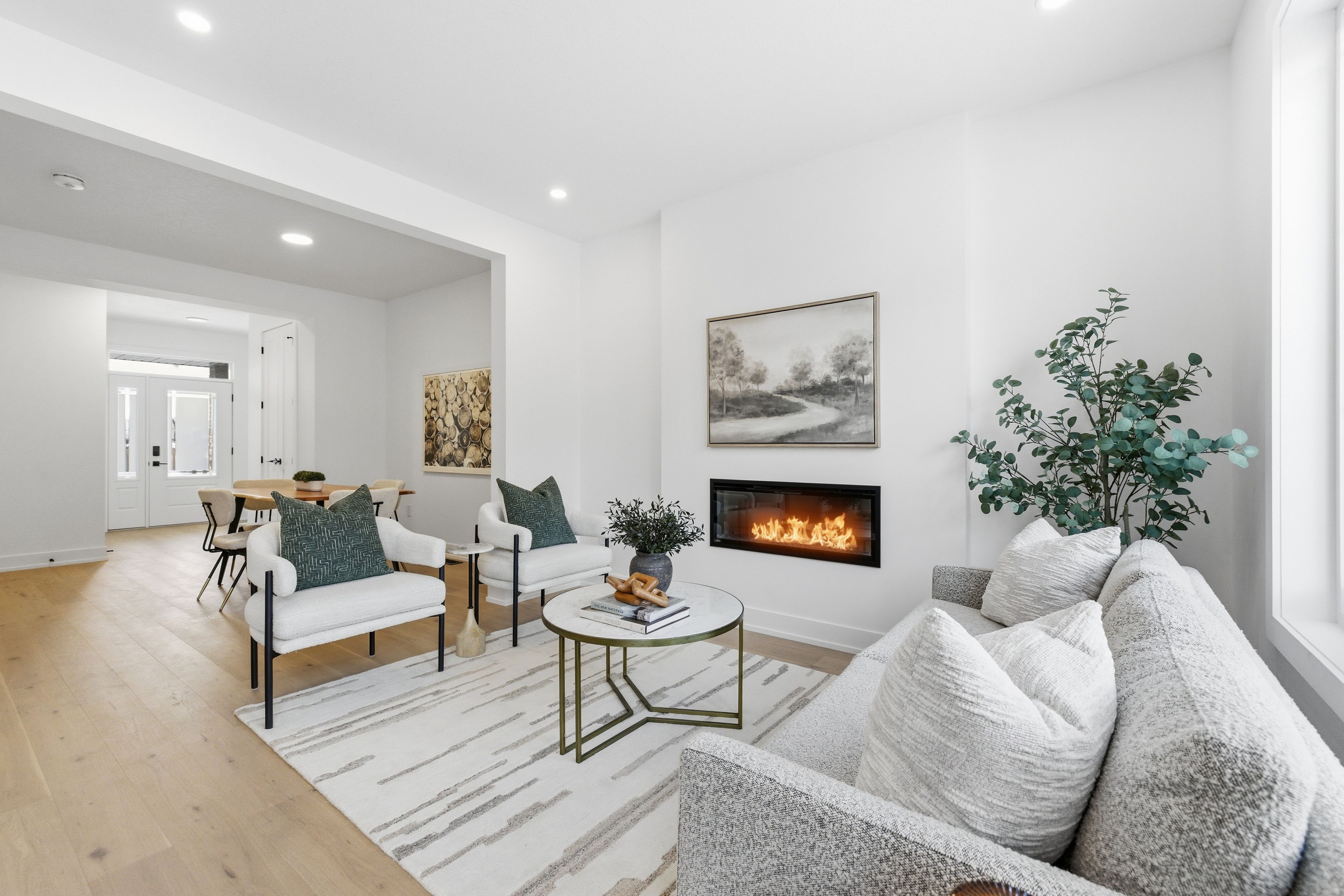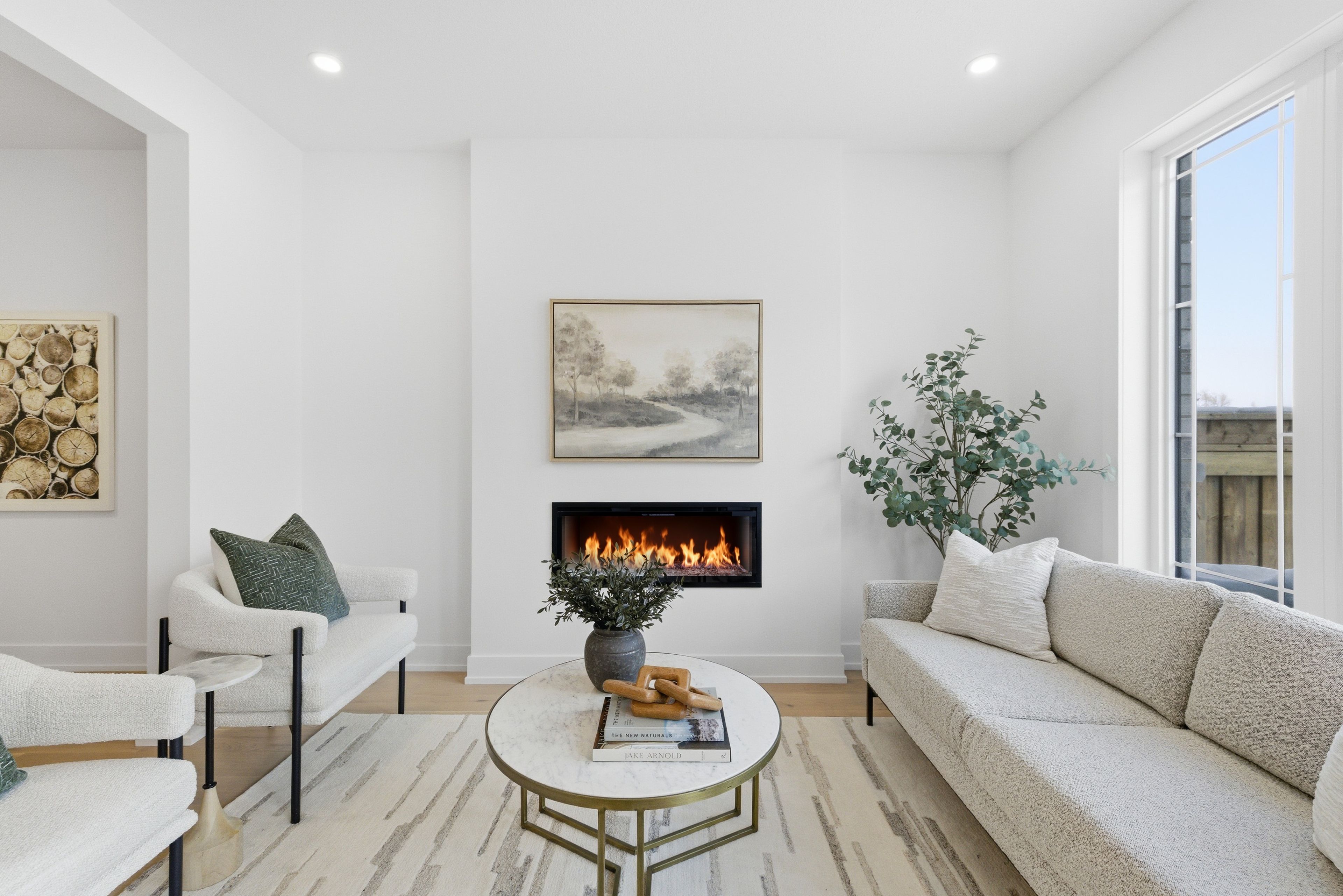 • Cozy living room featuring an electric fireplace, perfect for relaxation or entertaining.