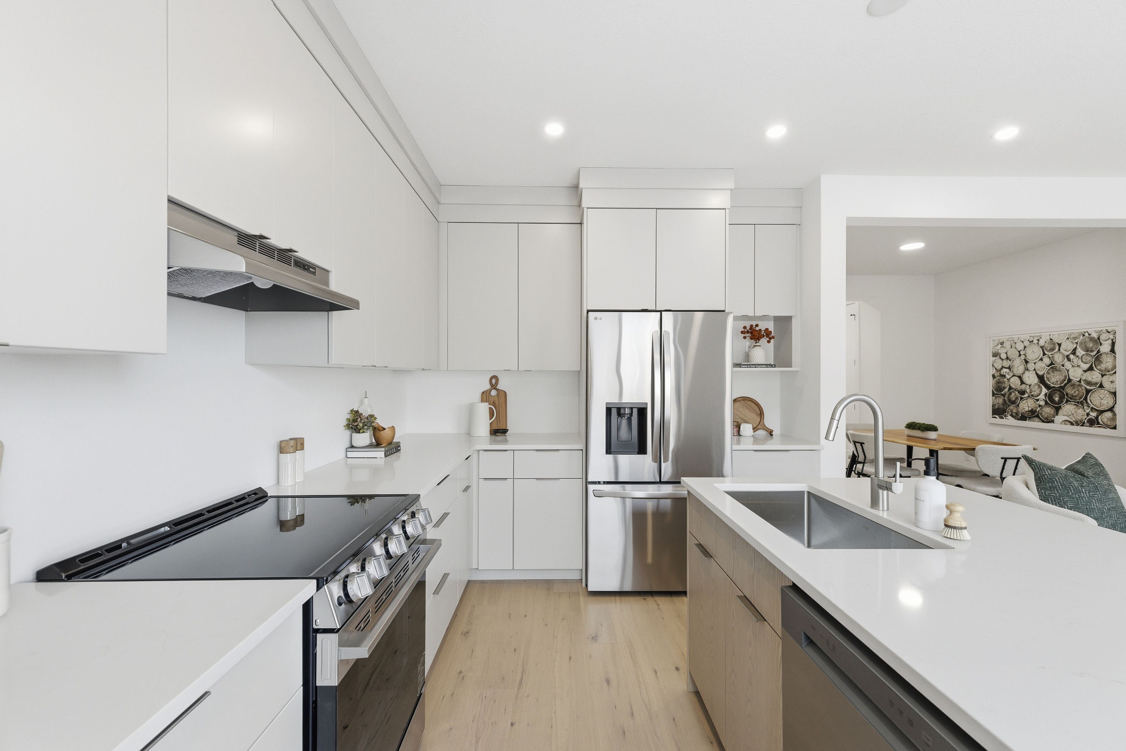 • Chef's kitchen with quartz counters and stainless steel appliances for easy cooking.