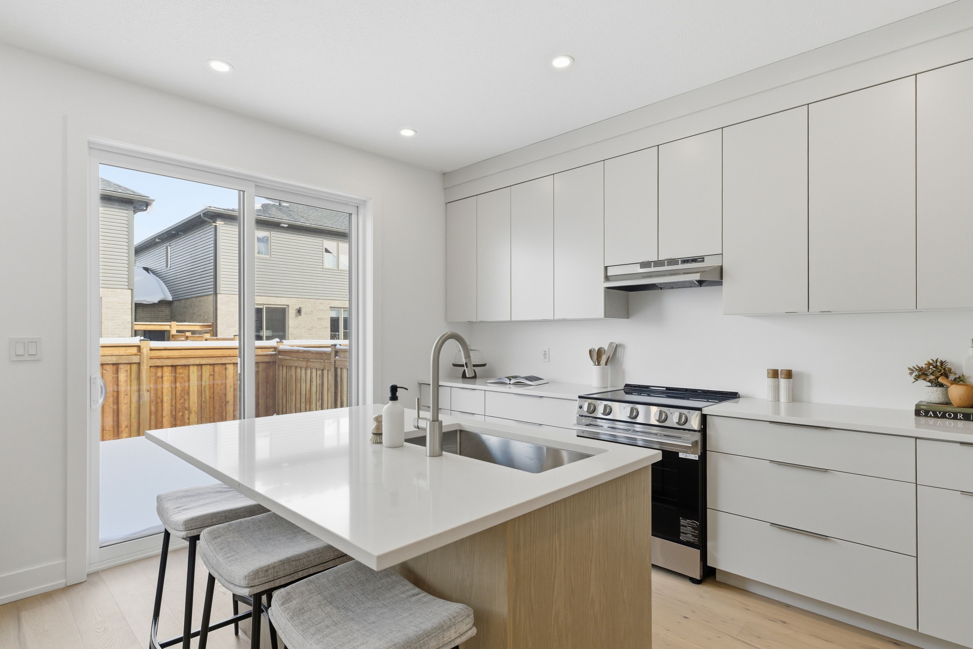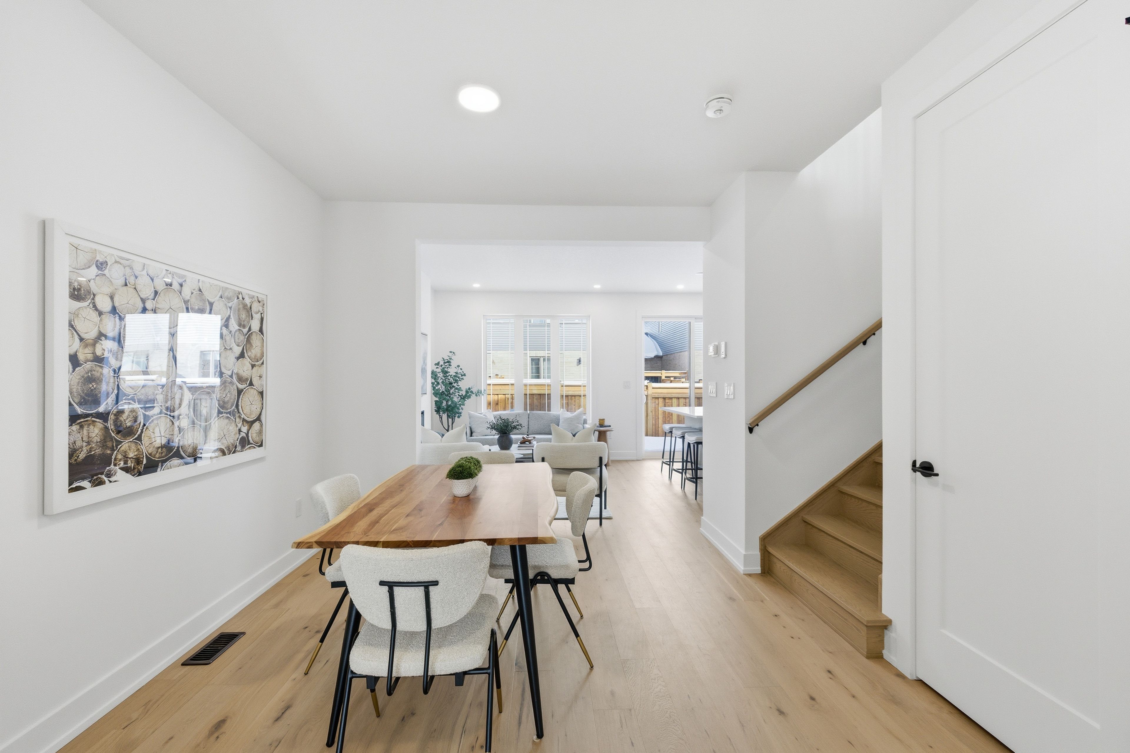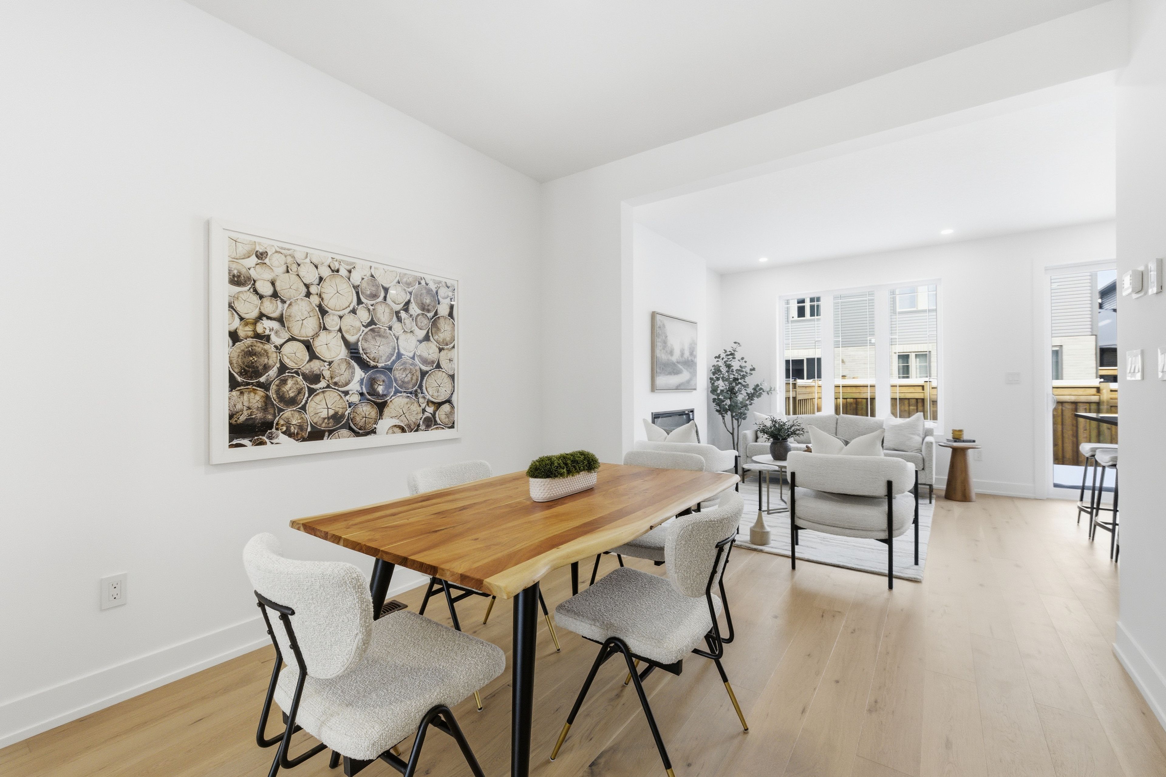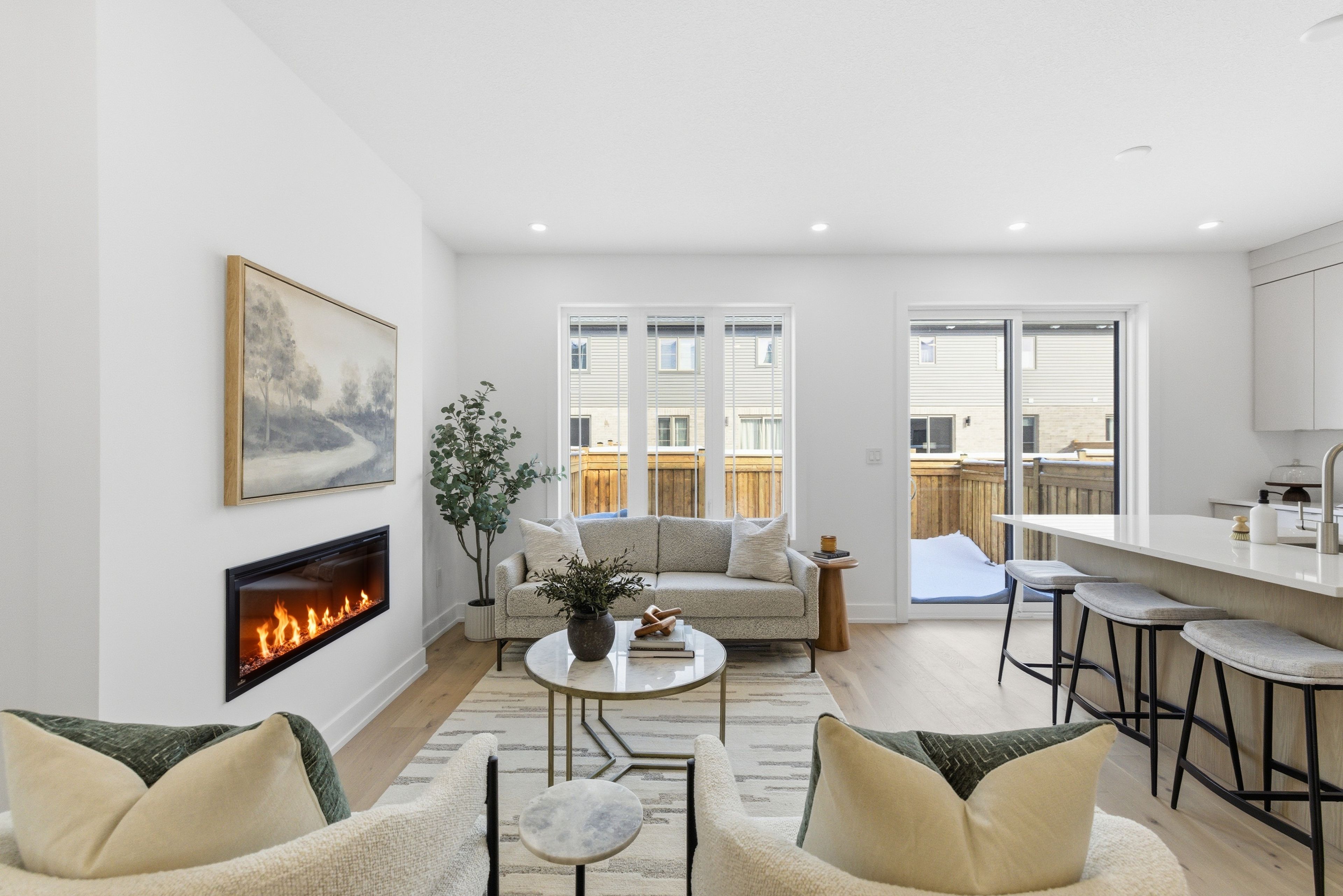Introducing an exceptional new townhouse by award-winning sunvale homes, thoughtfully designed to highlight light, warmth, and natural textures. The main floor offers a flowing, open layout that feels both spacious and inviting. The kitchen is a chef's dream, featuring quartz countertops, stainless steel appliances, and a large island perfect for meal prep or casual gatherings. Just off the kitchen, the living room creates a cozy yet sophisticated space, anchored by an electric fireplace that make it ideal for relaxing or entertaining. The dining area, positioned adjacent to the living room, provides ample space for family meals or dinner parties. Upstairs, a custom staircase in warm white oak leads to a thoughtfully arranged second level. The primary suite is a serene retreat, with a sun-filled bedroom, walk-in closet, and a spa-inspired ensuite boasting a double white oak vanity, quartz countertops, and a glass-enclosed shower with striking green tiles. Two additional bedrooms, a chic 4-piece bath, and convenient upper-level laundry complete this level. With its nature-inspired design, abundant natural light, and elevated finishes, this home presents a fresh, modern take on luxury living. The backyard is fully sodded and fenced, (deck not included) with front landscaping and driveways scheduled for summer completion. Additional closing costs apply, fully enrolled in the tarion warranty, this is the forest model. Common element fee: $186. 62. Price does not include hst. If you qualify under the new government program, the hst may be fully rebated, meaning you may not have to pay it.