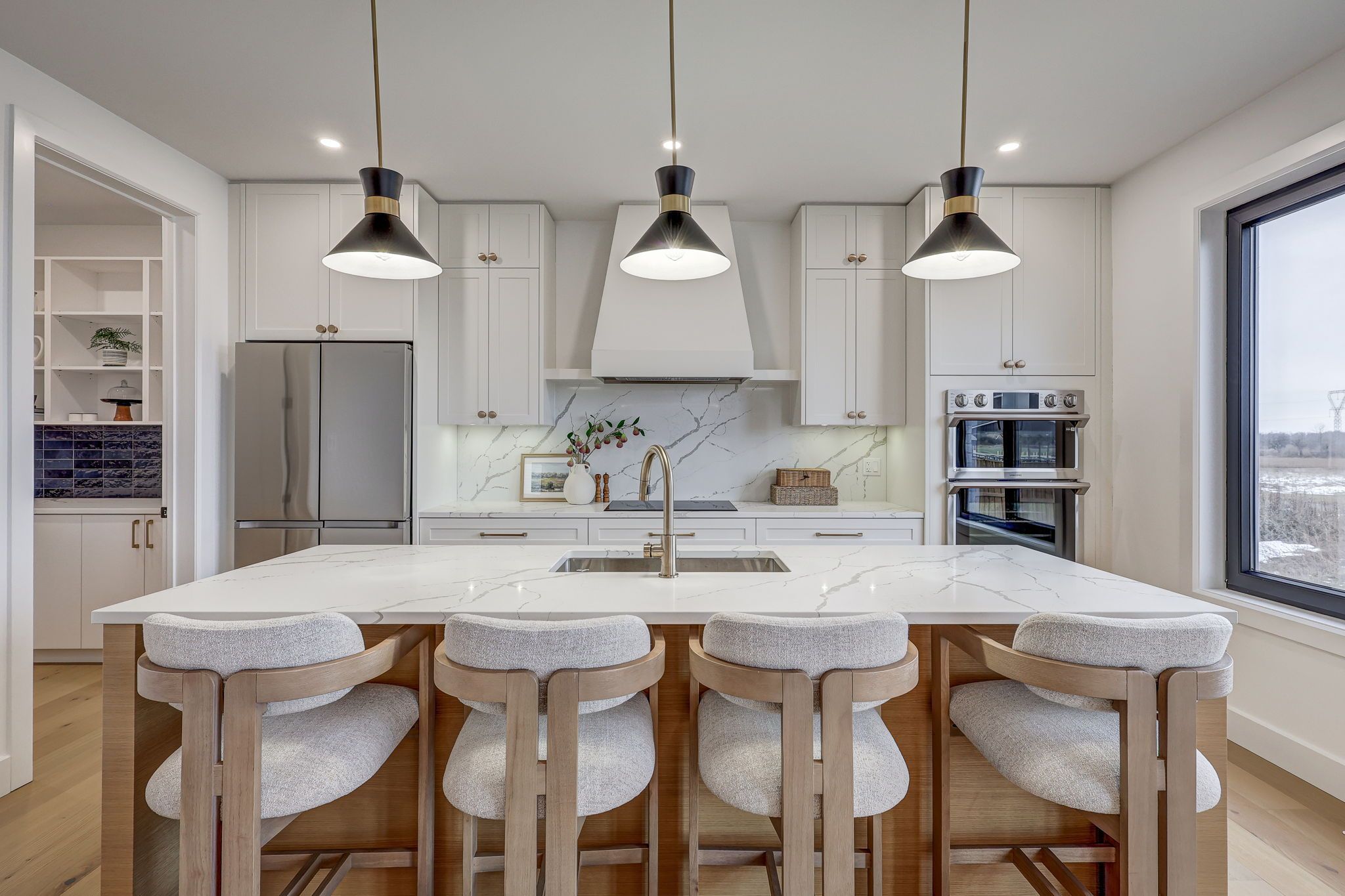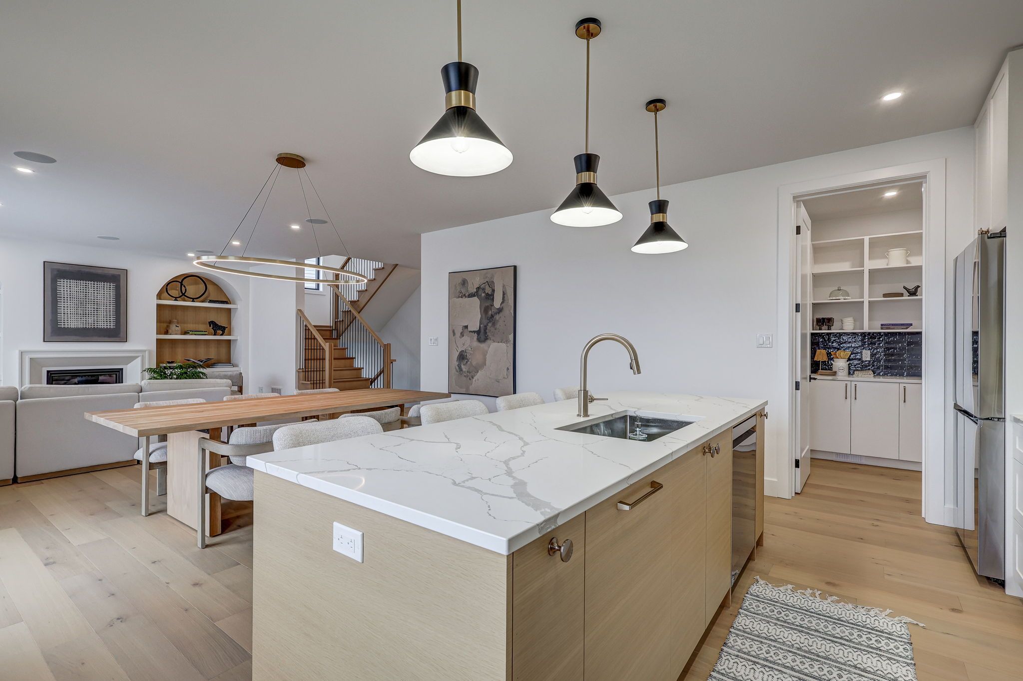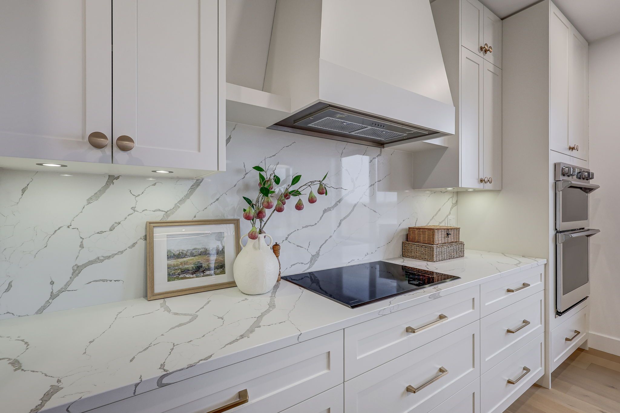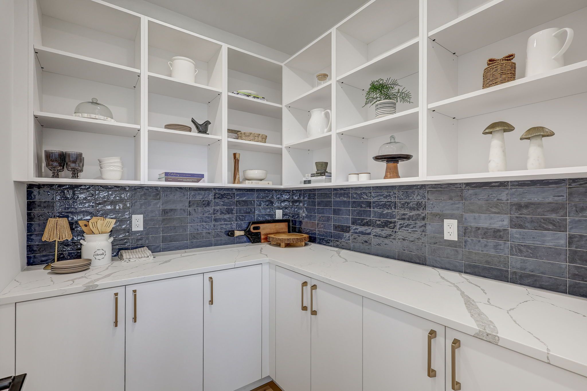 • Generous kitchen with custom cabinetry, quartz countertops, and walk-in pantry.