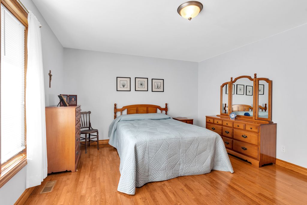 Welcome to this exceptionally maintained 3 bedroom, 2. 5 bathroom brick bungalow, ideally situated in a desirable neighborhood. Offering timeless curb appeal, this home is perfect for those seeking space, charm and functionality. Step inside and discover stunning hardwood floors and a spacious living room filled with natural light. The large kitchen features ample cabinetry, a cozy breakfast nook, and flows seamlessly into a separate dining room perfect for entertaining. All three generously sized bedrooms and laundry closet with sink are located on the main floor. The partially finished basement adds extra living space and includes a 2 piece bathroom, rec room and ample storage areas. Enjoy the evenings on the backyard deck, perfect for relaxing or enjoying mother nature. Upgrades include furnace 2018, roof 2021 and eavestroughs 2023. In addition, this property has an attached double garage measuring 20'4" x 19'11". All measurements are approximate and taken by iguide technology.