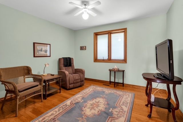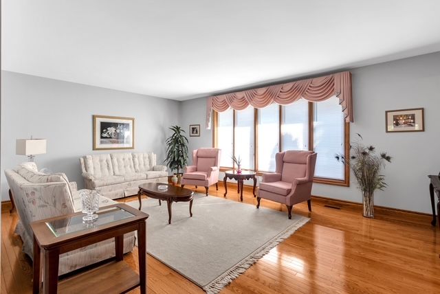 • Bright living room with hardwood floors and lots of natural light.