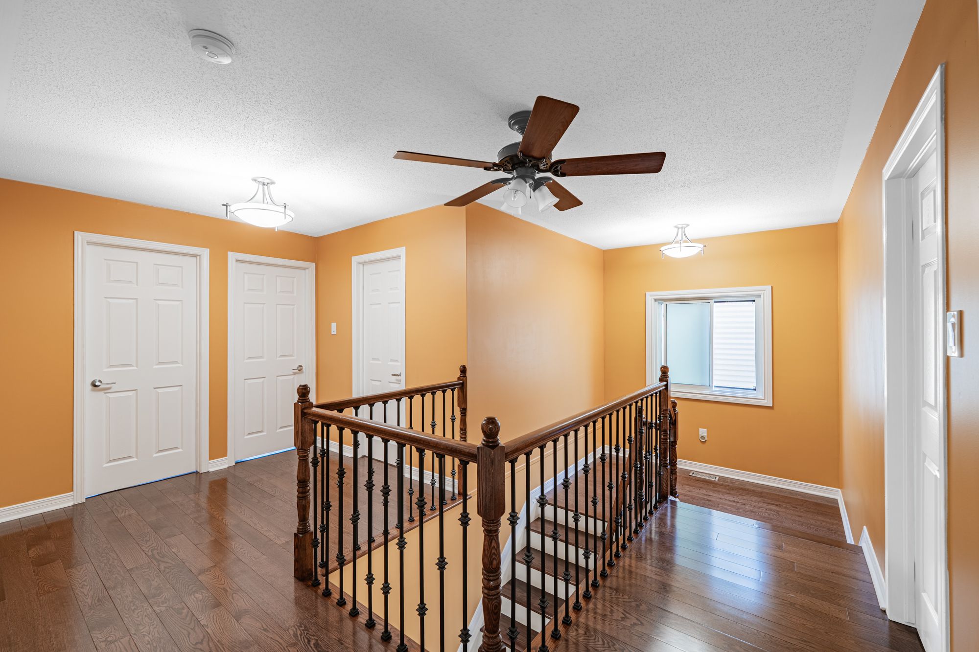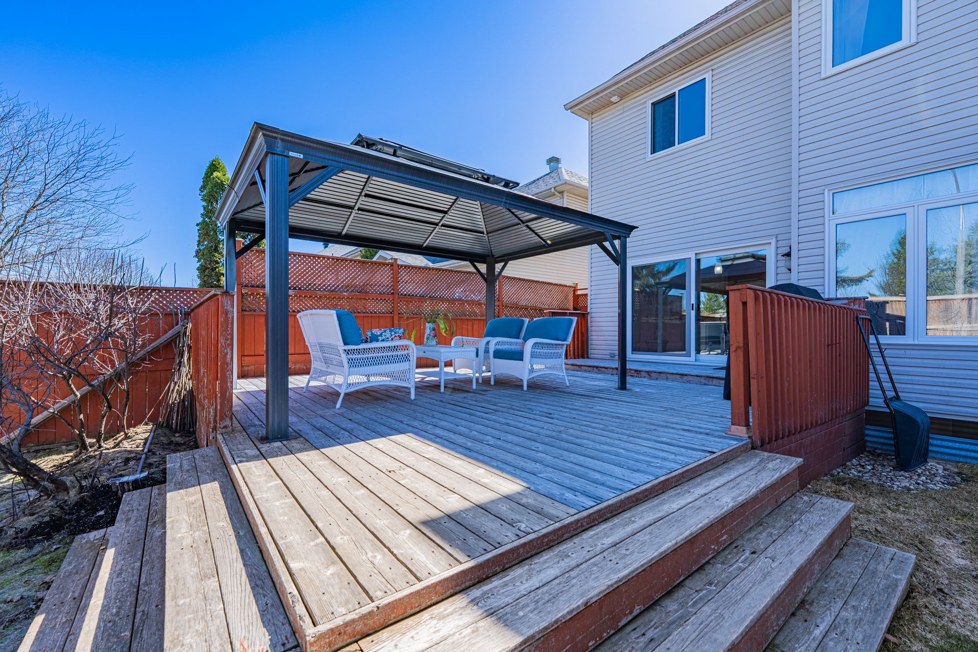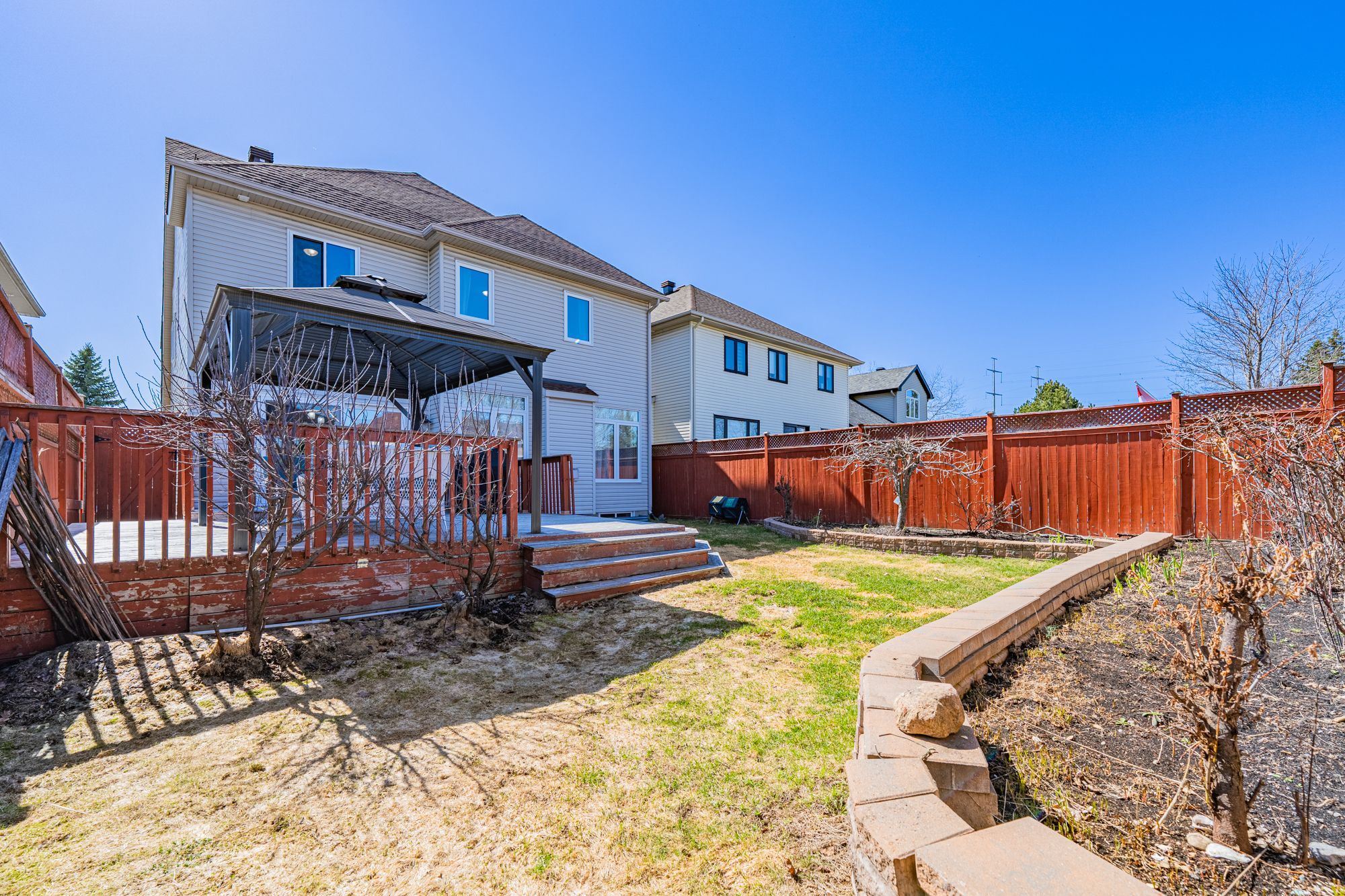This is a rare find - a true 5-bedroom, 3. 5-bath home on a quiet street in bridlewood, one of kanata south's most established and sought-after neighbourhoods. Built by tamarack homes in 1999 and once selected as a cheo dream home, the property sits on an oversized lot with no rear neighbours and mature trees framing the home front to back. Inside, new hardwood floors run throughout both levels, and the staircase - with its wood treads and wrought iron spindles - makes a strong first impression. The kitchen is the heart of the home: white cabinetry to the ceiling, granite counters, a large curved island with breakfast bar, mosaic tile backsplash, and stainless steel appliances. A custom extra-wide patio door opens directly to the deck, gazebo, and fully fenced backyard - perfect for summer evenings. Upstairs, the primary bedroom features a vaulted ceiling and a beautiful arched window, and two of the five bedrooms have their own ensuite baths. The basement was freshly finished in fall 2025, with new flooring and pot lights offering plenty of room for a rec room, home gym, or play space. Major updates have been taken care of: all windows replaced in fall 2024 with triple glazing and a transferable 25-year warranty, new hardwood upstairs in spring 2025, added attic insulation, and a full roof inspection completed. Steps to ncc trails, great schools, and all the shopping and dining kanata south has to offer.