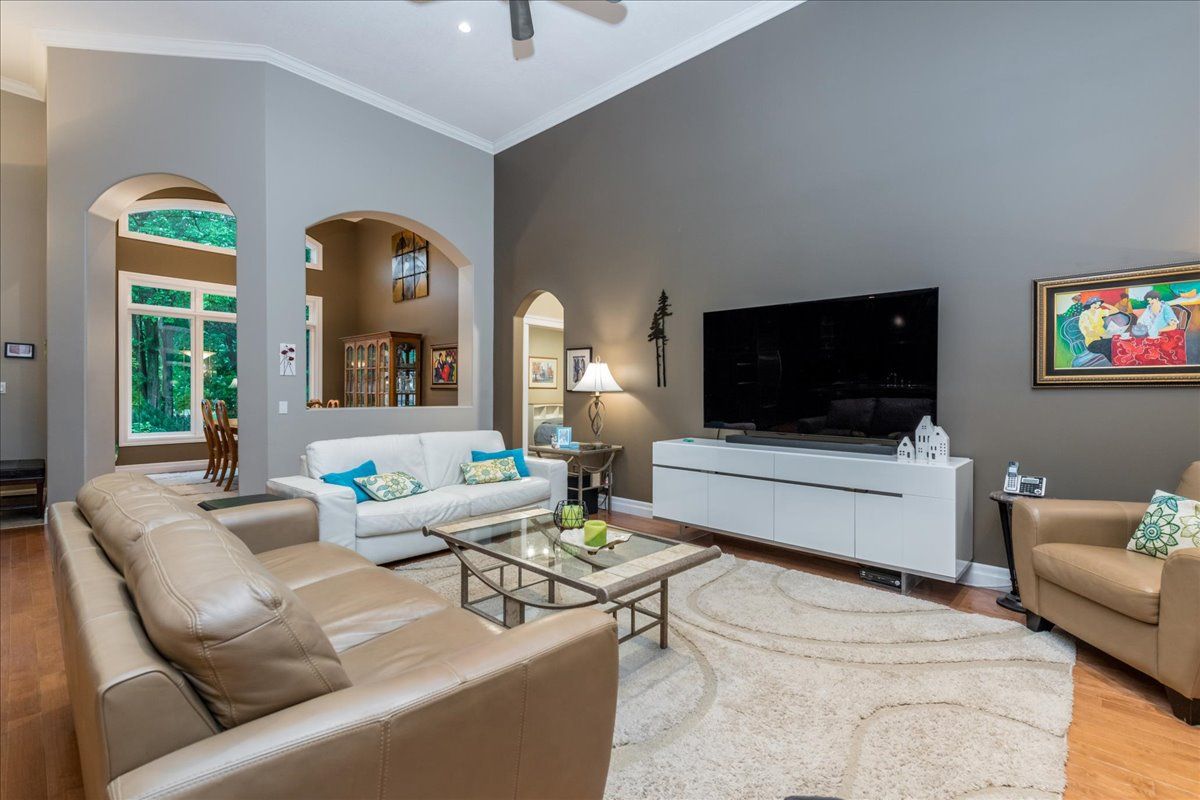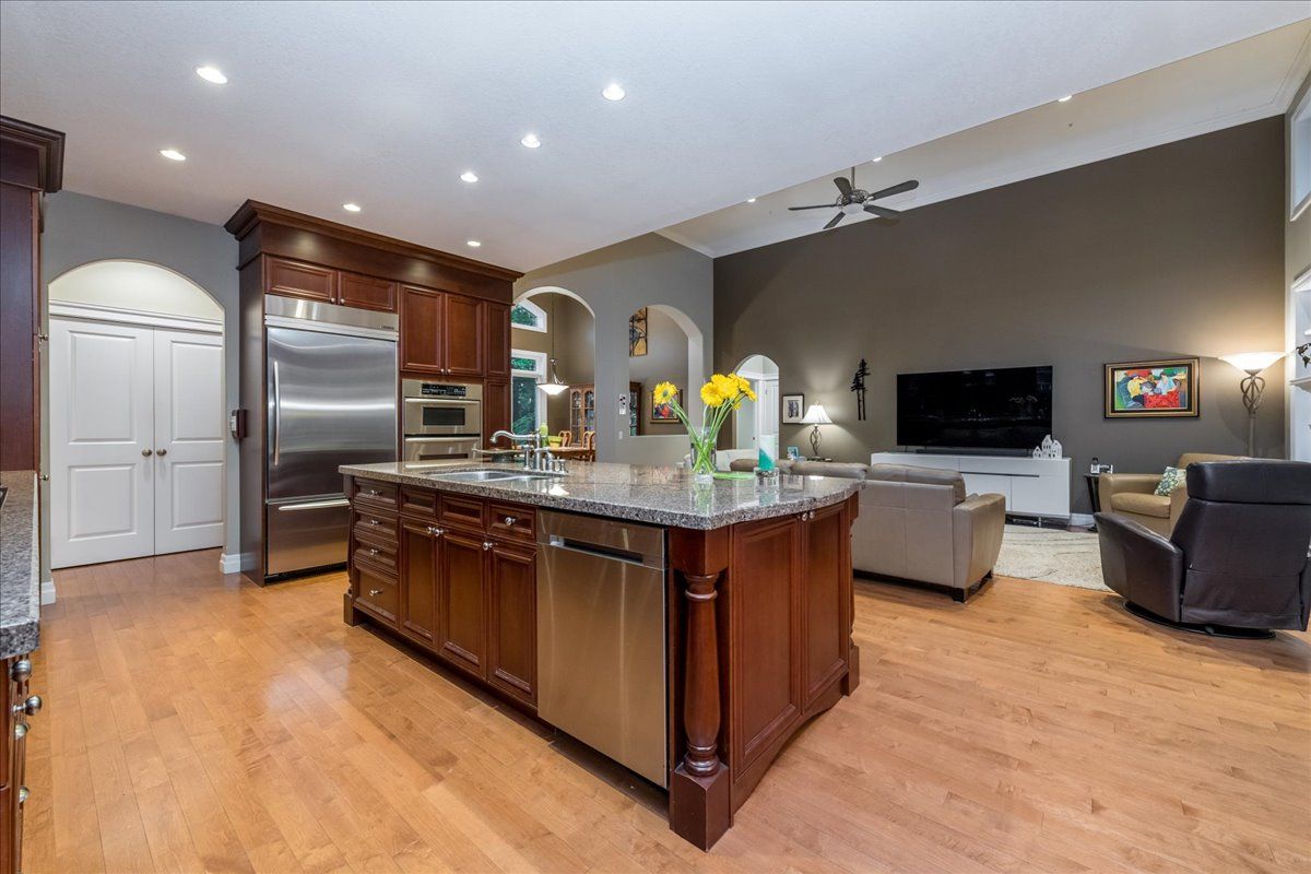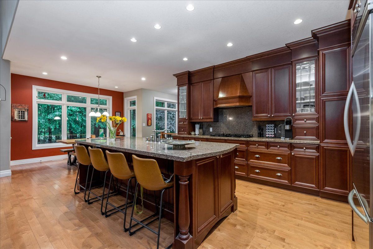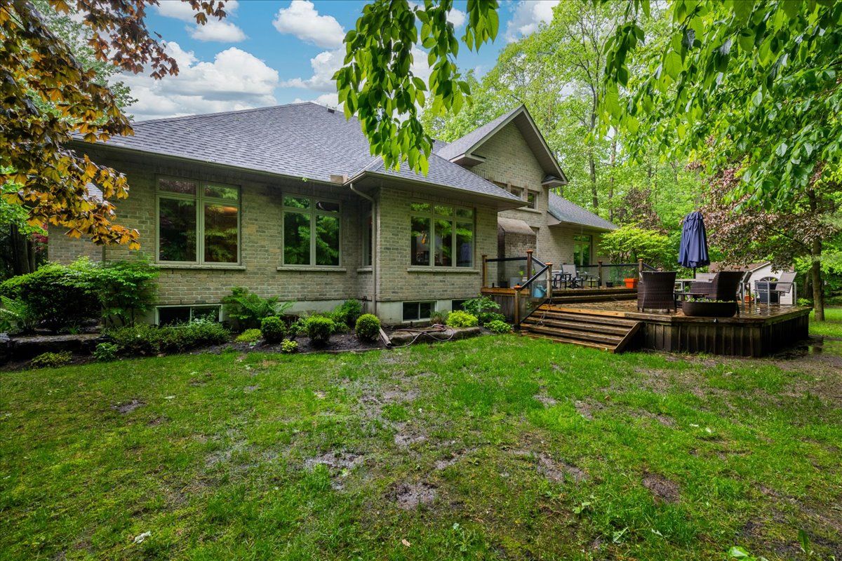Large fully finished family bungalow, sitting on a premium, over half acre estate lot, at the end of a private court. Shingles have been replaced, upgraded ensuite bathroom, 14 foot ceilings in great room, high ceilings throughout, large gourmet kitchen with built in appliances, pot lights and large island with granite counters and backsplash. Large deck of the breakfast room. This property features gardens with irrigation, and lighting, there are views of them out every window. Property also features invisible fence for your pets, triple car garage with separate entrance to the lower level. Owned hot water tank.