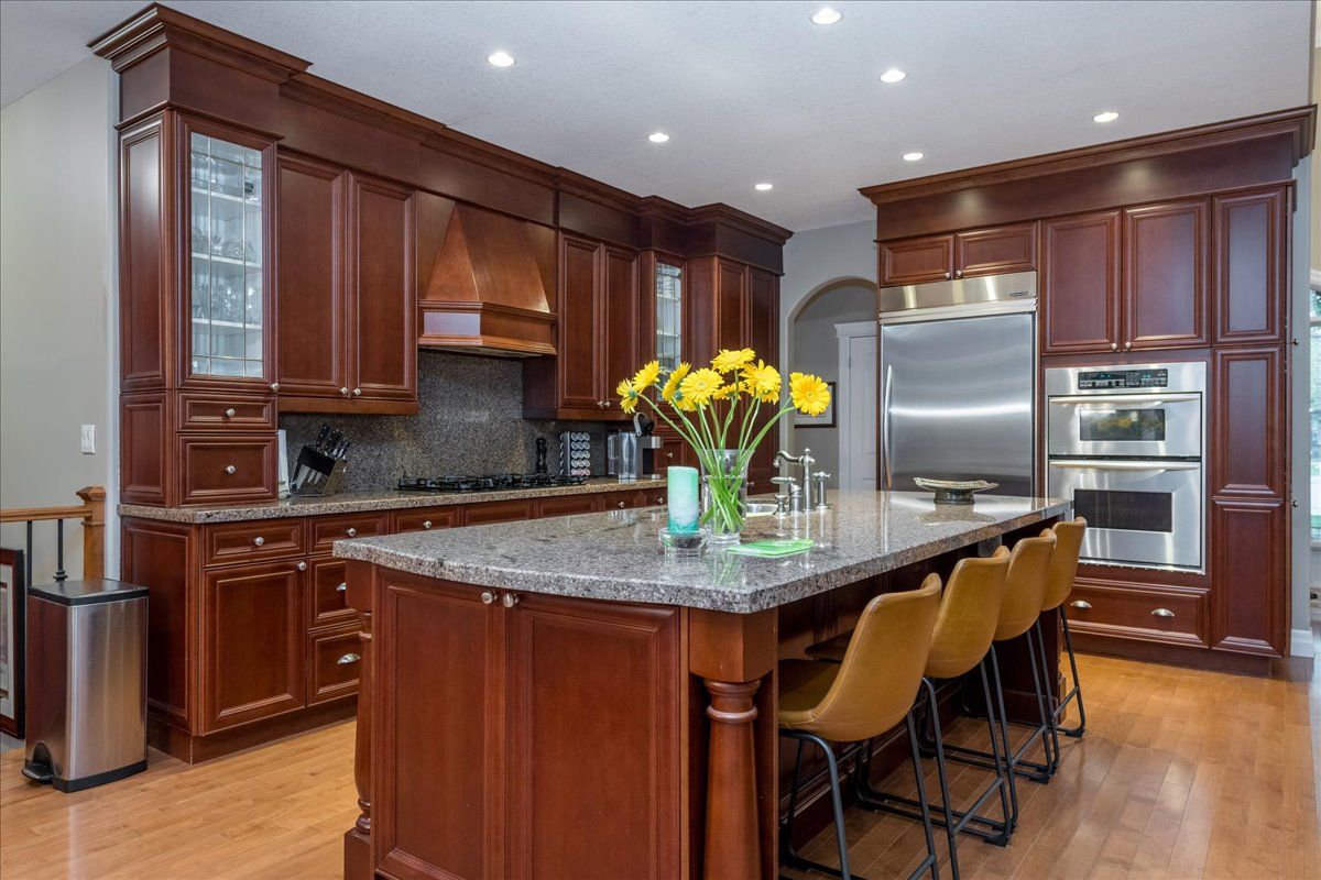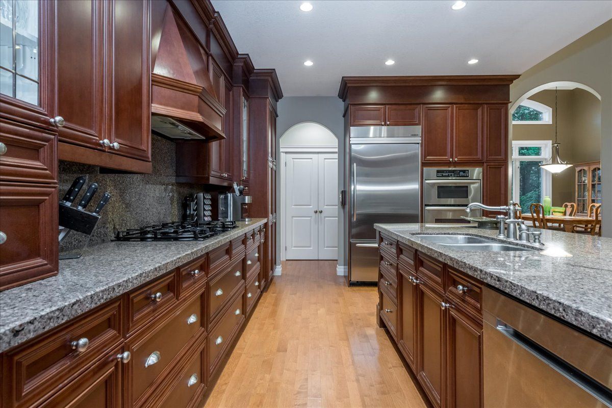 • Gourmet kitchen with built-in appliances and granite counters for cooking enthusiasts.