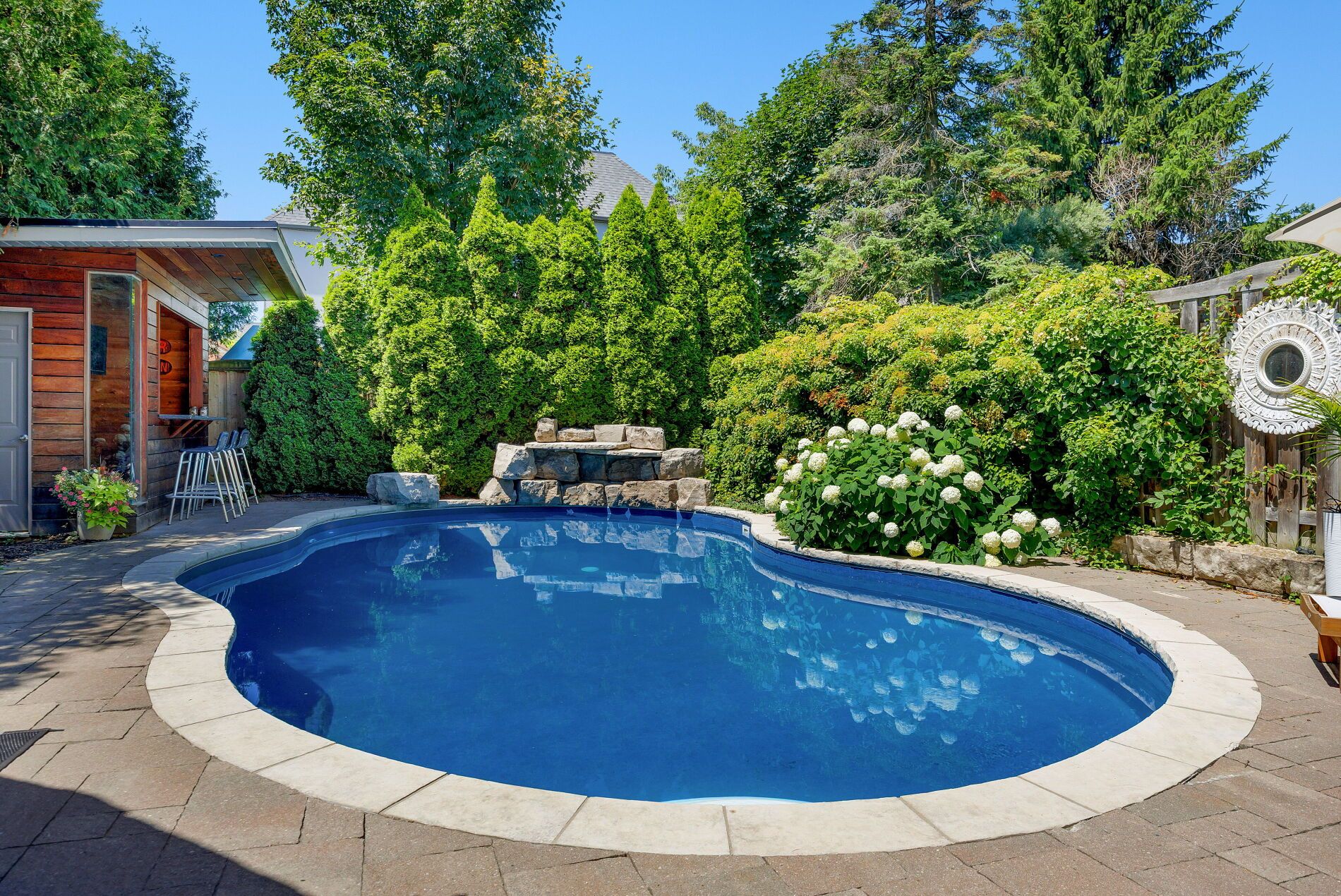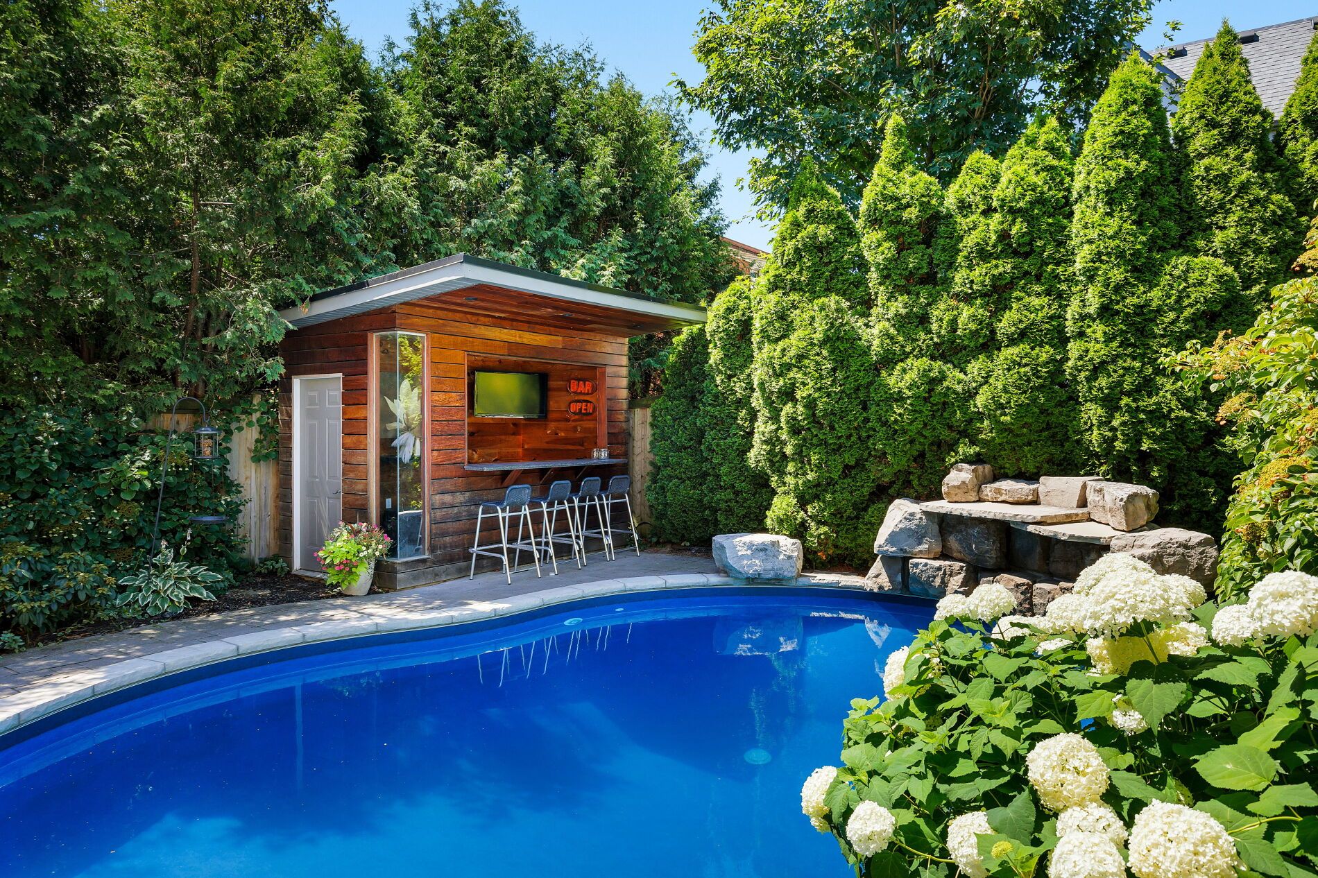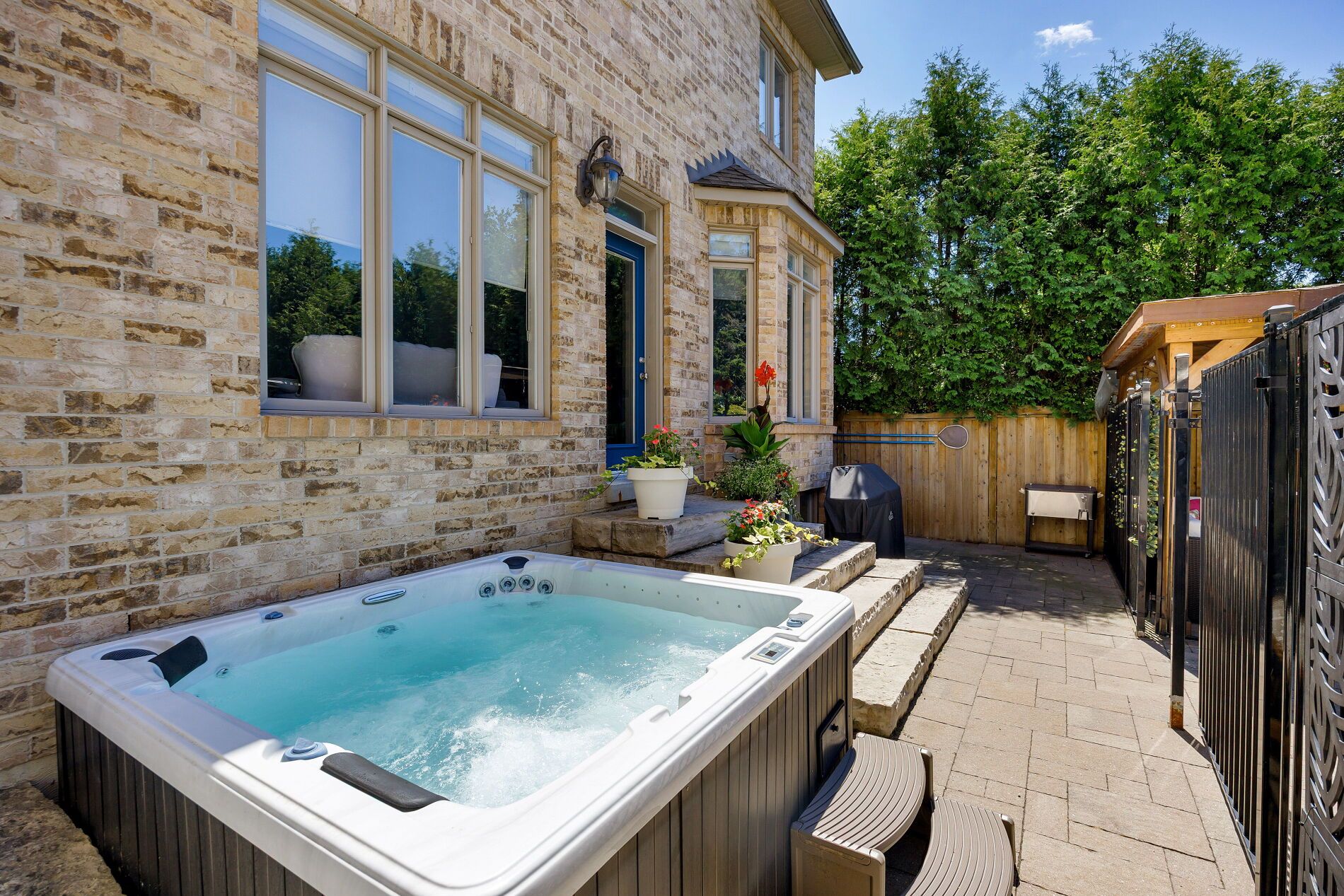 Welcome to this exceptional detached residence w/over 2,500 sq. Ft. Of beautifully finished space across four levels, perfect for both family living and entertaining. Built in 2006, this home stands apart being the largest lot in the highly desirable islington village estates. Numerous upgrades throughout as well as a dramatic backyard transformation. The vaulted foyer opens into a warm and welcoming setting with bright, airy ambiance throughout the main floor. Featuring 9-foot ceilings and rich hardwood flooring, the open-concept layout seamlessly connects the principal spaces. The elegant kitchen is anchored with a center island, marble countertops, stainless appliances and a charming breakfast nook overlooking the backyard pool. The open family room offers a relaxing retreat with a gas fireplace and custom built-in bookshelves. Upstairs, the second level features three spacious bedrooms, including a luxurious primary suite with a sumptuous 5-piece ensuite, deep soaking tub with built-in television, and an oversized walk-in closet. The third-floor loft provides an expansive and versatile open-concept space with abundant storage - ideal as additional bedrooms, a home office, fitness studio, or even a private primary retreat. The fully finished lower level adds a generous recreation room featuring a drop-down movie screen rustic wood-accent wall, along with a renovated 3-piece bathroom complete with a steam shower. The true pièce de résistance is the spectacular backyard oasis. Designed for ultimate privacy and tranquility, it features an inground pool, lush landscaping, covered cabana, poolside bar, and hot tub - creating the perfect setting for summer entertaining or peaceful relaxation. Nestled within a coveted enclave this is a rare opportunity for a growing family. Potl fee of 209. 00/month includes road maintenance & snow removal, landscaping, security cameras & visitor parking.