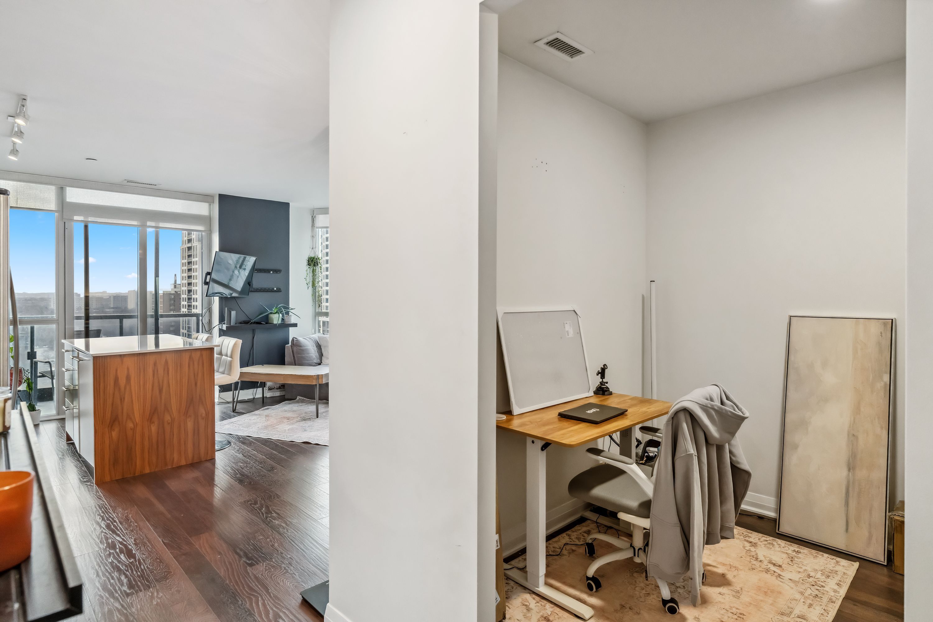 Welcome to 5 valhalla inn road, unit 1710. This bright corner unit offers west and north-facing views, with some incredible sunsets you can enjoy right from your private balcony. Inside, the layout is both spacious and practical, featuring a one-bedroom plus den setup. The den is a great bonus space that is ideal for a home office, nursery, or even just extra storage depending on your needs. You'll also have the convenience of ensuite laundry. The unit includes one parking space and is perfectly positioned for easy commuting, with quick access to highway 427, the qew, and the gardiner expressway. Location-wise, it's hard to beat. You're under 10 minutes to pearson airport, sherway gardens, ikea, and costco, with plenty of dining and everyday essentials nearby. Humber college lakeshore campus is also just a short 15-minute drive. The building itself is well-maintained and offers amenities like a gym and visitor parking for your guests. A great option if you're looking for a well-located, functional space in a convenient west-end pocket of the city. Please note: photos are from a previous tenant.