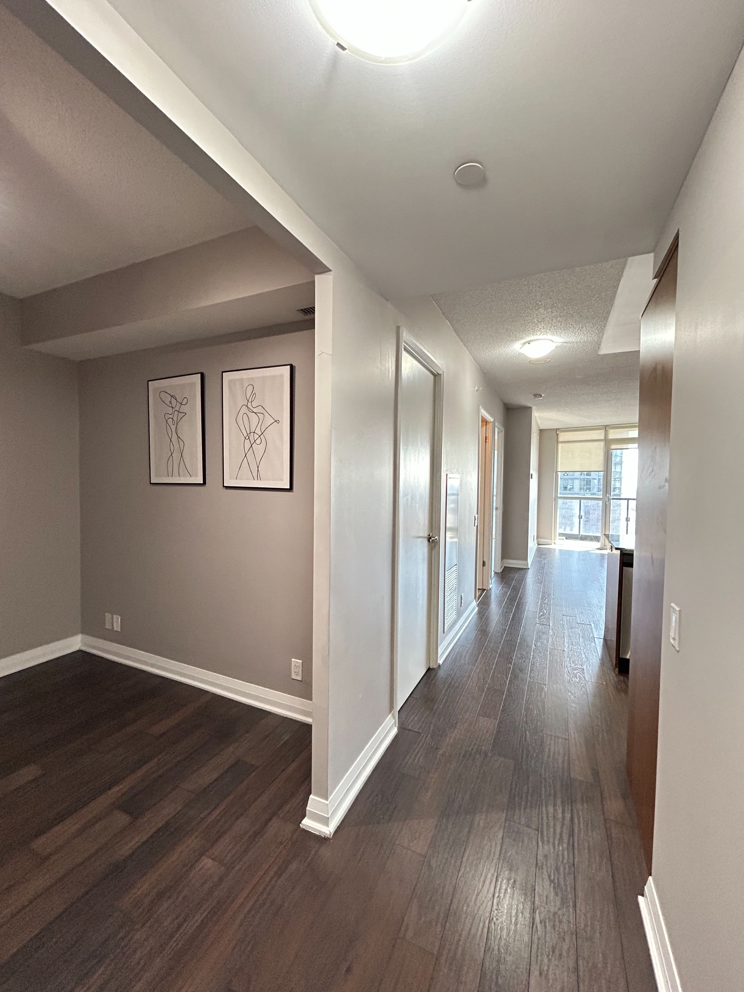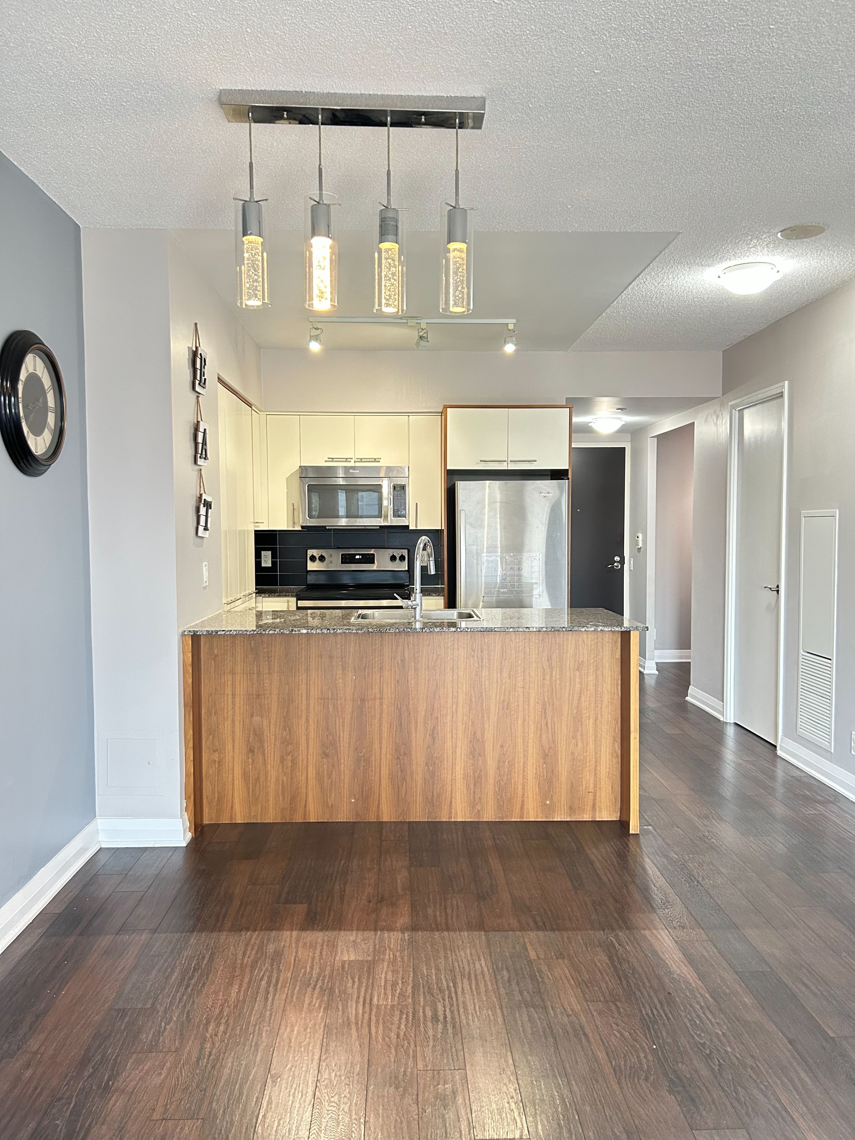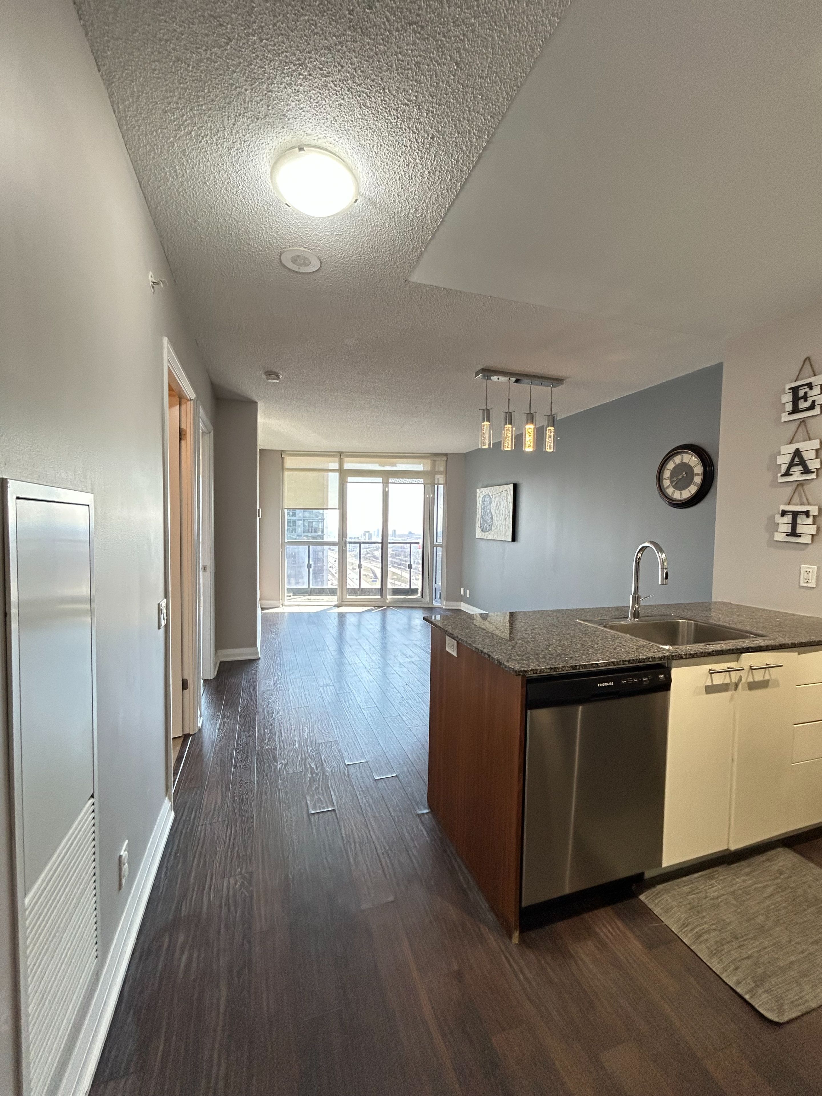 Welcome to triumph at valhalla condos. This spacious 1+1 bedroom, 1 bathroom suite features granite countertops, stainless steel appliances, in-suite laundry, and a walk-in closet. The den offers versatile space, perfect for a home office or additional living area. The unit is currently occupied with tenants preparing to move, so interior photos are not available at this time. The property has been well maintained and shows very well. Enjoy resort-style amenities including two fitness centres, an indoor pool and hot tub, sauna, party room, children's playroom, and a private theatre. Conveniently located near highway 427, sherway gardens, kipling ttc and go station, and toronto pearson airport.