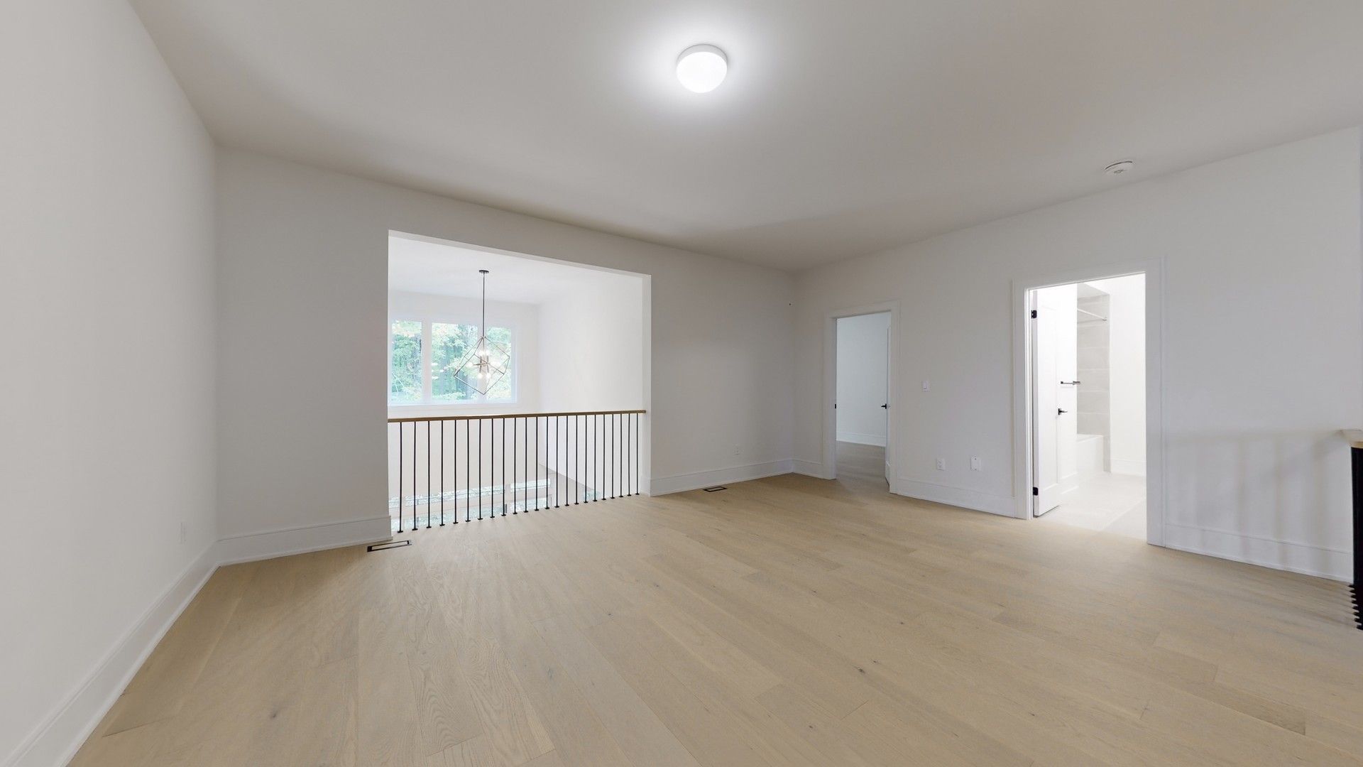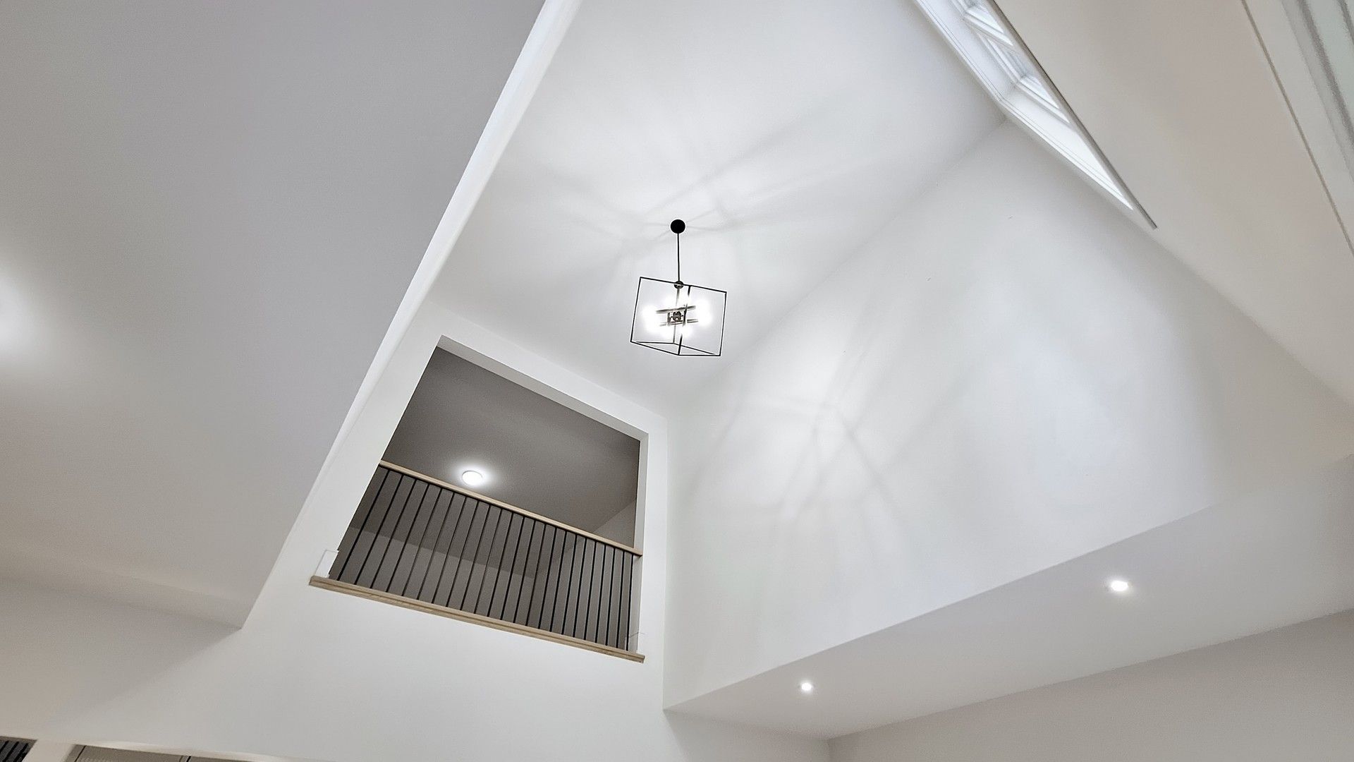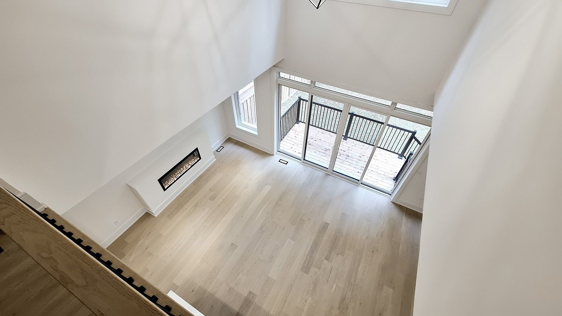 • Light-filled great room with 20' ceiling and electric fireplace for comfort.