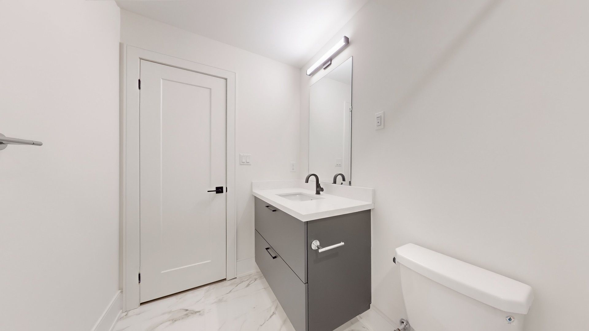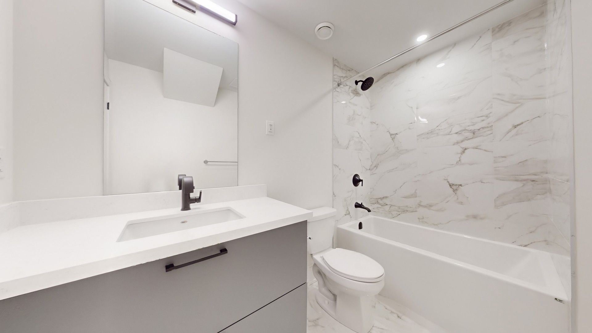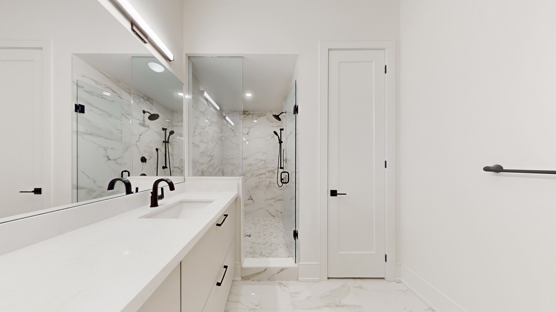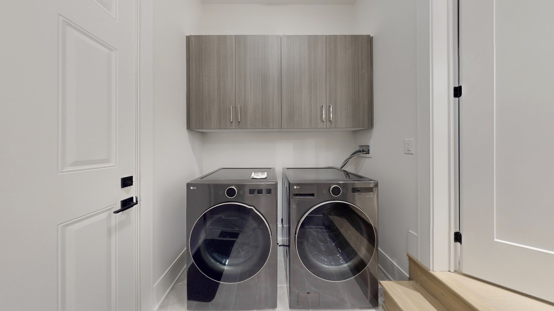 • Modern kitchen with sleek two-tone cabinets and designer fixtures.